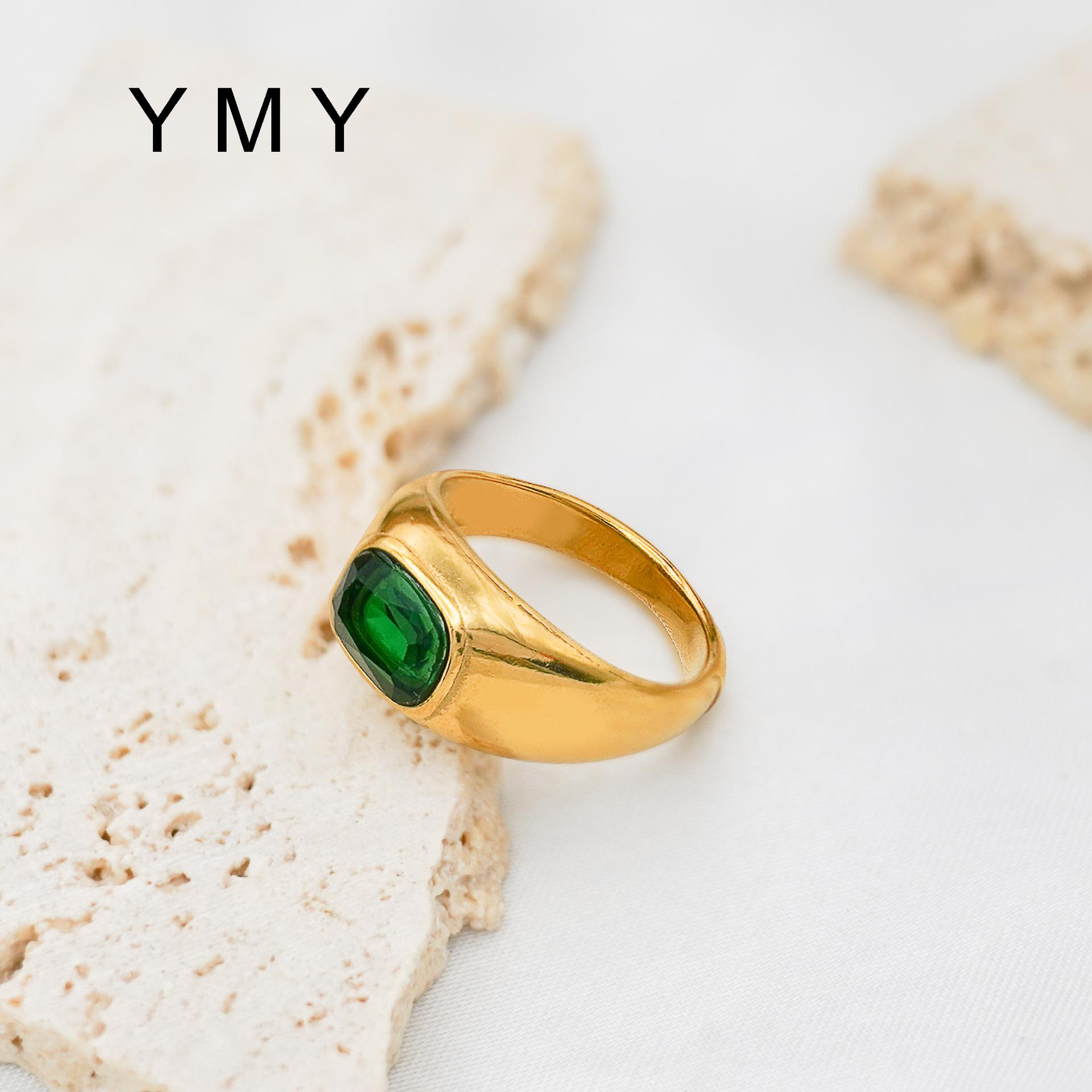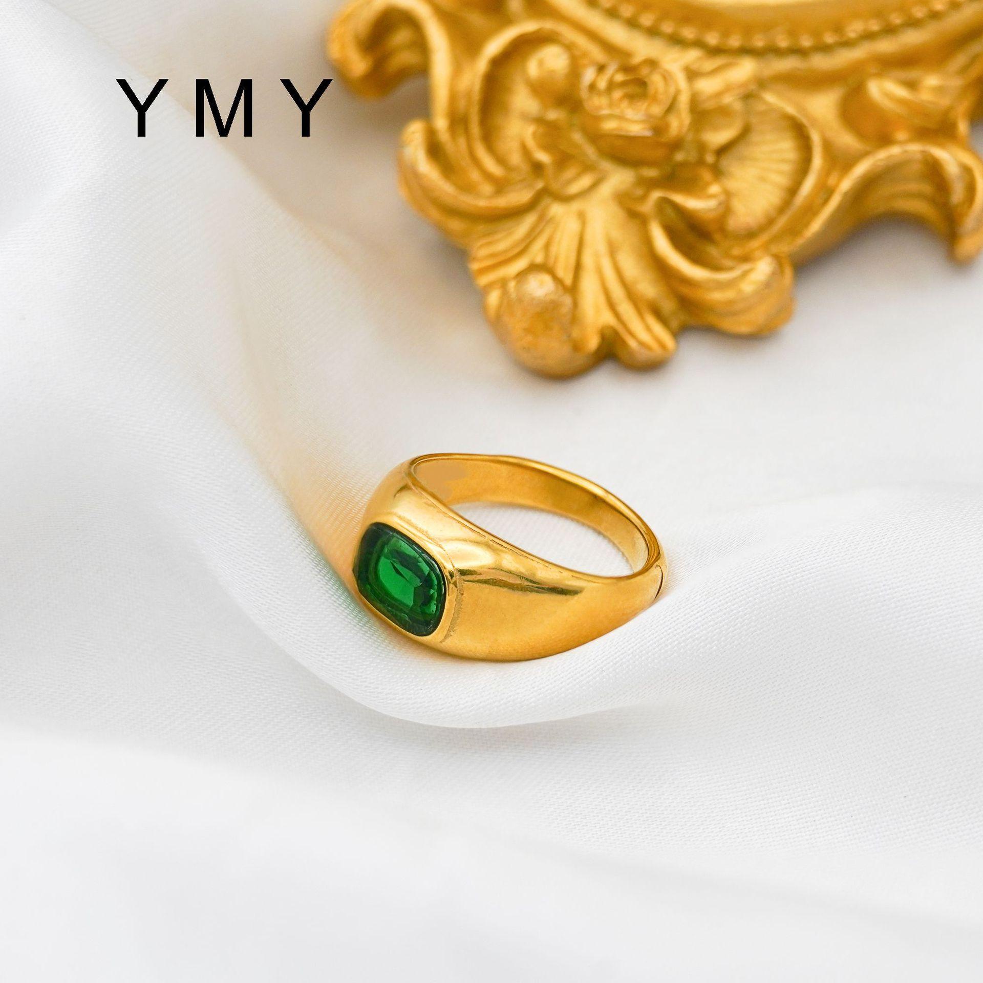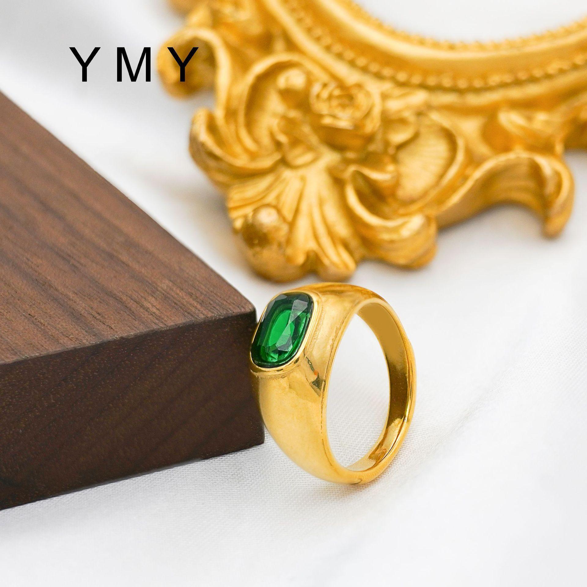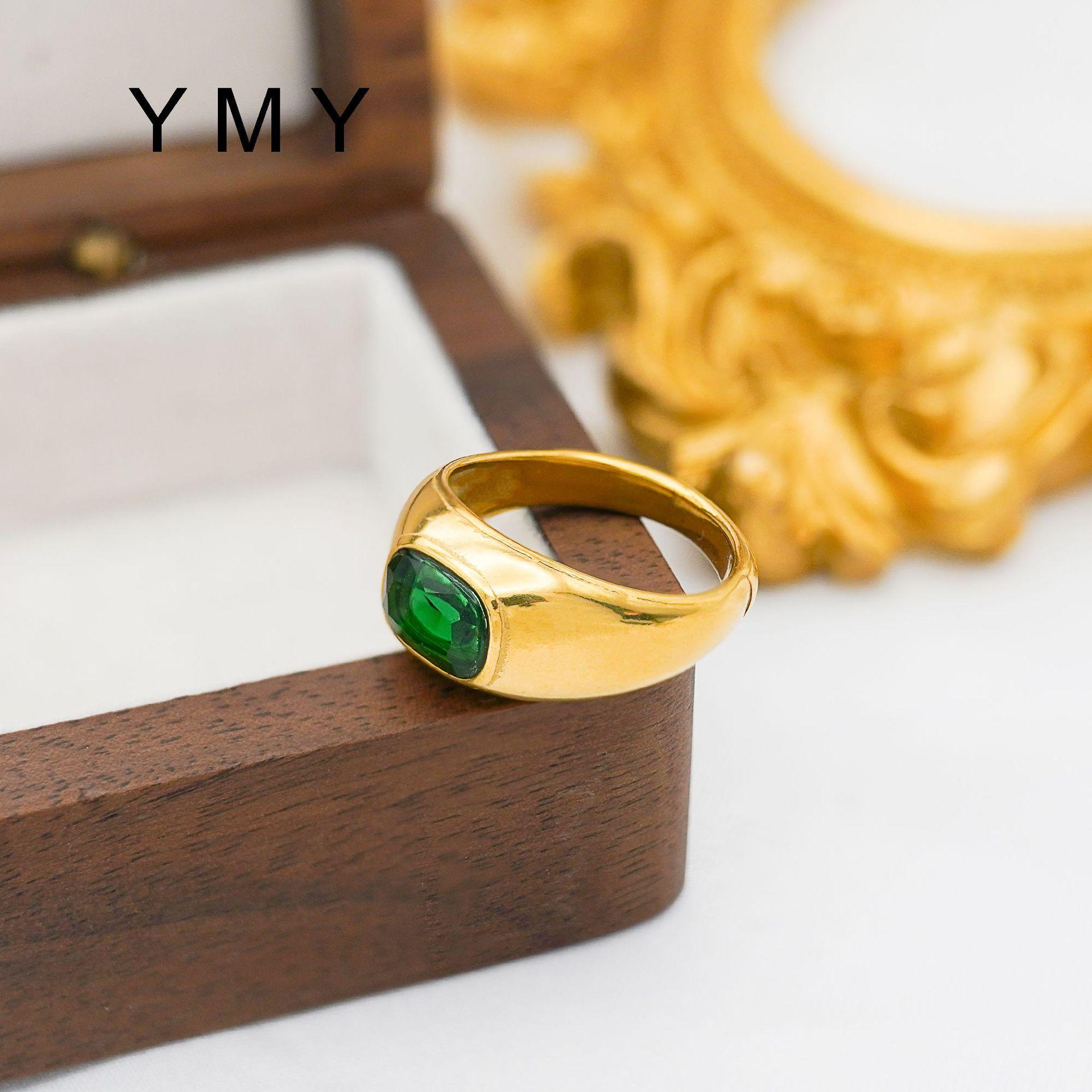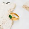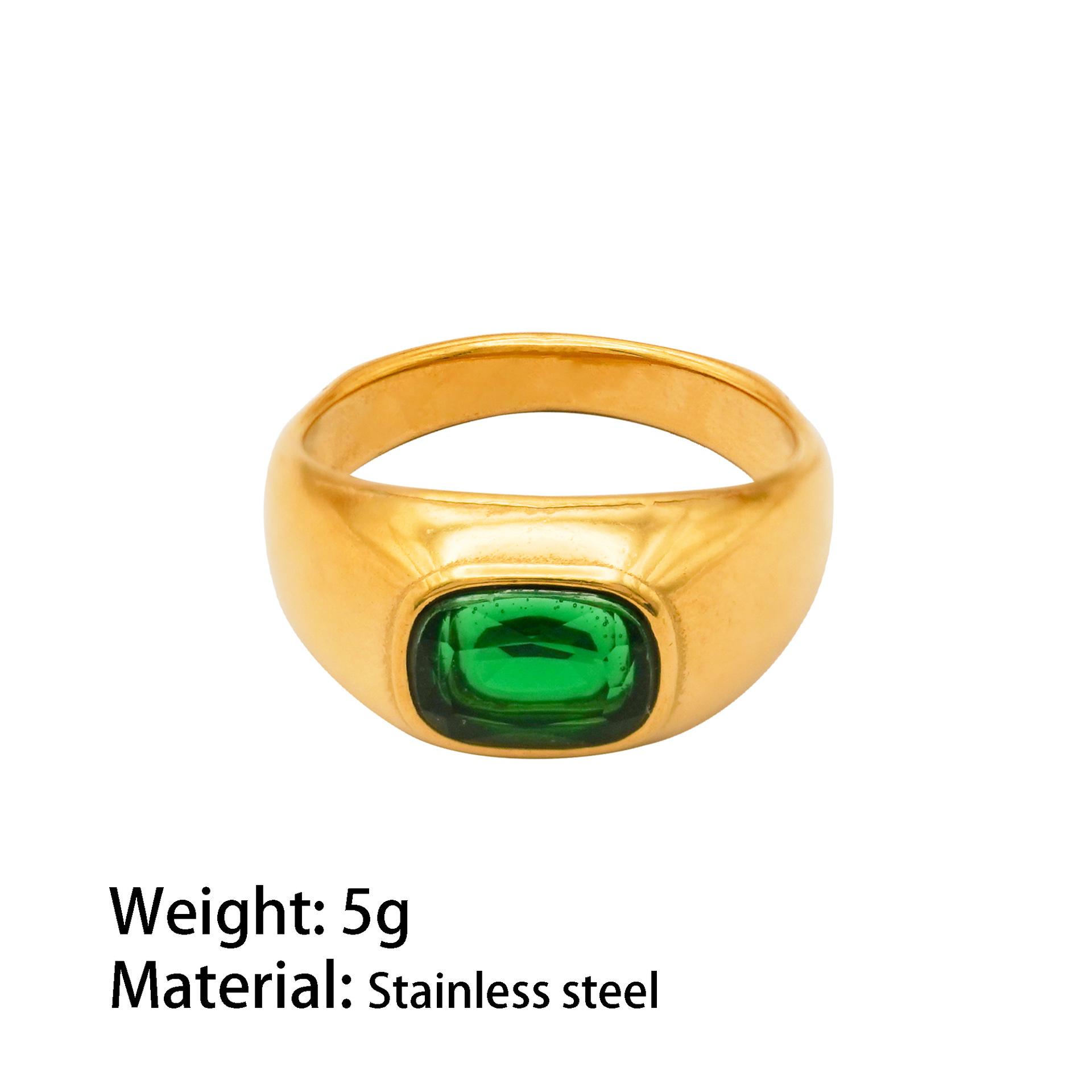 Anillo Cuadrado de Acero de Titanio con Diseño de Nicho Retro Elegante Europeo y Americano con Zircón Verde Chapado en Oro de 18K Anillo de Moda para el Trabajo