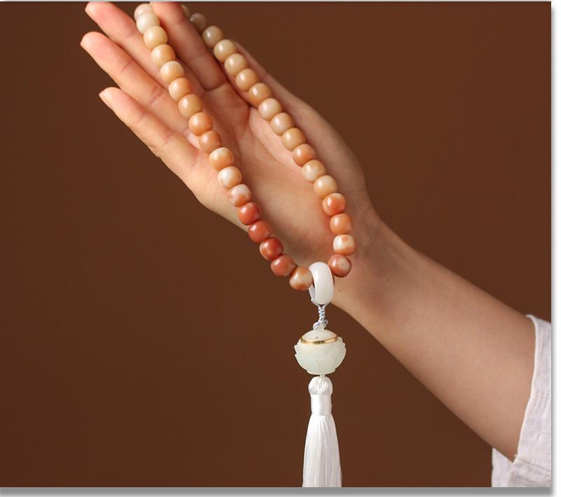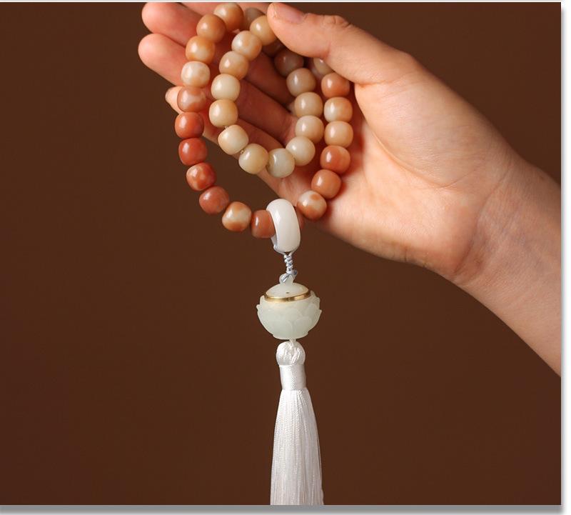 Rosario de mano Bodhi de jade blanco natural desgastado de Hainan, bolsita suave de viento nacional alrededor del dedo, juego de Wen, juego de placa de cuerda de mano Bodhi