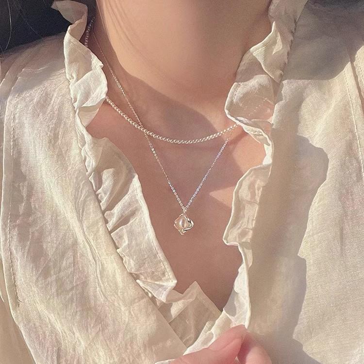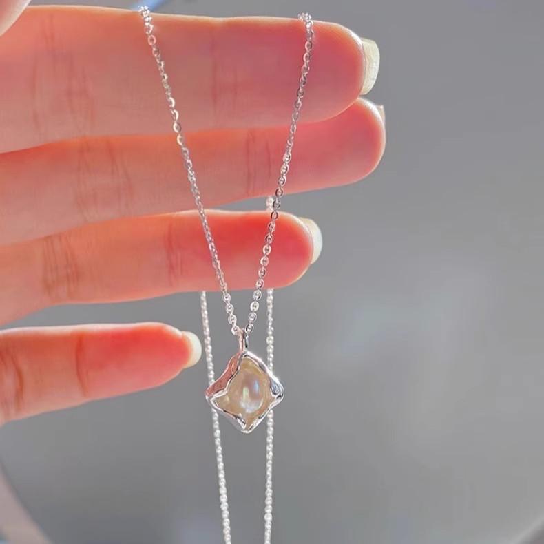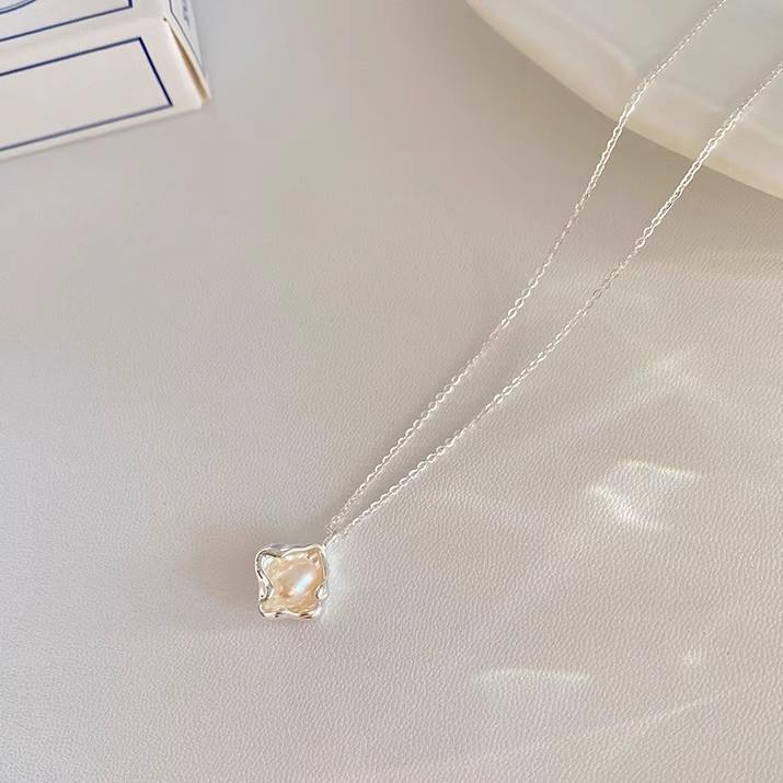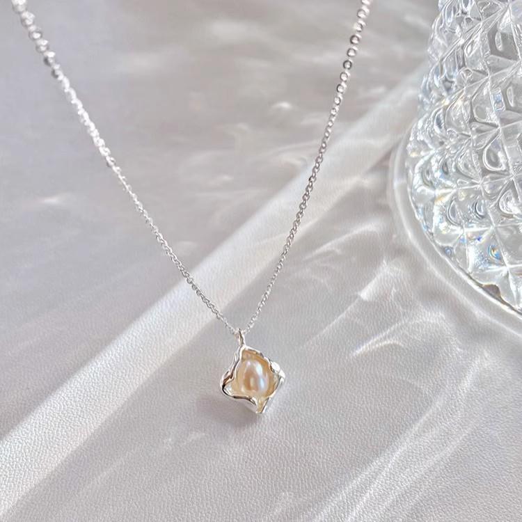 Collar irregular de perlas sencillas para mujer, novedad de 2024, diseño de nicho, estilo viajero, cadena de clavícula de lava cuadrada.