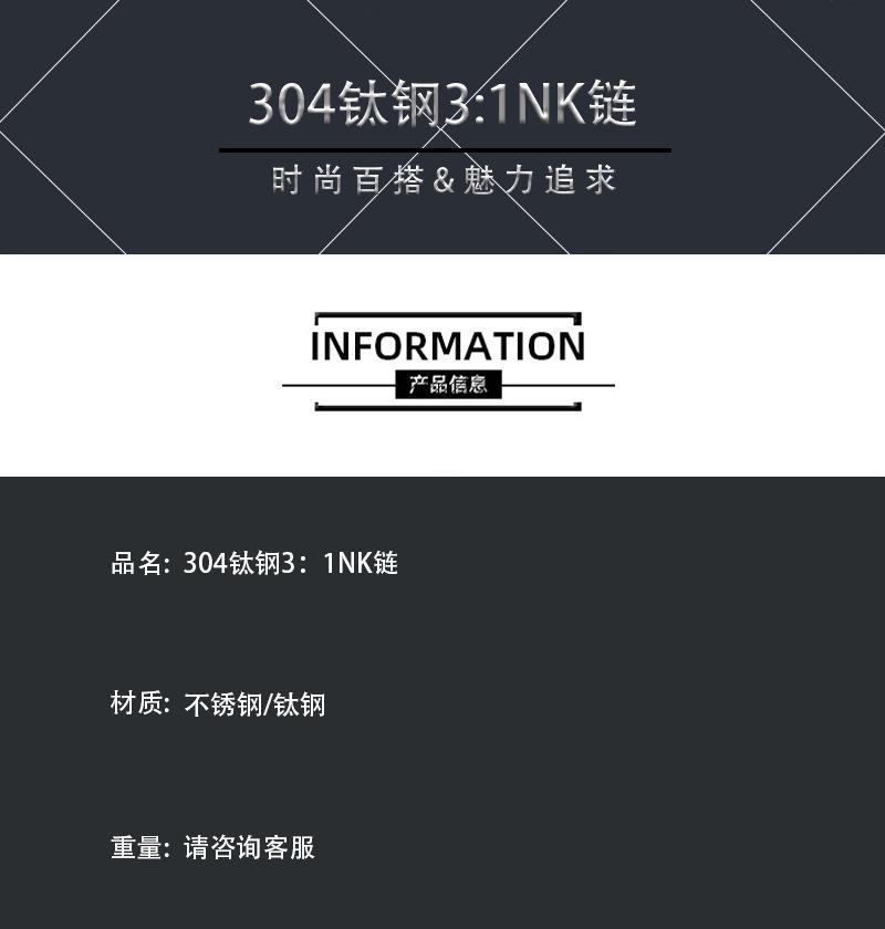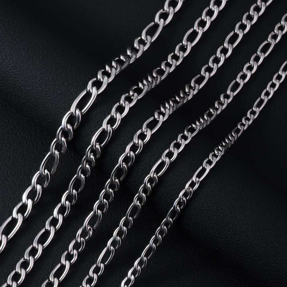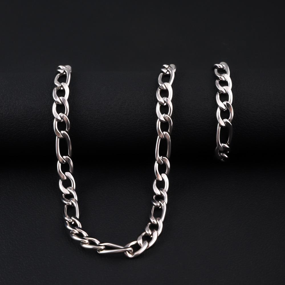 Collar de cadena Figaro de acero inoxidable con borde cruzado, estilo hip hop, estilo cubano, para hombre.:Pulsera de acero de titanio 1NK al por mayor