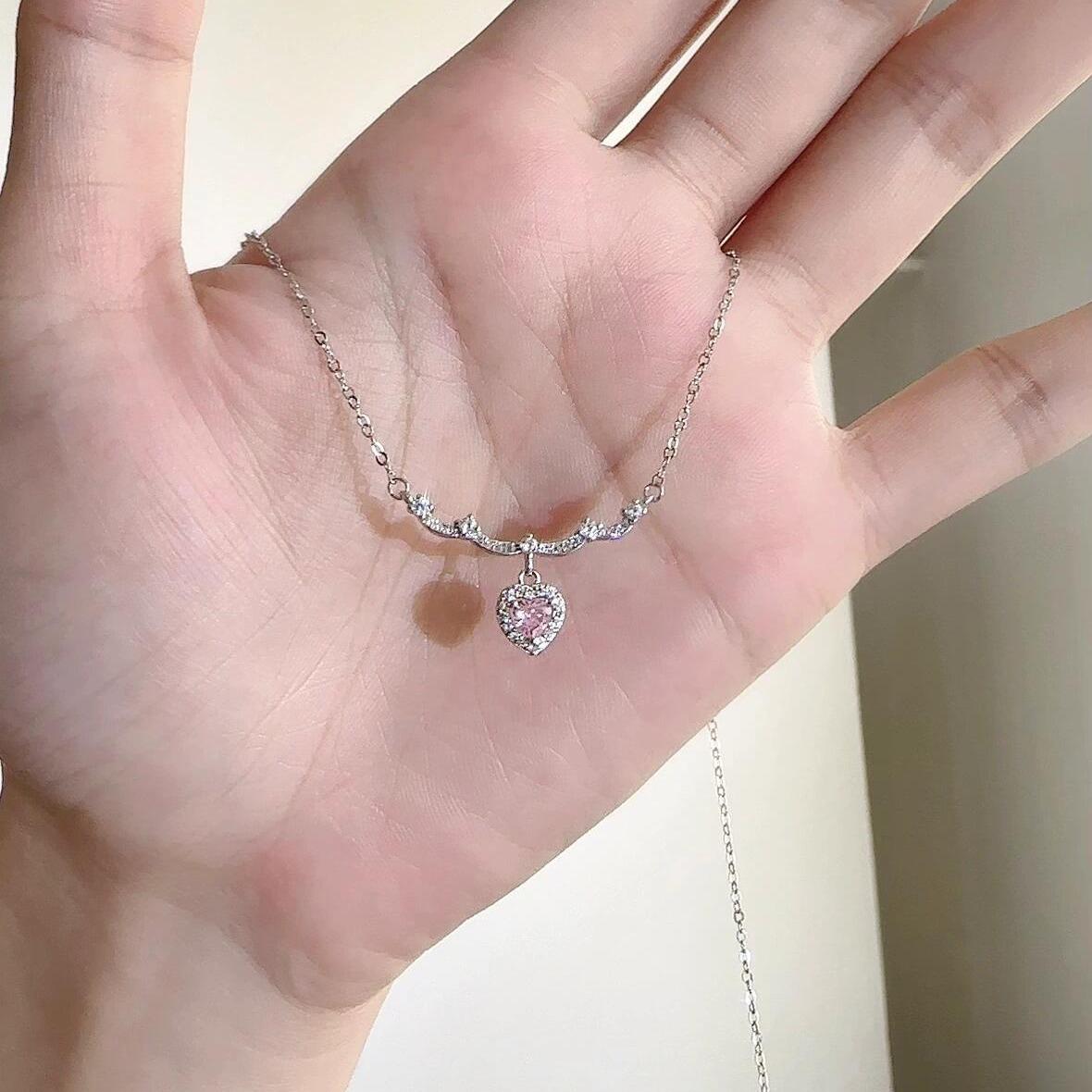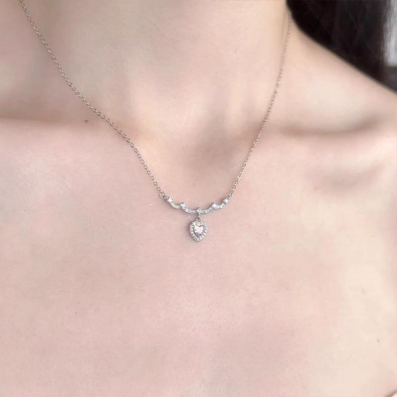 Lace pink diamond love necklace, Lace white diamond love necklace