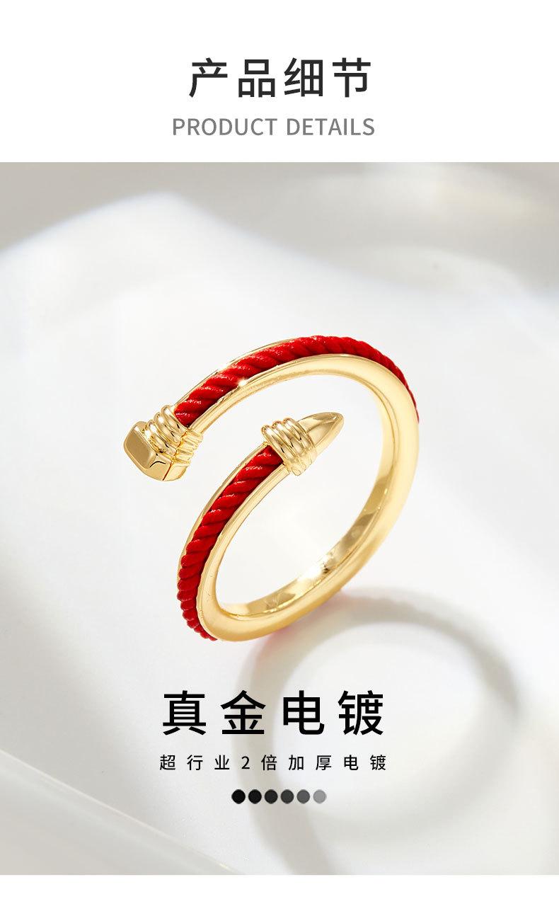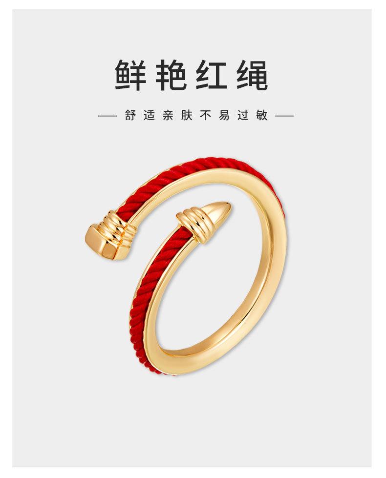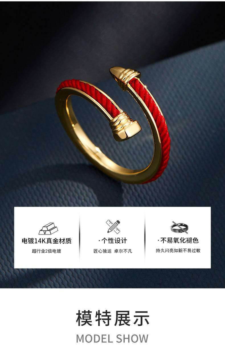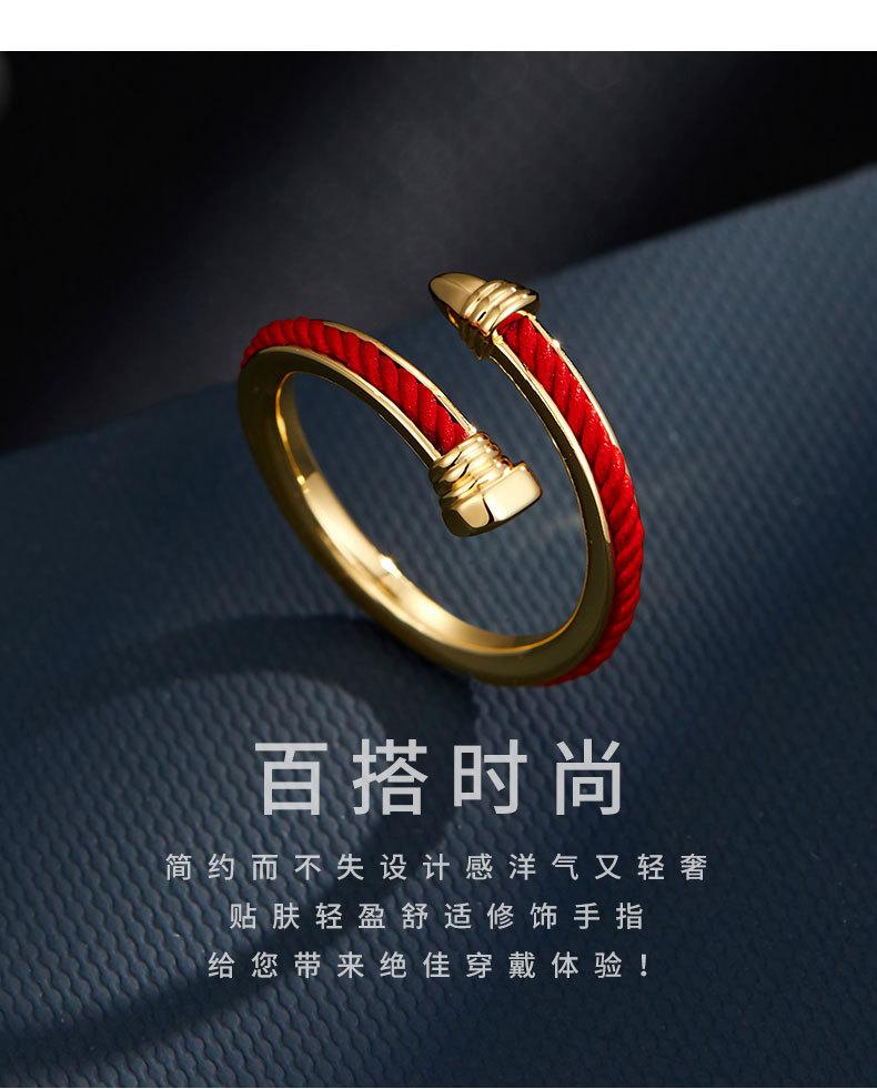 Anillo Abierto de Cuerda Roja de Año Nuevo Nuevo Chino Simple Versátil Ajustable Anillo de Dedo para Dieta Diseño Original Anillo con Sentido Avanzado