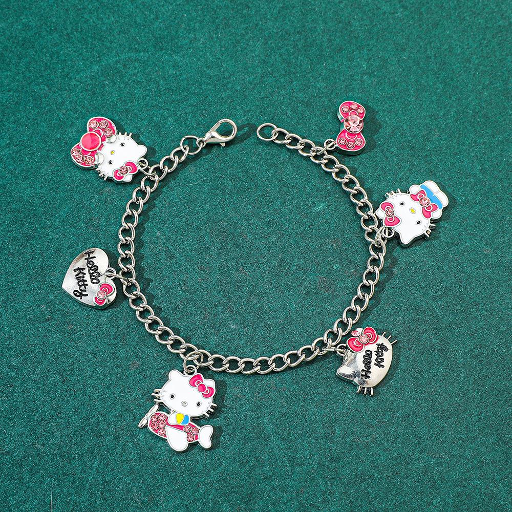 Pulsera de joyería de Sanrio con animación de dibujos animados transfronterizos, colgante de gota de aceite de aleación de HelloKitty