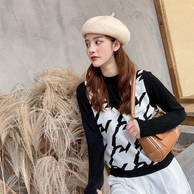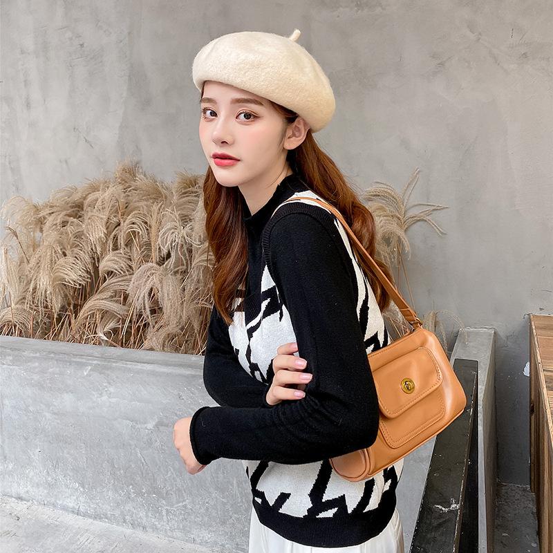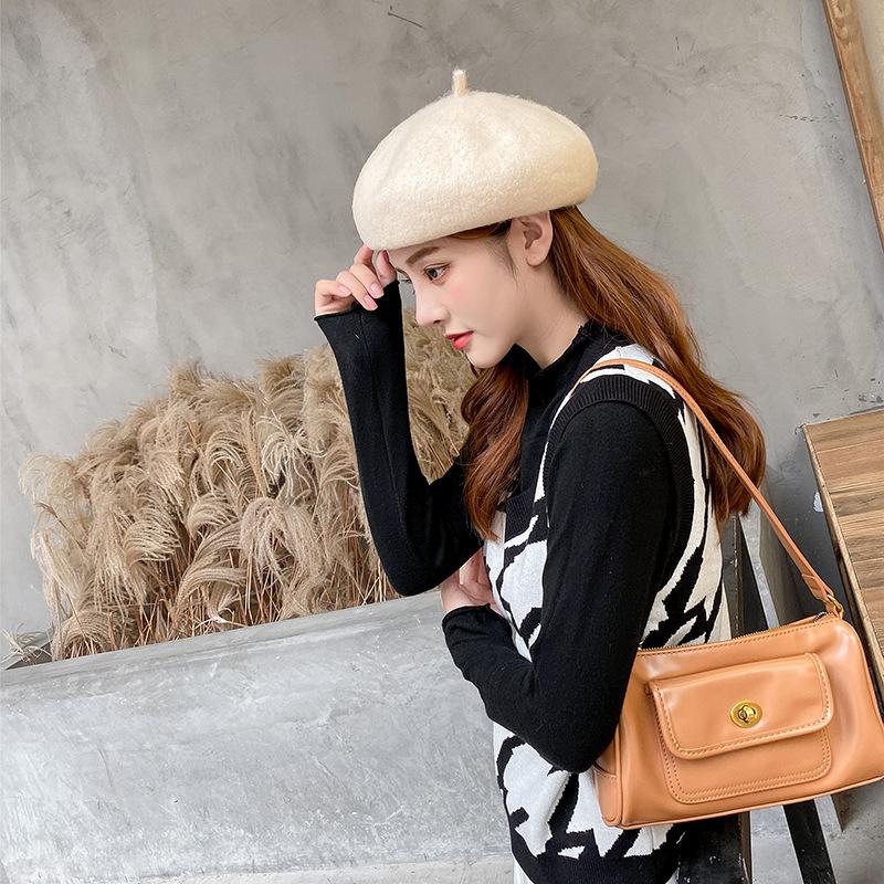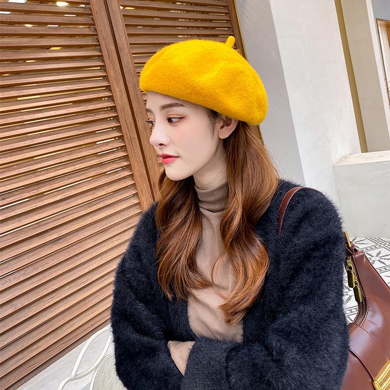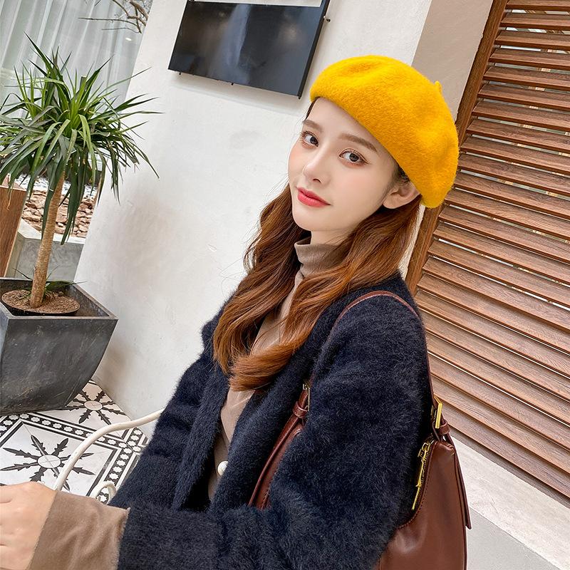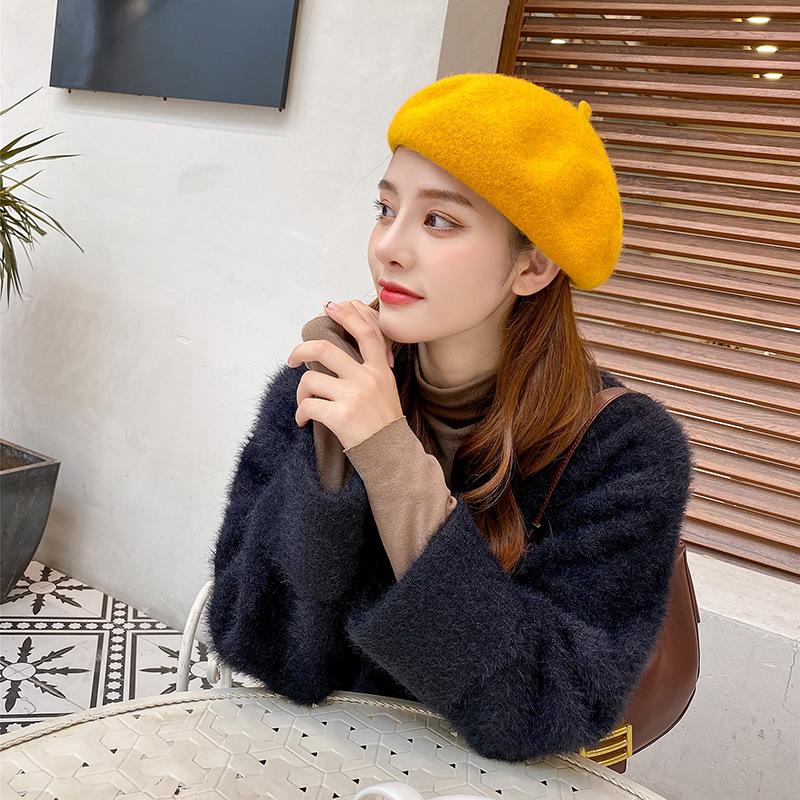 Boina de pintor para mujer, estilo retro británico, estilo coreano, informal, de lana, estilo japonés, combina con todo, para otoño e invierno.