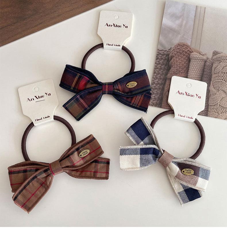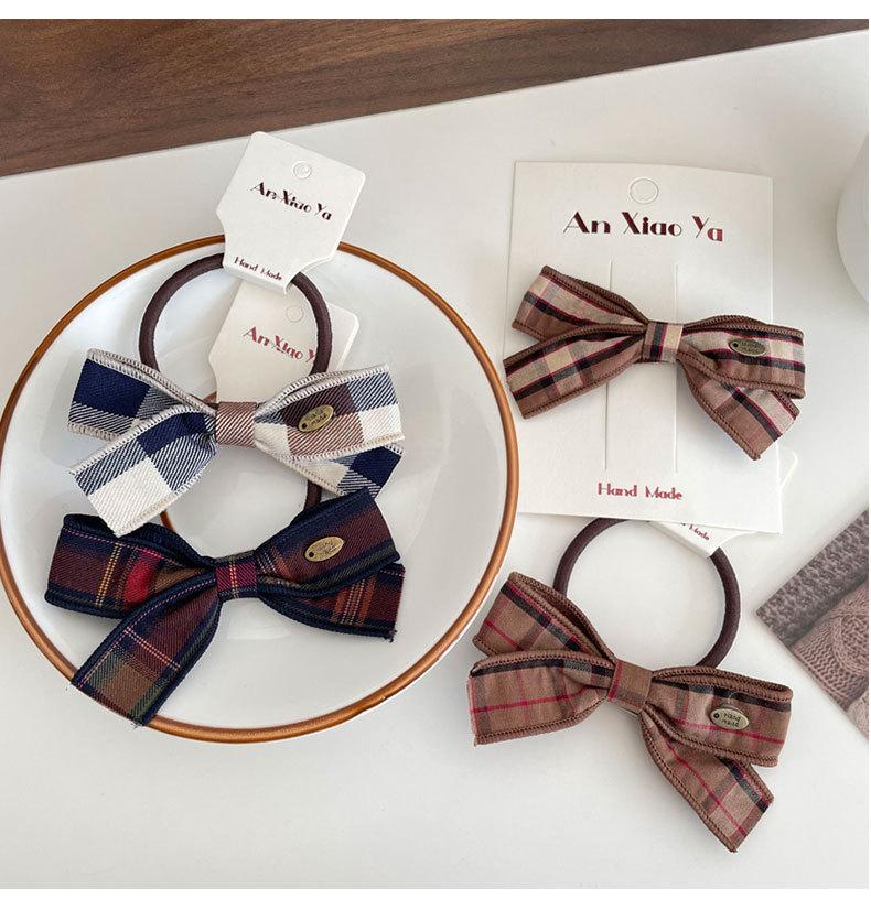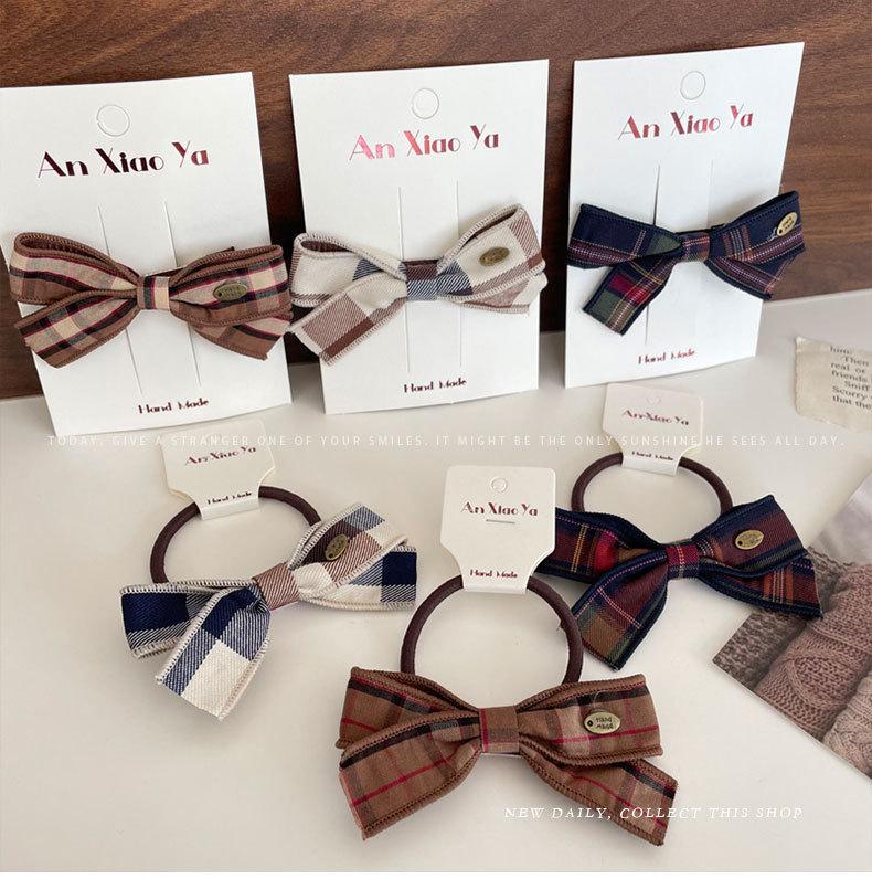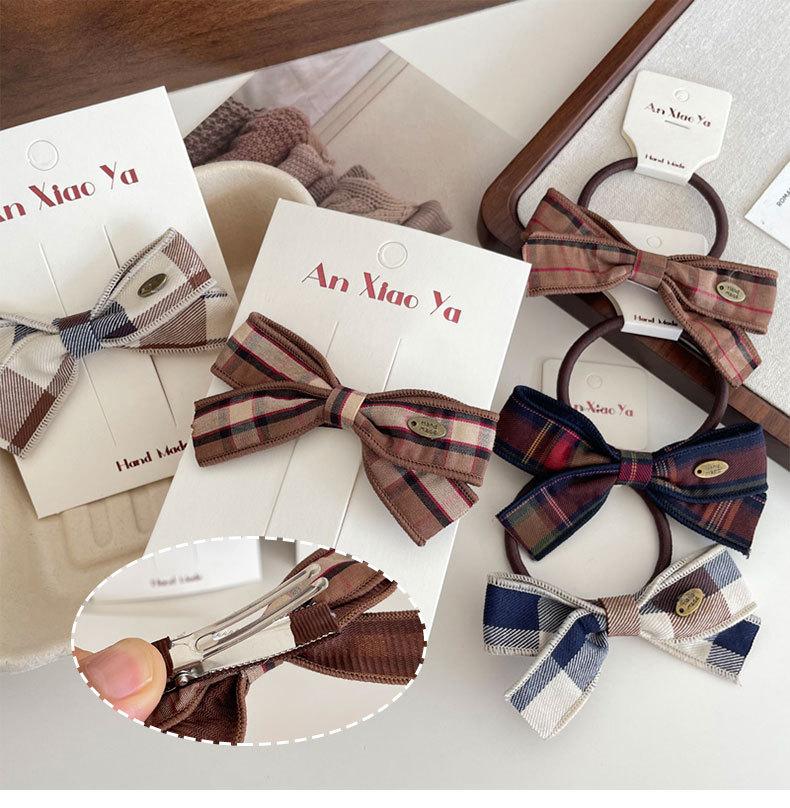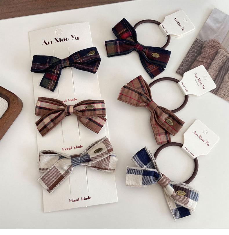 Pinza para el pelo infantil con lazo de cuadros de alta calidad, estilo universitario, pajarita para todo tipo de combinaciones, anilla para el pelo, accesorios para el pelo de tela de estilo retro francés