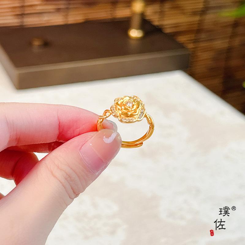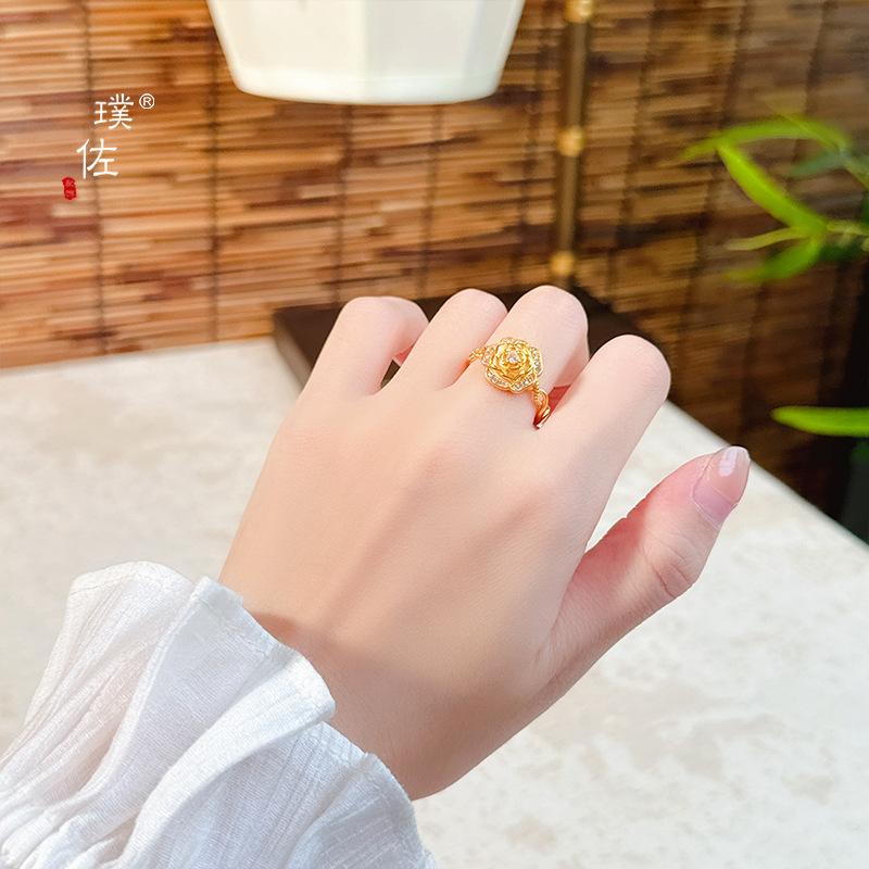 Joyería de oro con anillo de rosa de diamante de arena para mujer, estilo ins, anillo de moda ajustable para regalo de novia