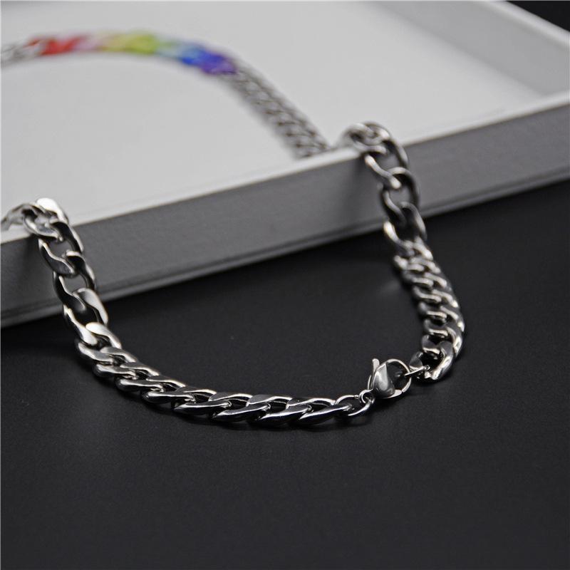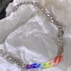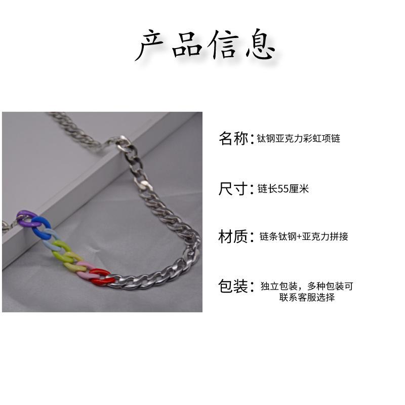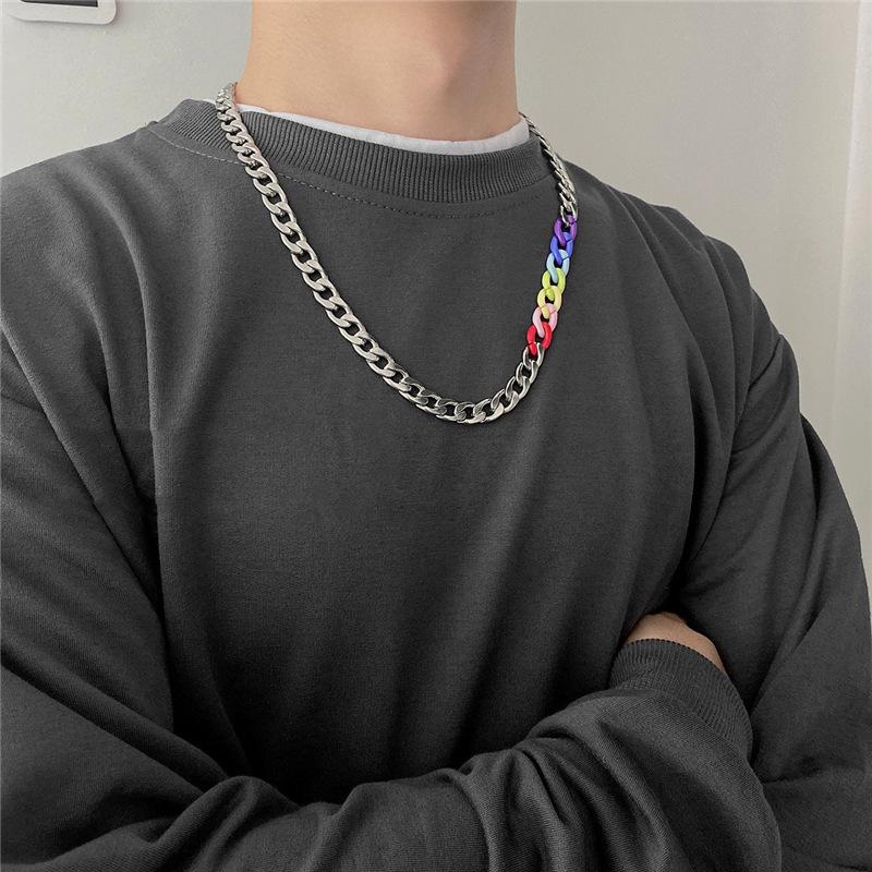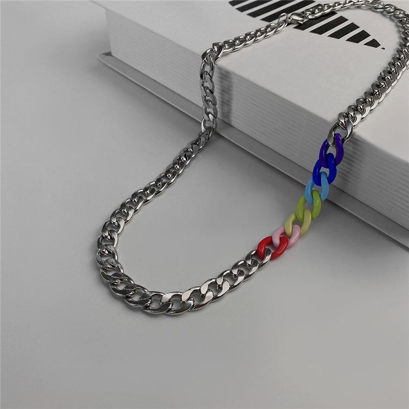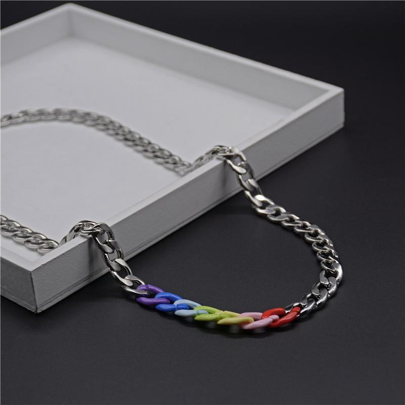 Collar cubano de acero de titanio con empalme de cadena de arcoíris acrílico, simple y moderno, para hombres y mujeres, ideal para parejas, estilo hip-hop.
