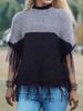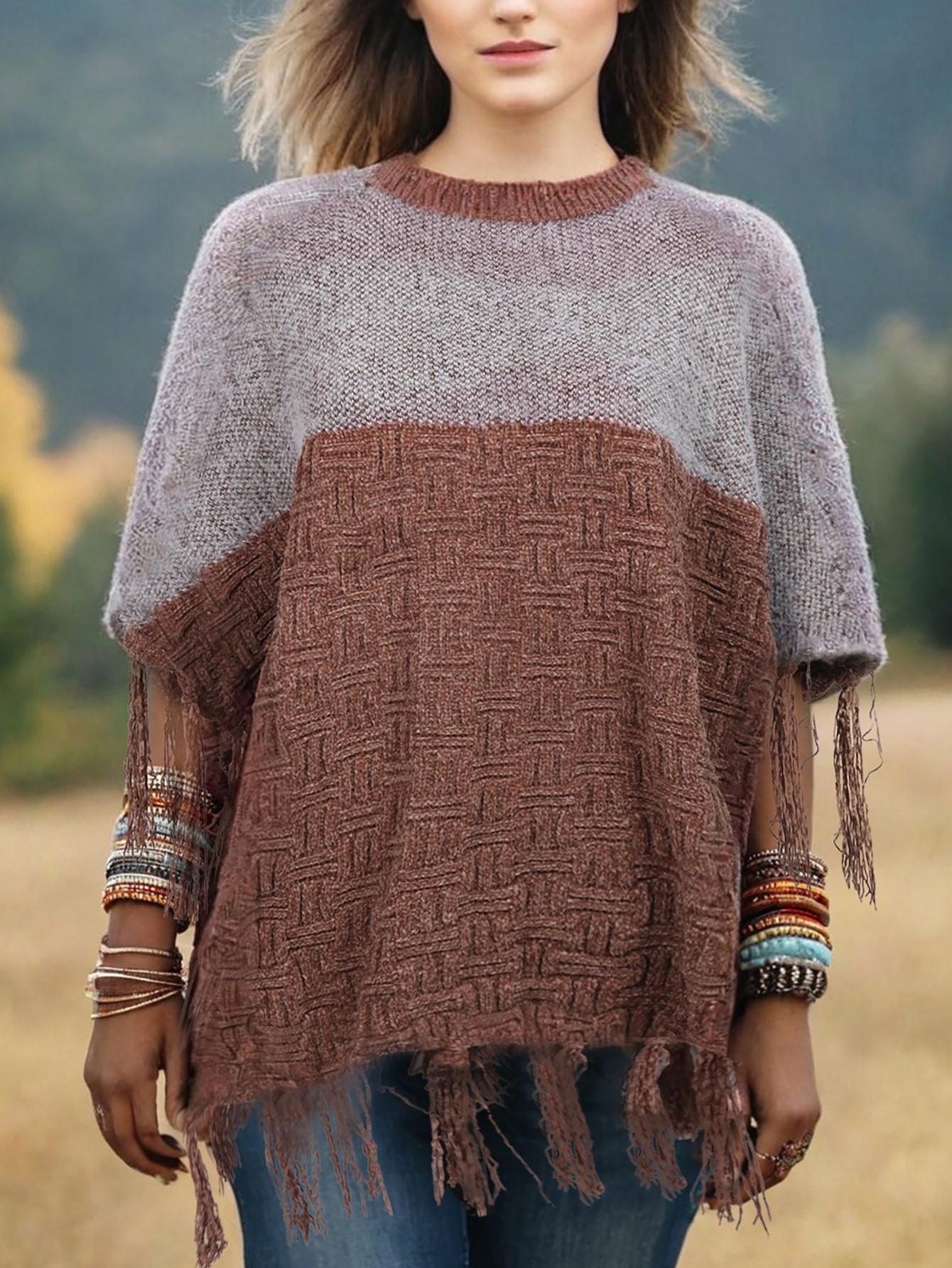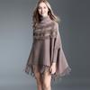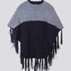 Suéter de cuello redondo de punto de talla grande con borde cruzado de otoño e invierno, chal de lana para mujer, capa cálida con borlas y poncho.