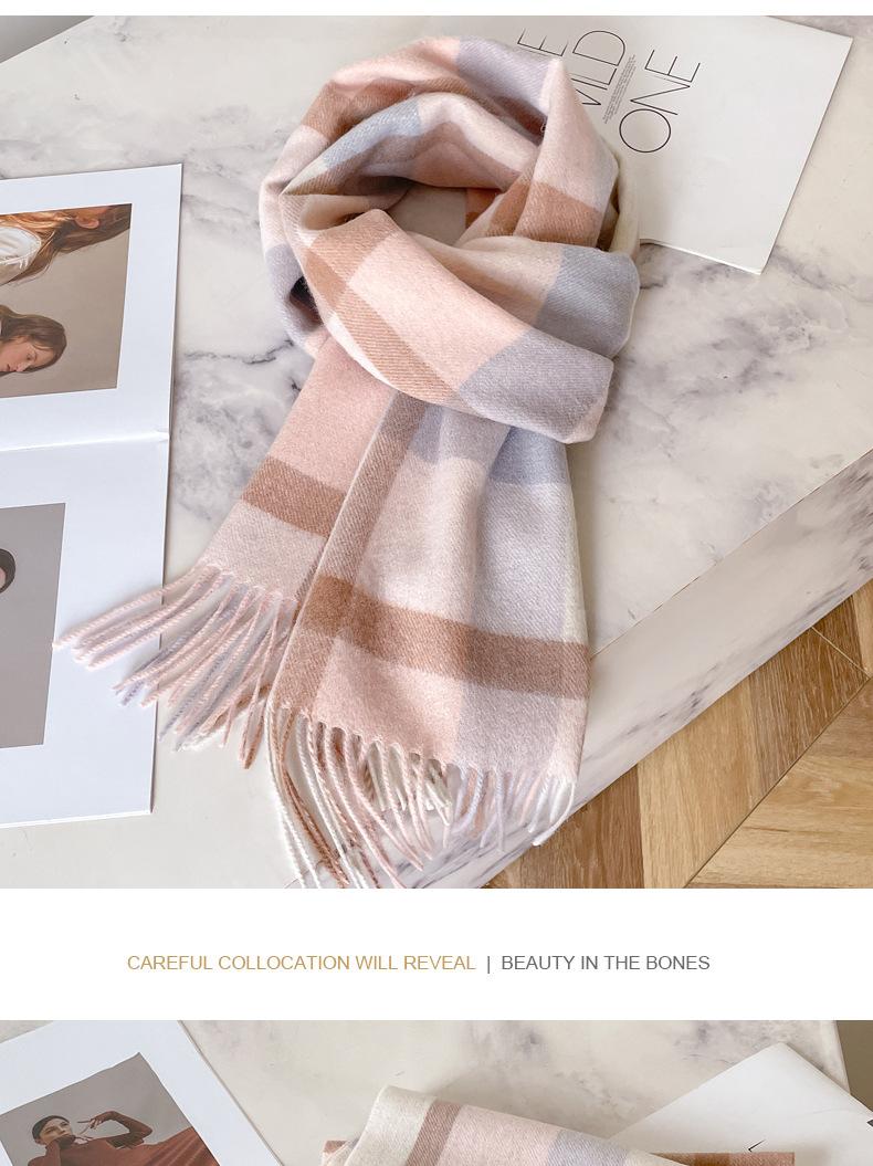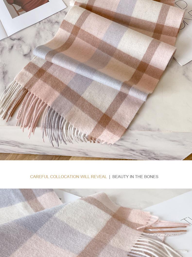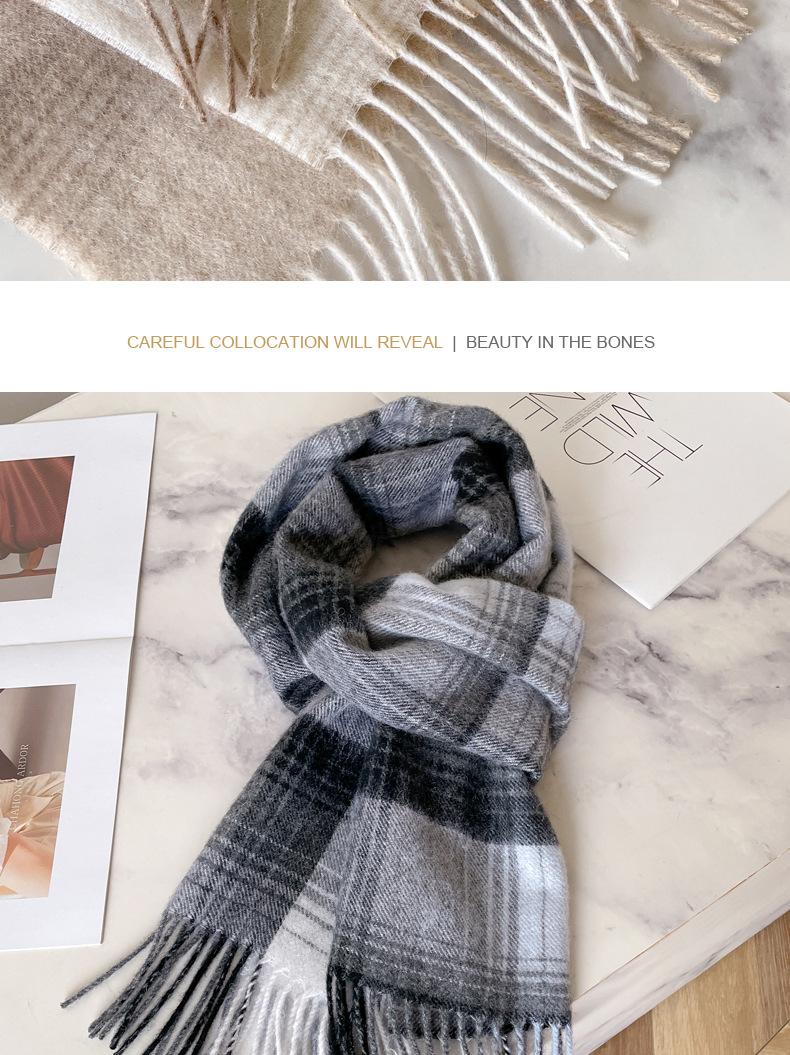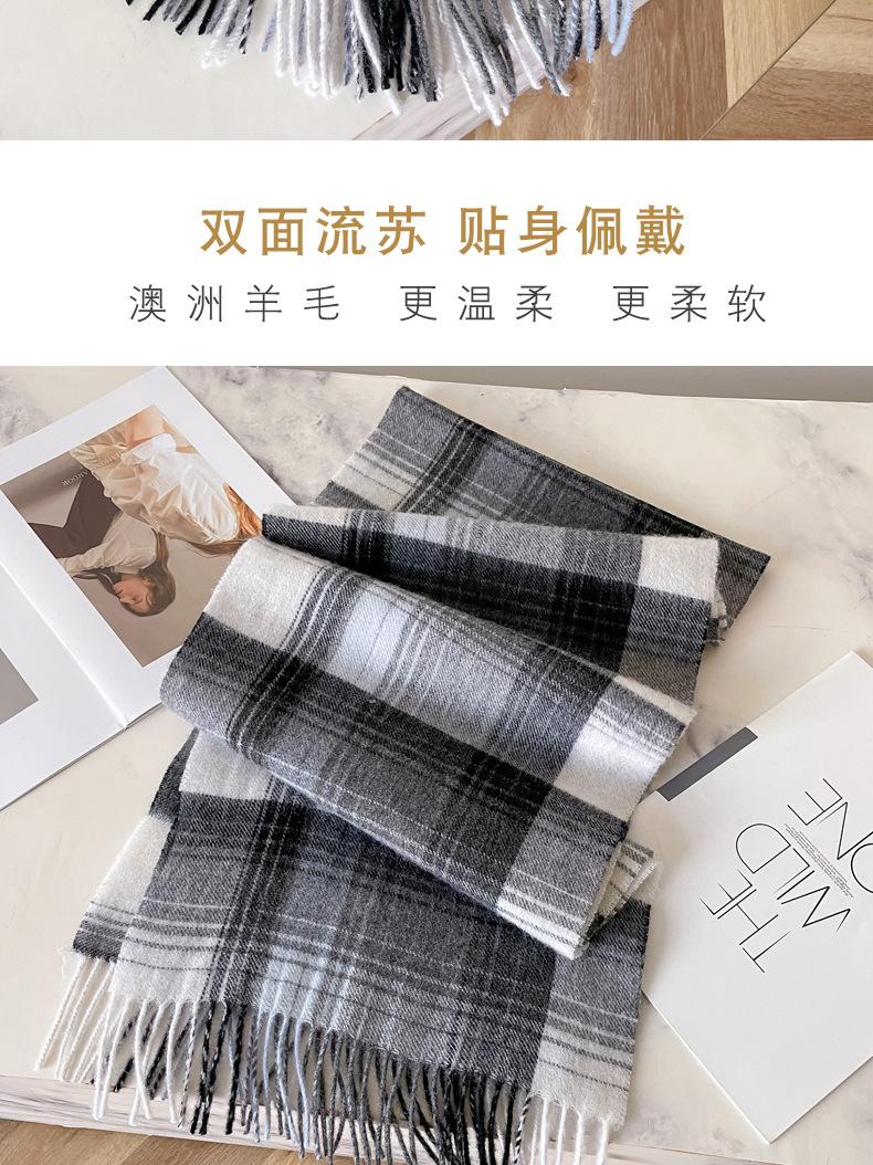 Bufanda de cuadros de lana australiana 100% para hombres y mujeres, bufanda de cachemira cálida de invierno para pareja coreana, estilo británico de alta gama