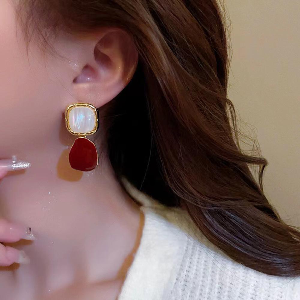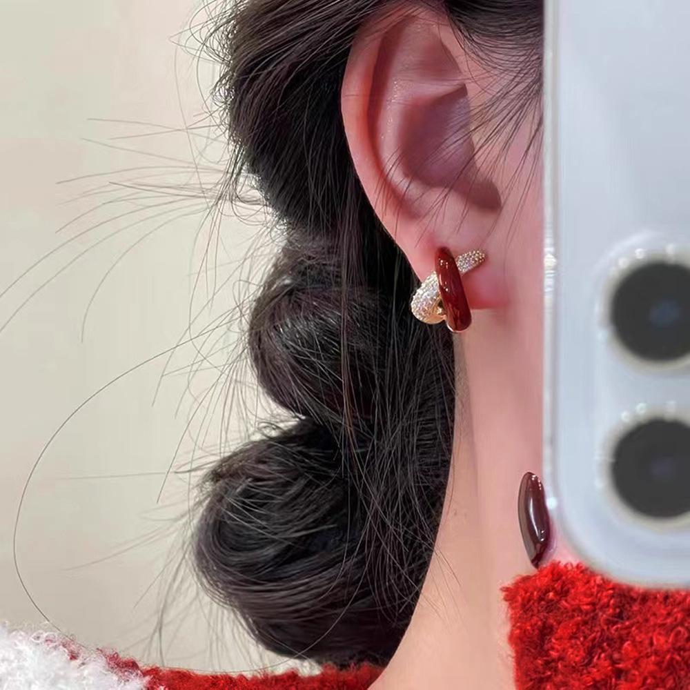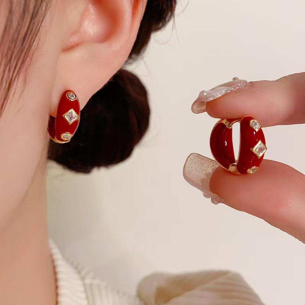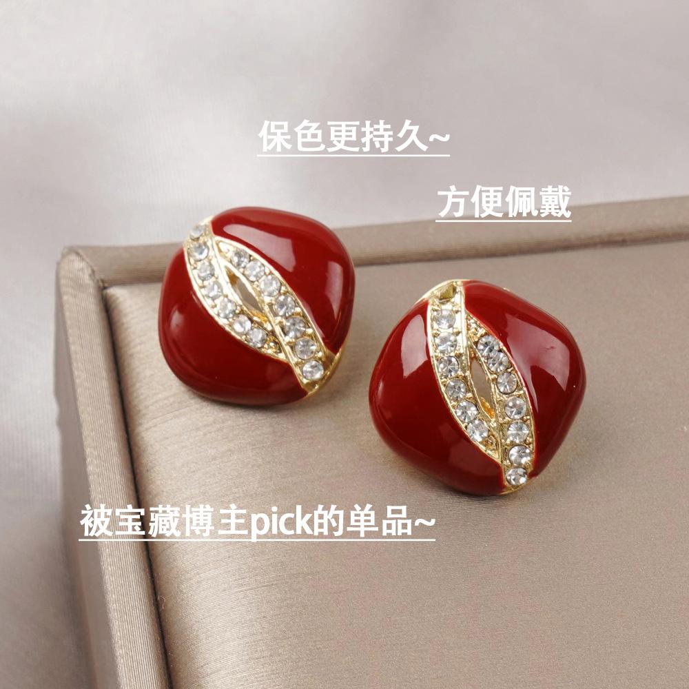 Pendientes rojos Ankora estilo Hong Kong vintage, elegantes pendientes de nicho francés para mujer, novedad 2024