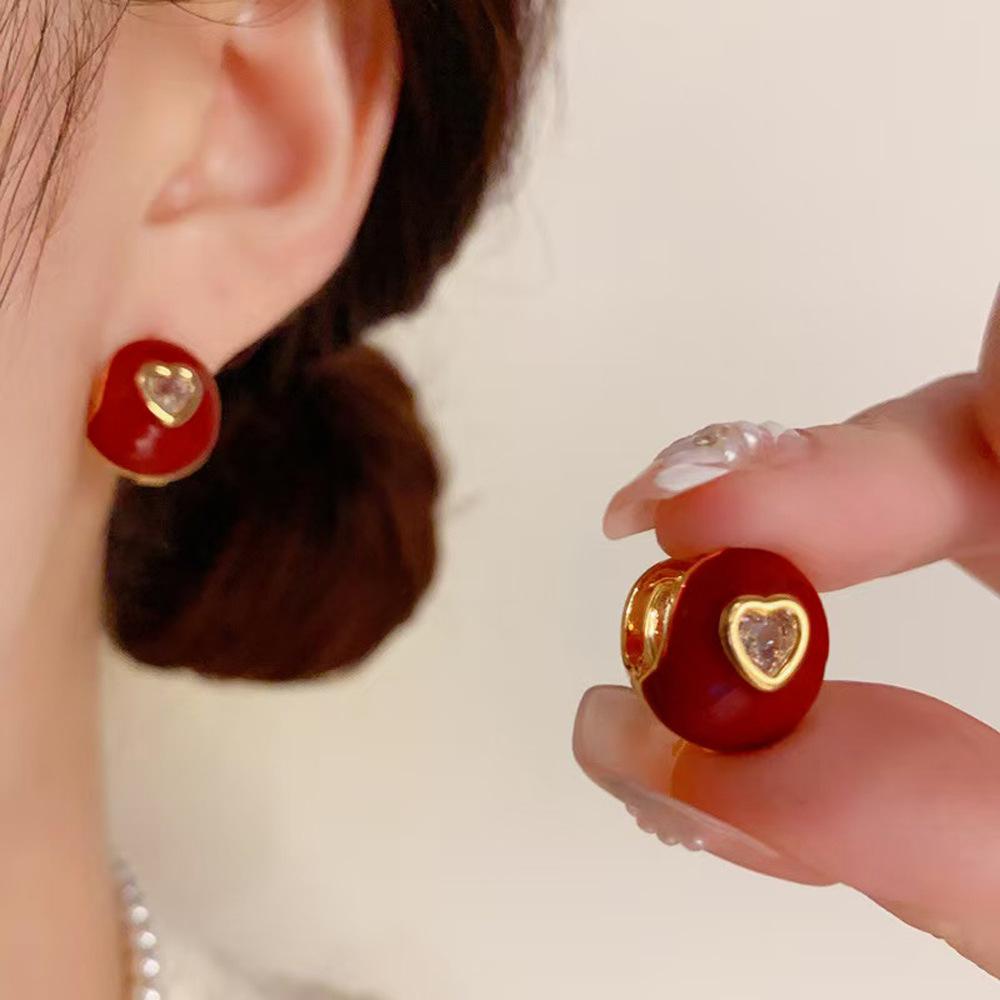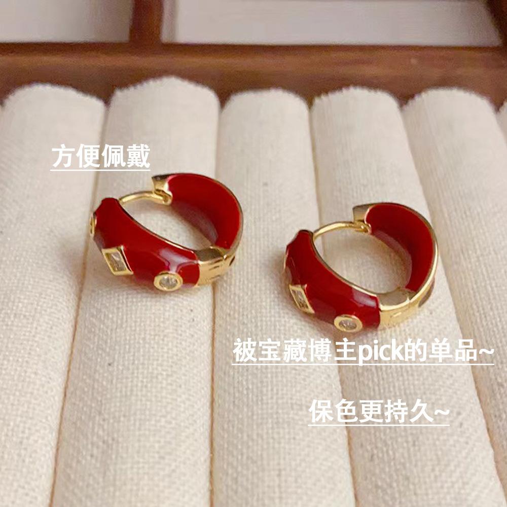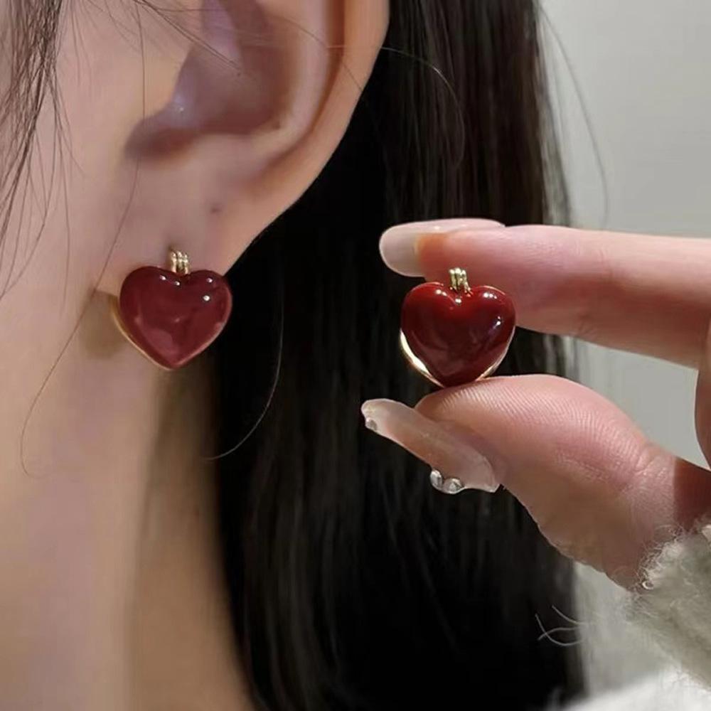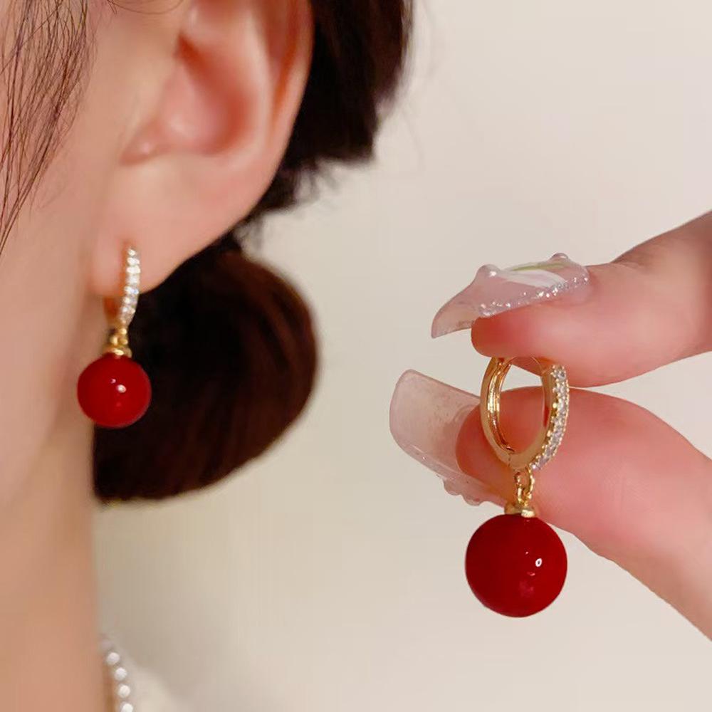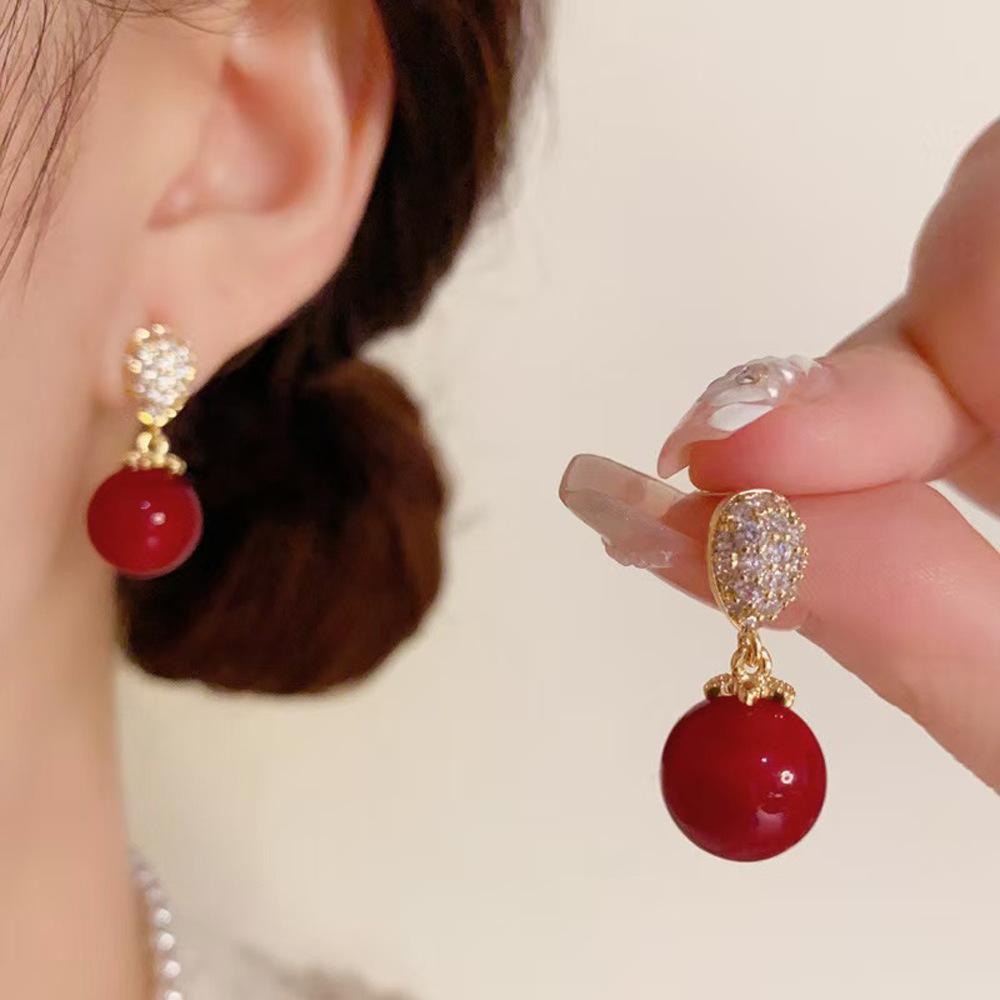 Pendientes rojos Ankora estilo Hong Kong vintage, elegantes pendientes de nicho francés para mujer, novedad 2024