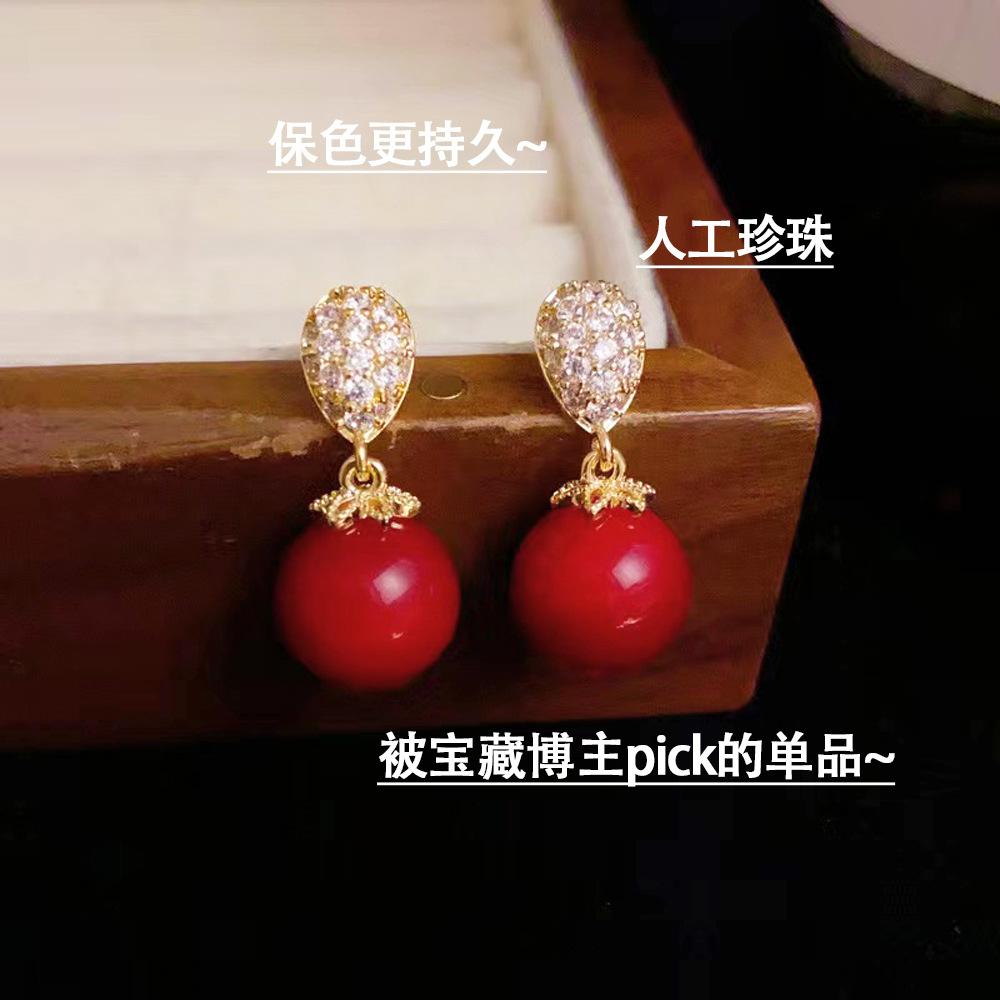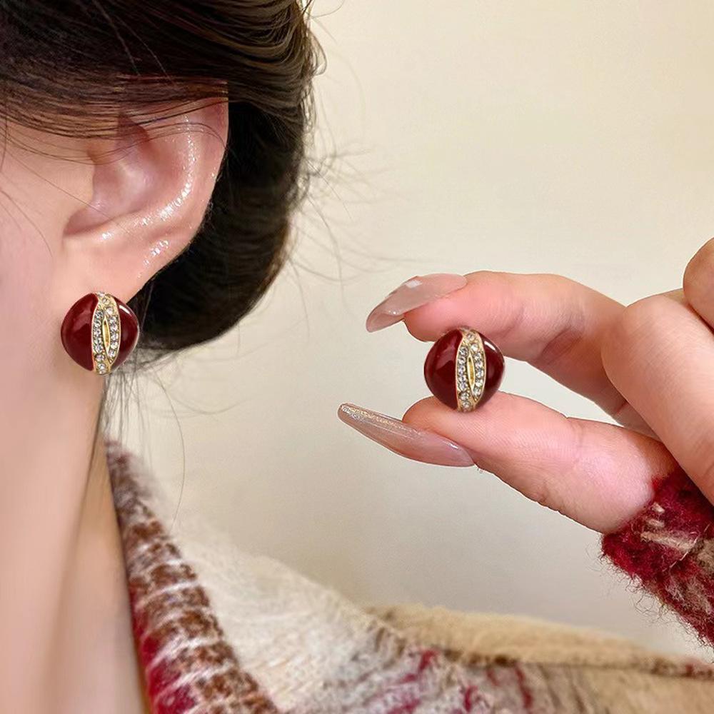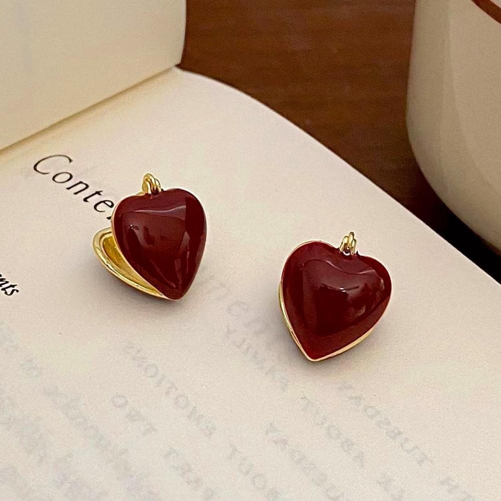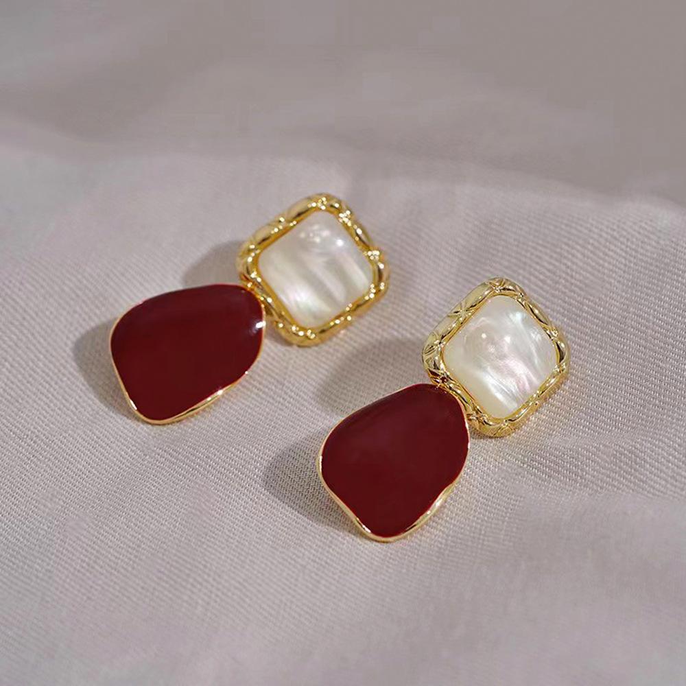 Pendientes rojos Ankora estilo Hong Kong vintage, elegantes pendientes de nicho francés para mujer, novedad 2024