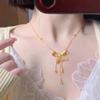 Nuevo collar de princesa con lazo grande, colgante dorado, borla de amor chapada en oro y cobre, cadena integrada con temperamento, cadena de clavícula