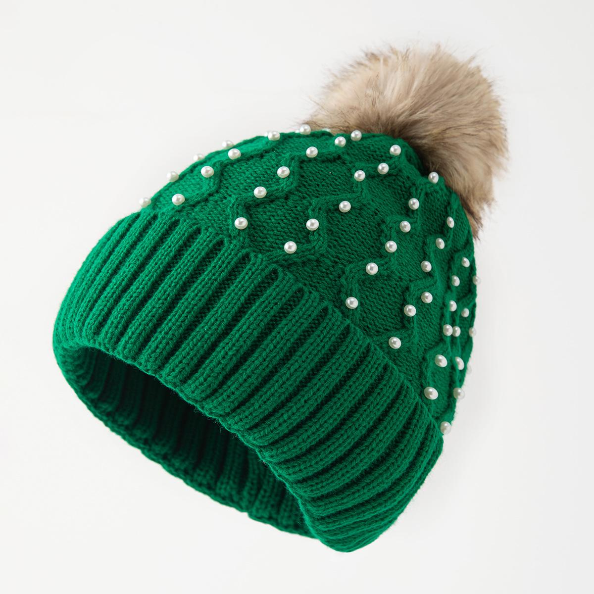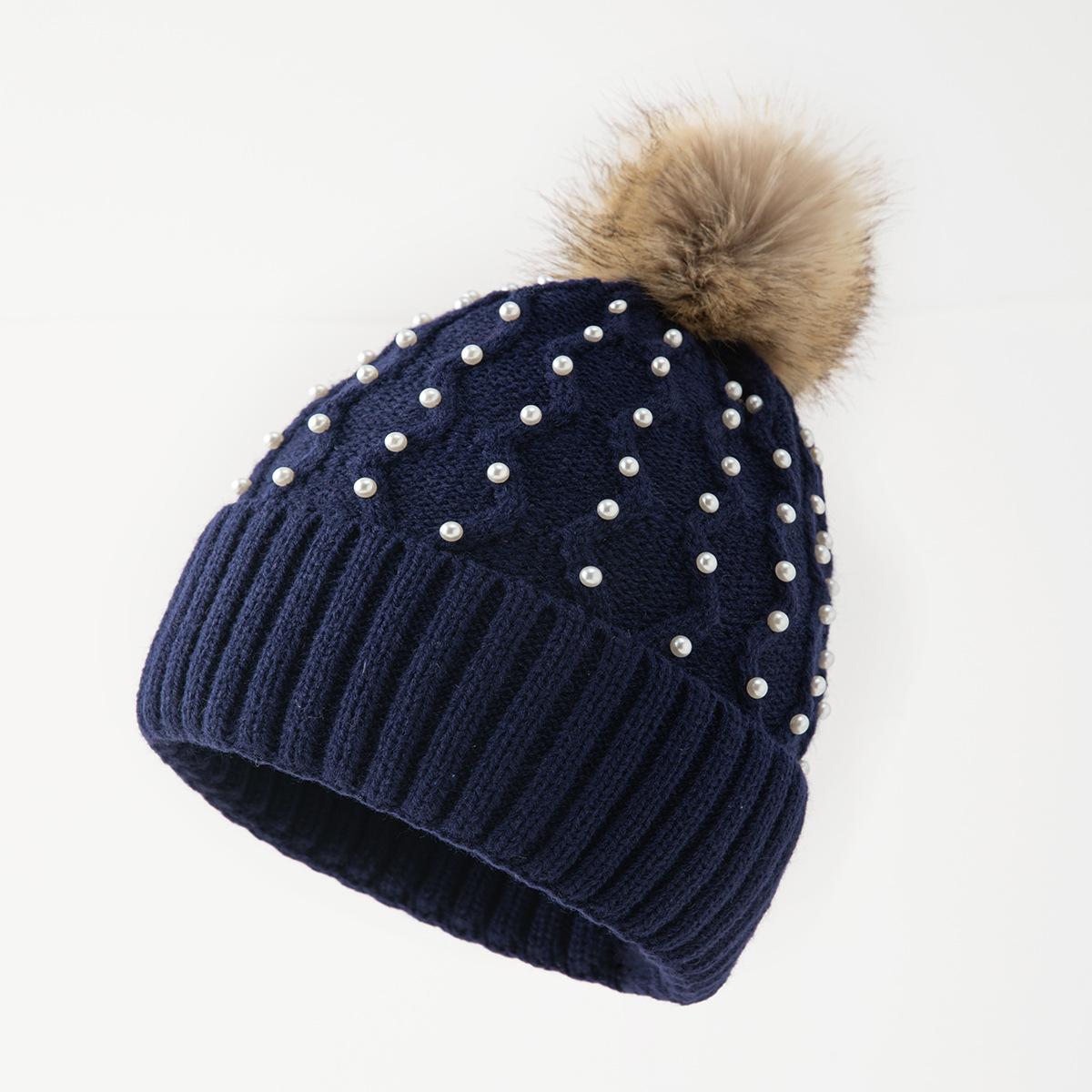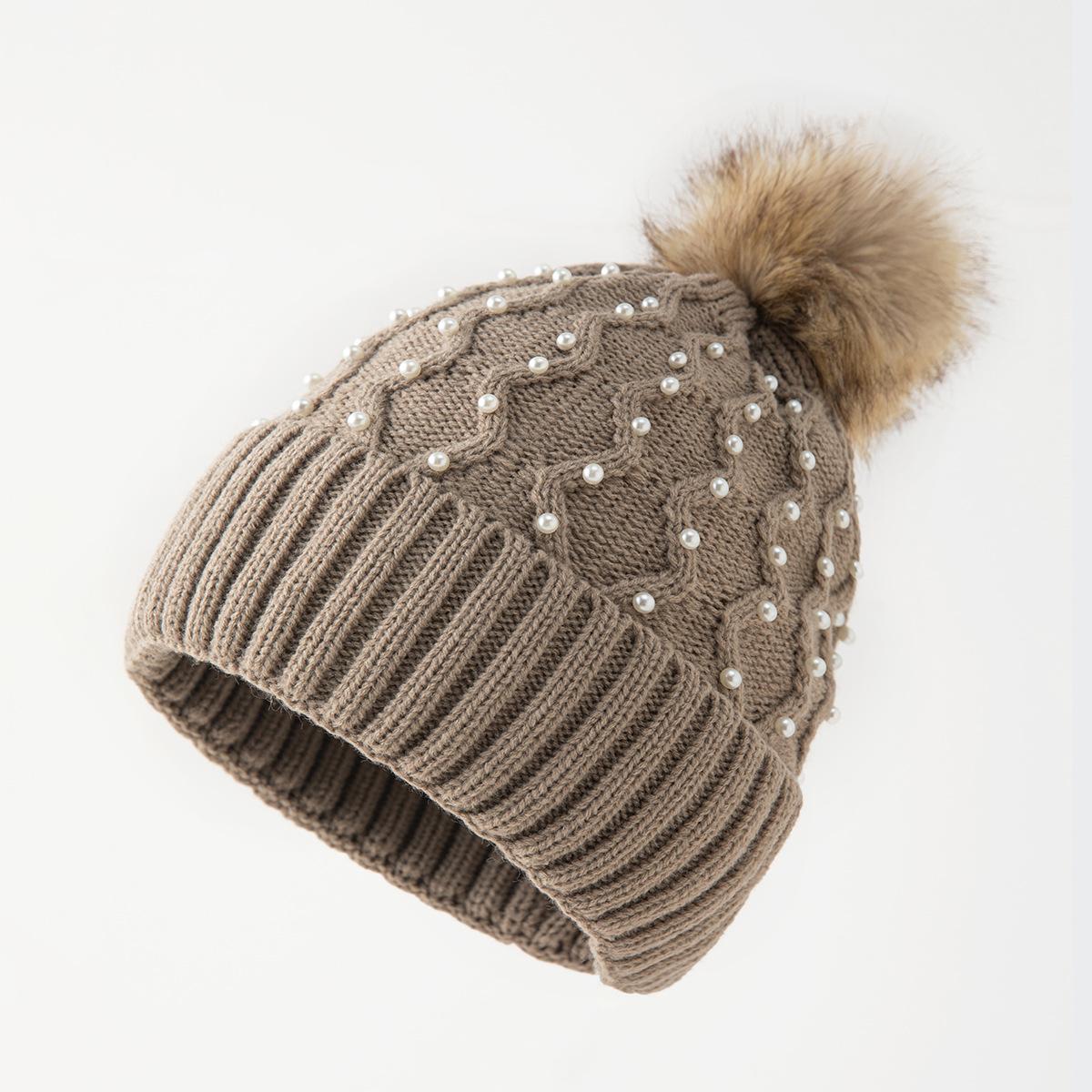 Nuevo Gorro de Lana Grueso Tejido con Bola de Piel de Perla Europea y Americana, Moderno Elegante, Otoño e Invierno Cálido, para Viaje, Protección para las Orejas