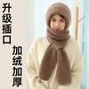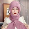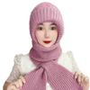 Gorro de mujer para otoño e invierno, cálido, con bufanda, gorro de invierno integrado, gorro de lana con forro polar para mujer, gorro de punto con hebilla y protección para las orejas.