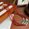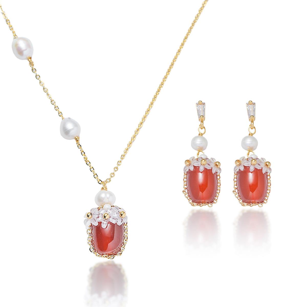 Collar sencillo de ágata roja natural para mujer, collar de flores con perlas de agua dulce, estilo vintage, elegante cadena de clavícula.