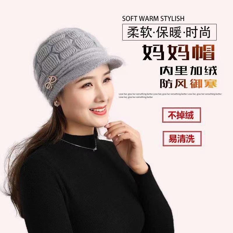 Sombreros para mujeres de mediana edad y mayores, sombreros de abuela, sombreros de lana tejidos para otoño e invierno para madres, sombreros de terciopelo cálidos con forma de farol para damas.