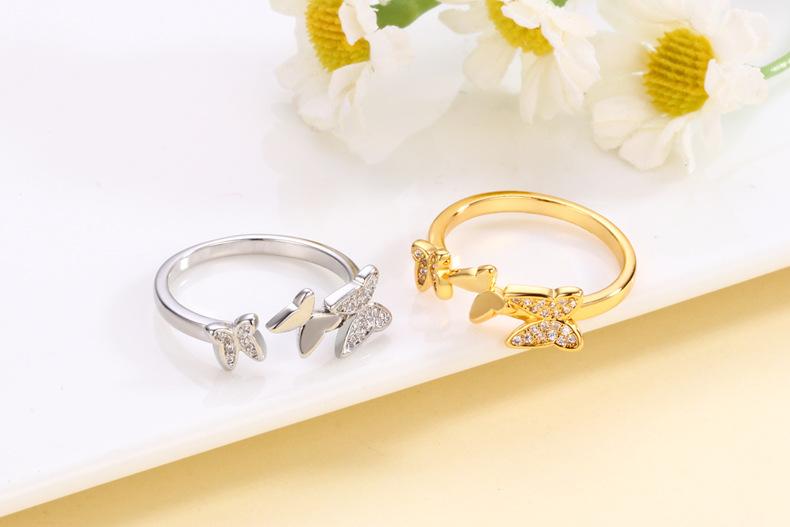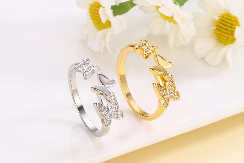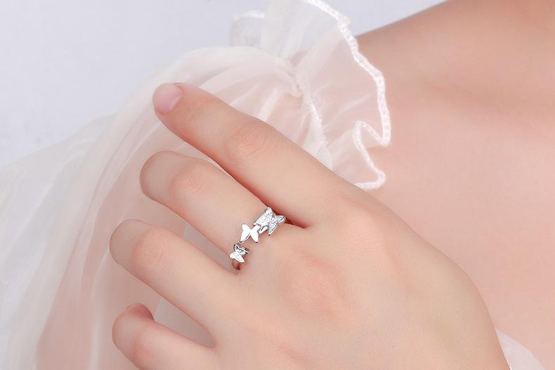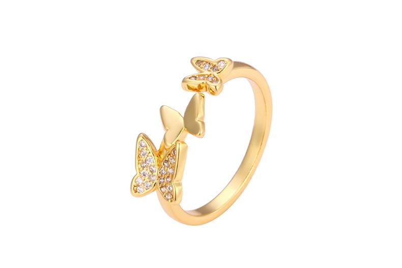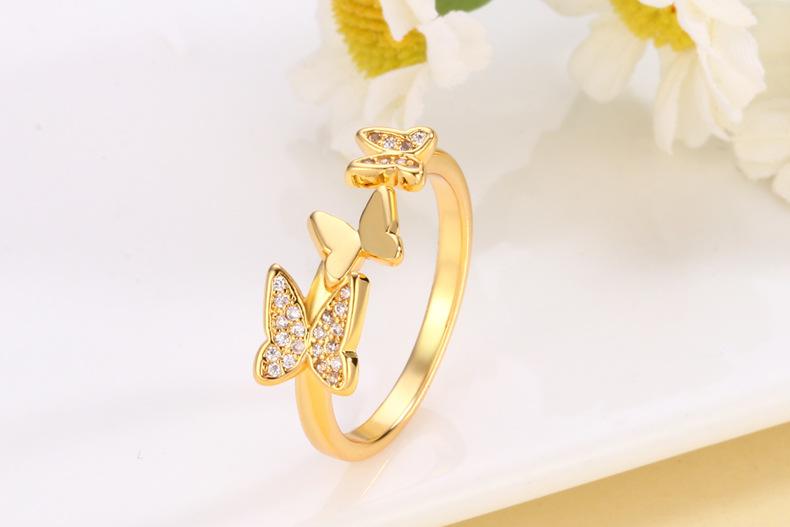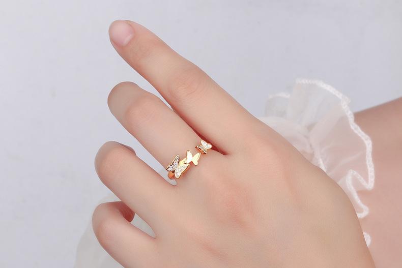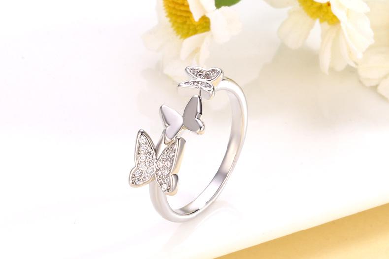 Anillo de Mariposa de Circonita de Tamaño de Tendencia Europea y Americana para Mujer, Diseño de Nicho, Tres Mariposas, Apertura Ajustable, Anillo de Dedo para Dieta