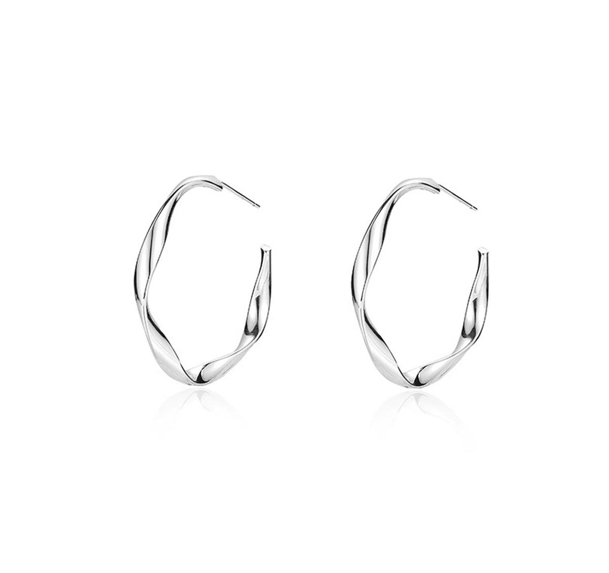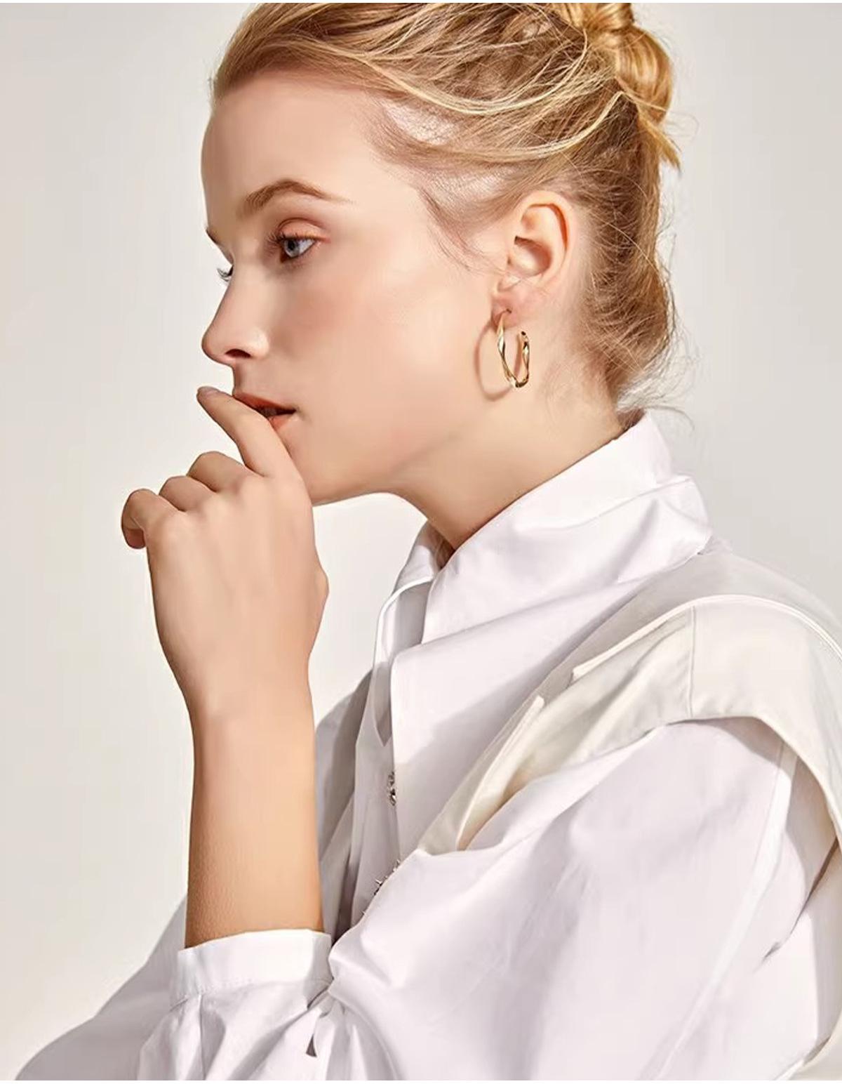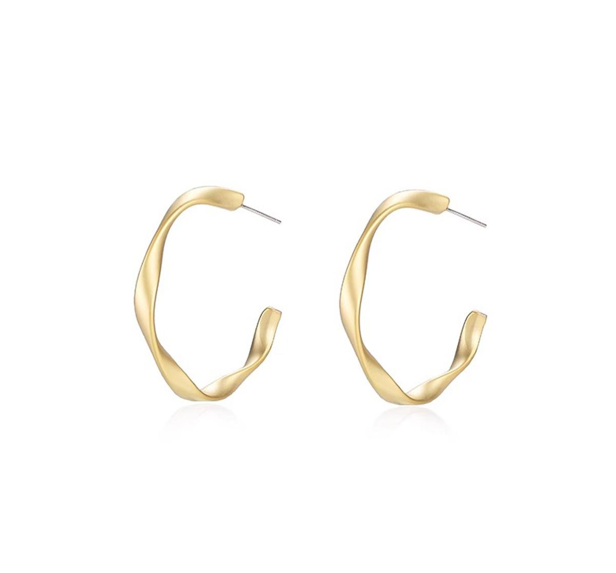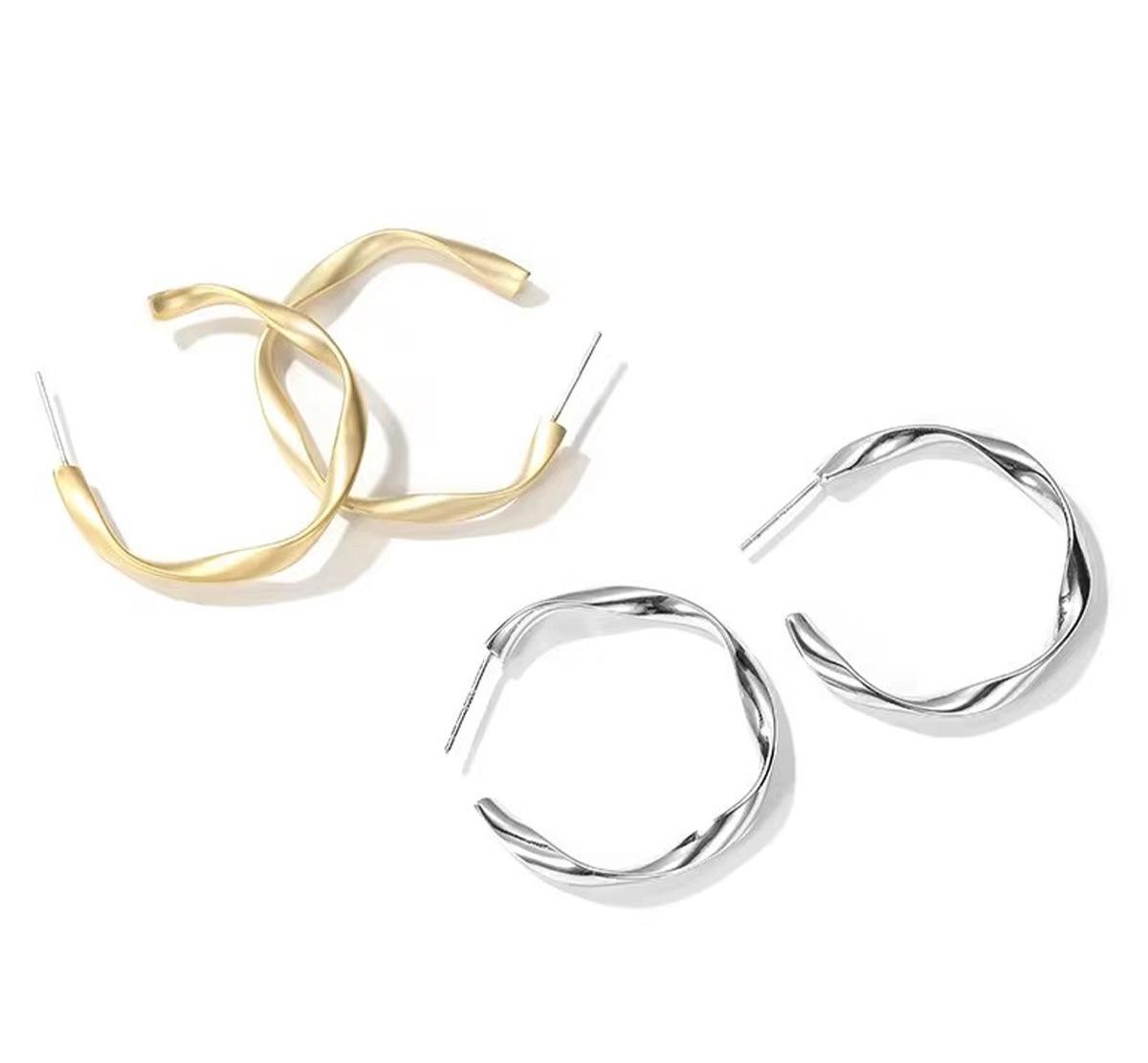 Twisted C- shaped hoop earrings [gold]], Twisted C- shaped circle ear studs [silver]]