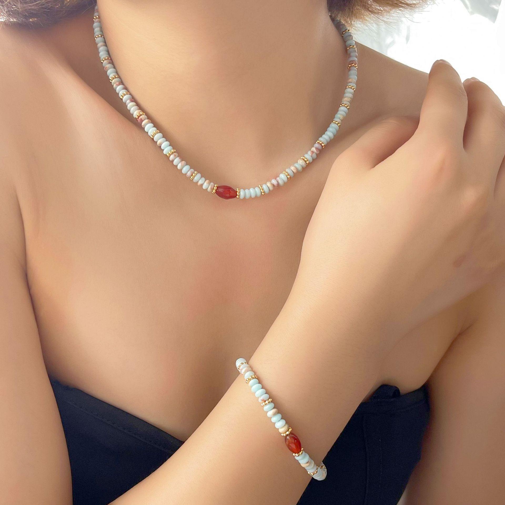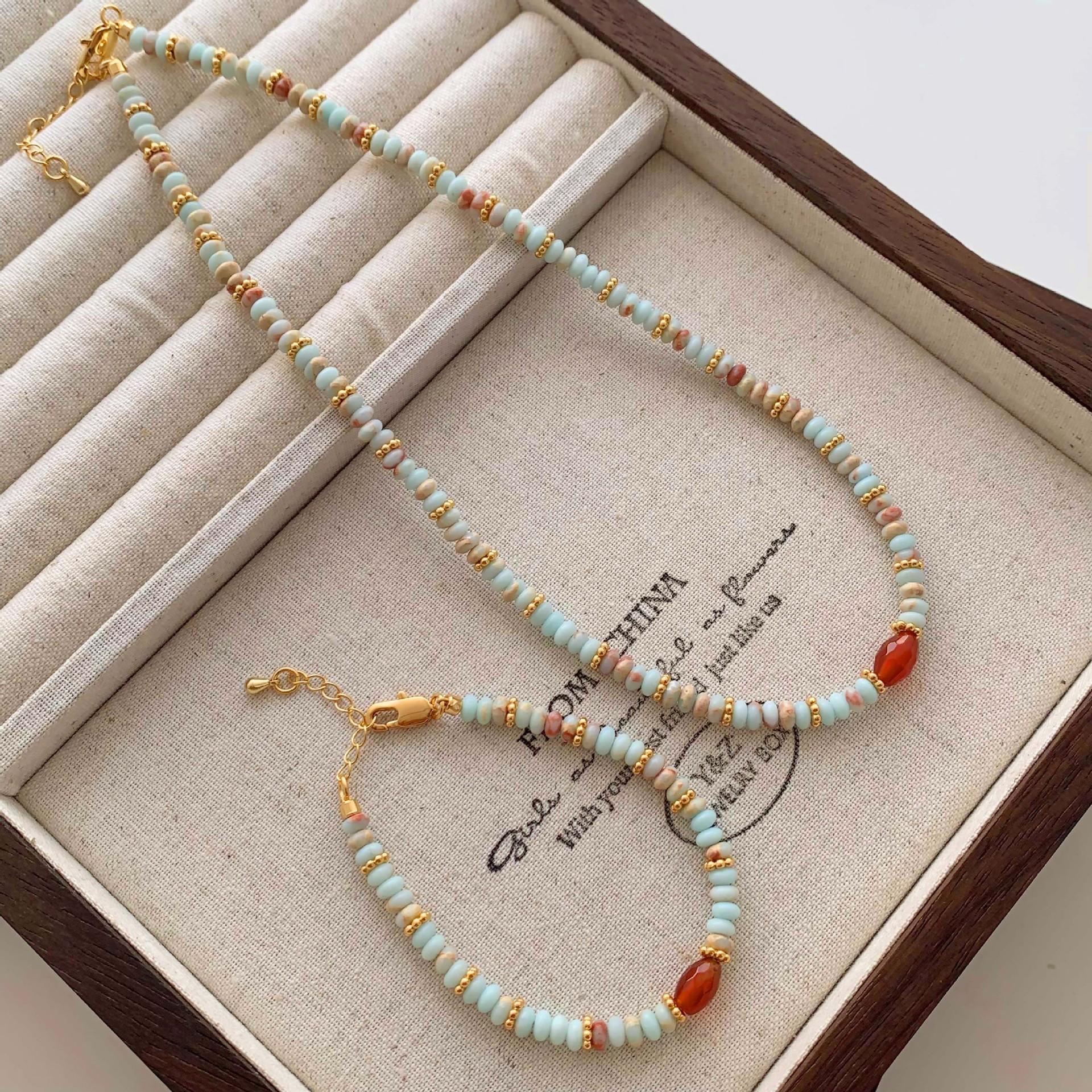 Collar de Piedra Shoushan Color Dopamina Pulsera de Cuentas de Ágata Roja Natural Gargantilla de Diseño Nicho Modelo Nuevo 2024