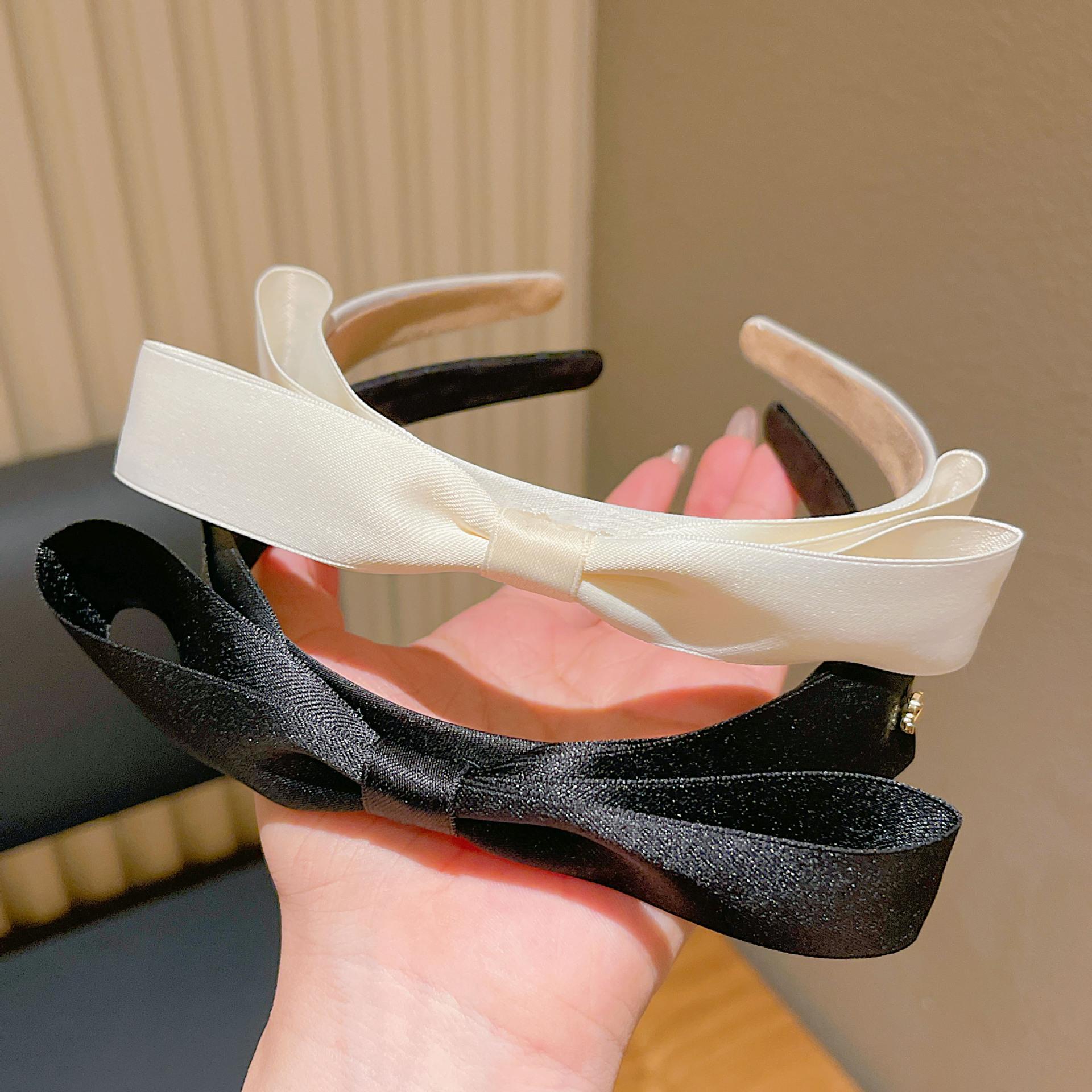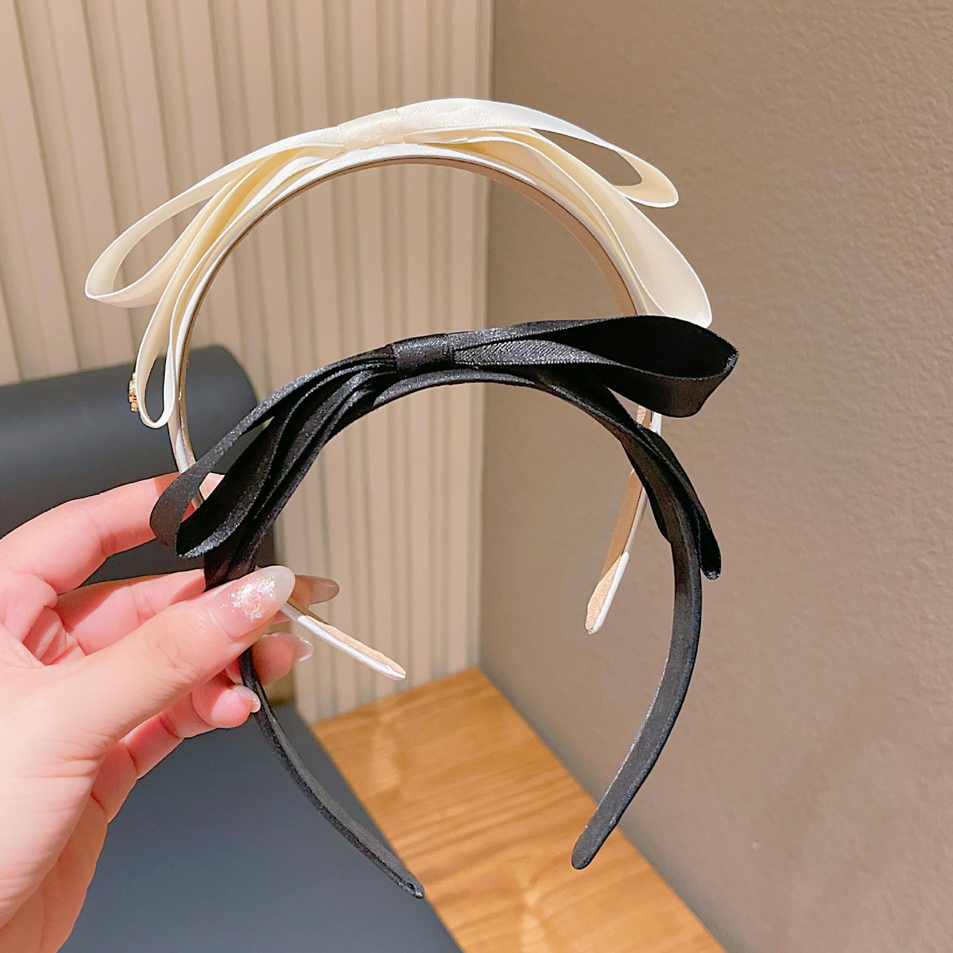 Nueva banda para el cabello de satén negro de alta calidad con lazo alto en la parte superior craneal, cinta francesa, banda para el cabello a presión negra, tarjeta para el cabello para mujeres