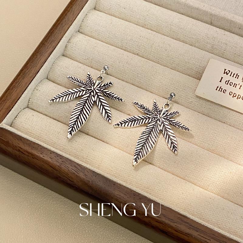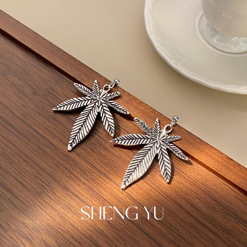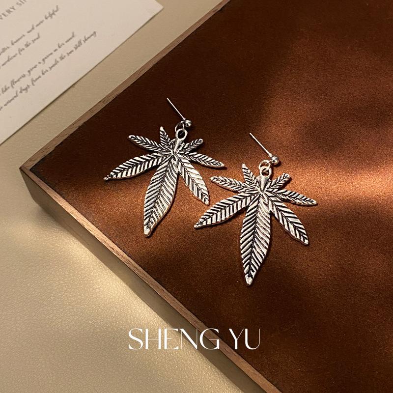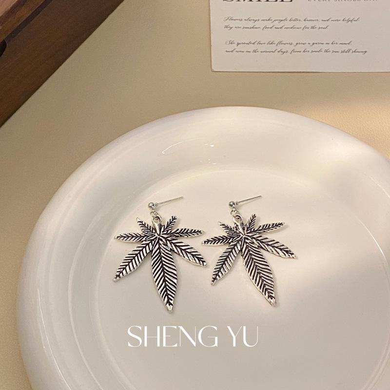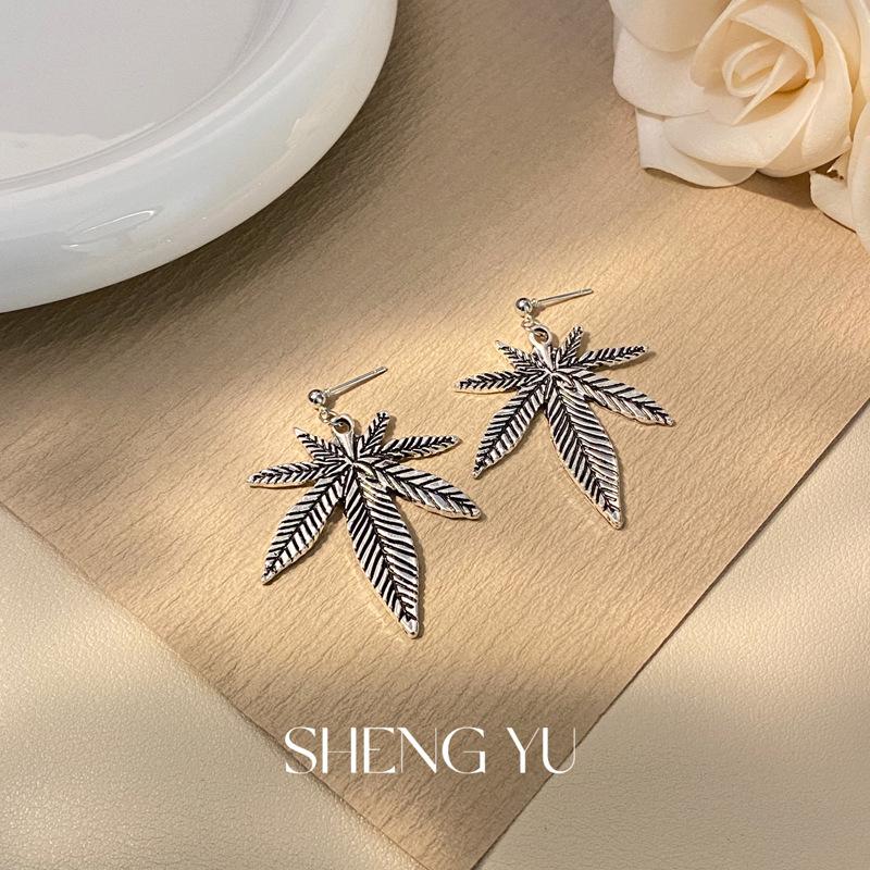 Pendientes de hoja de arce estilo hip hop punk europeo y americano para mujer, diseño de nicho nuevo, personalidad simple, combinables con todo, pendientes de alta gama.