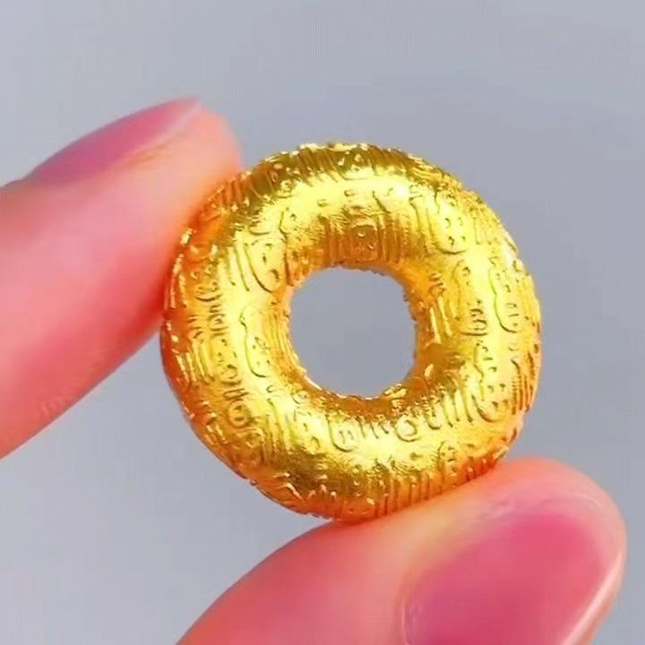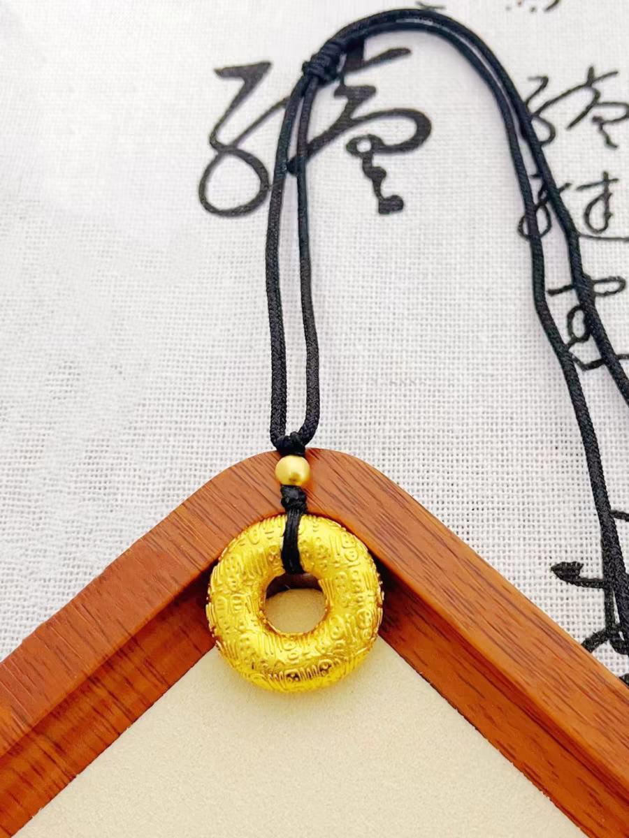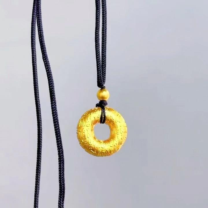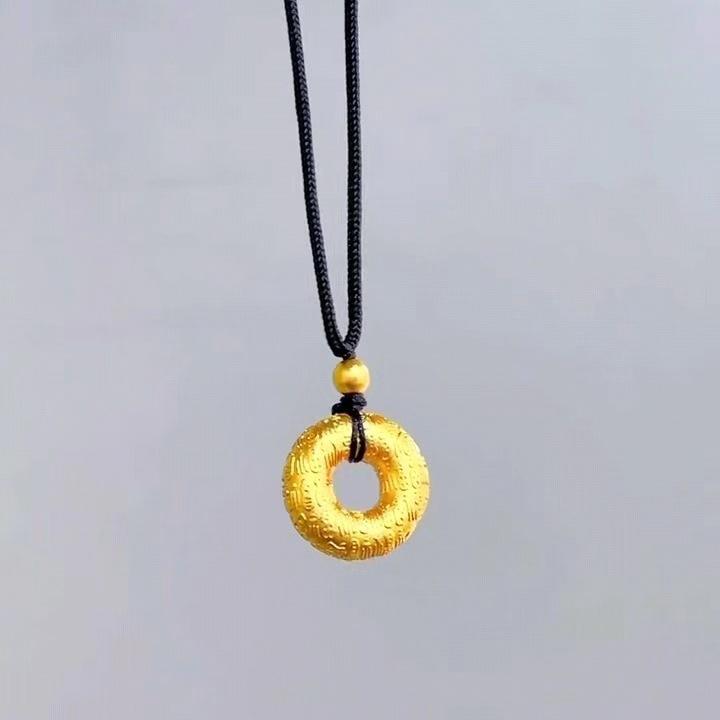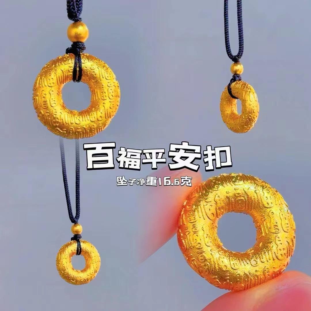 Alta Retención de Color Colgante Hebilla de Seguridad Baifu Cobre Chapado en Oro Antiguo Arena Anillo Liso Chapado en Oro con la Palabra "fu" Colgante Circular Concéntrico Mismo Estilo Transmisión en Vivo