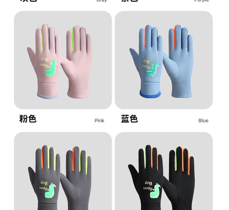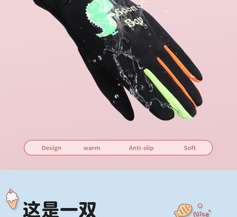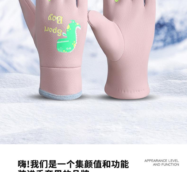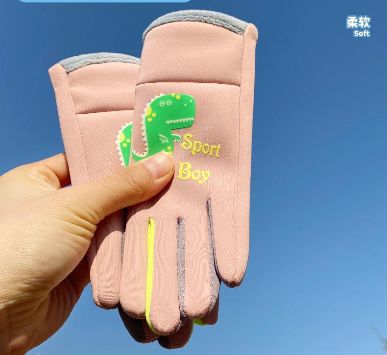 Guantes cálidos para niños de otoño e invierno, resistentes al viento, impermeables, para esquí frío, con forro polar y dedos completos, con dibujos animados para ciclismo al aire libre.