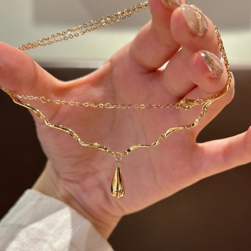 Collar con colgante de falda con borlas y gotas de agua irregulares de alta gama, ligero y de lujo, elegante y retro para mujer, cadena de clavícula combinable.