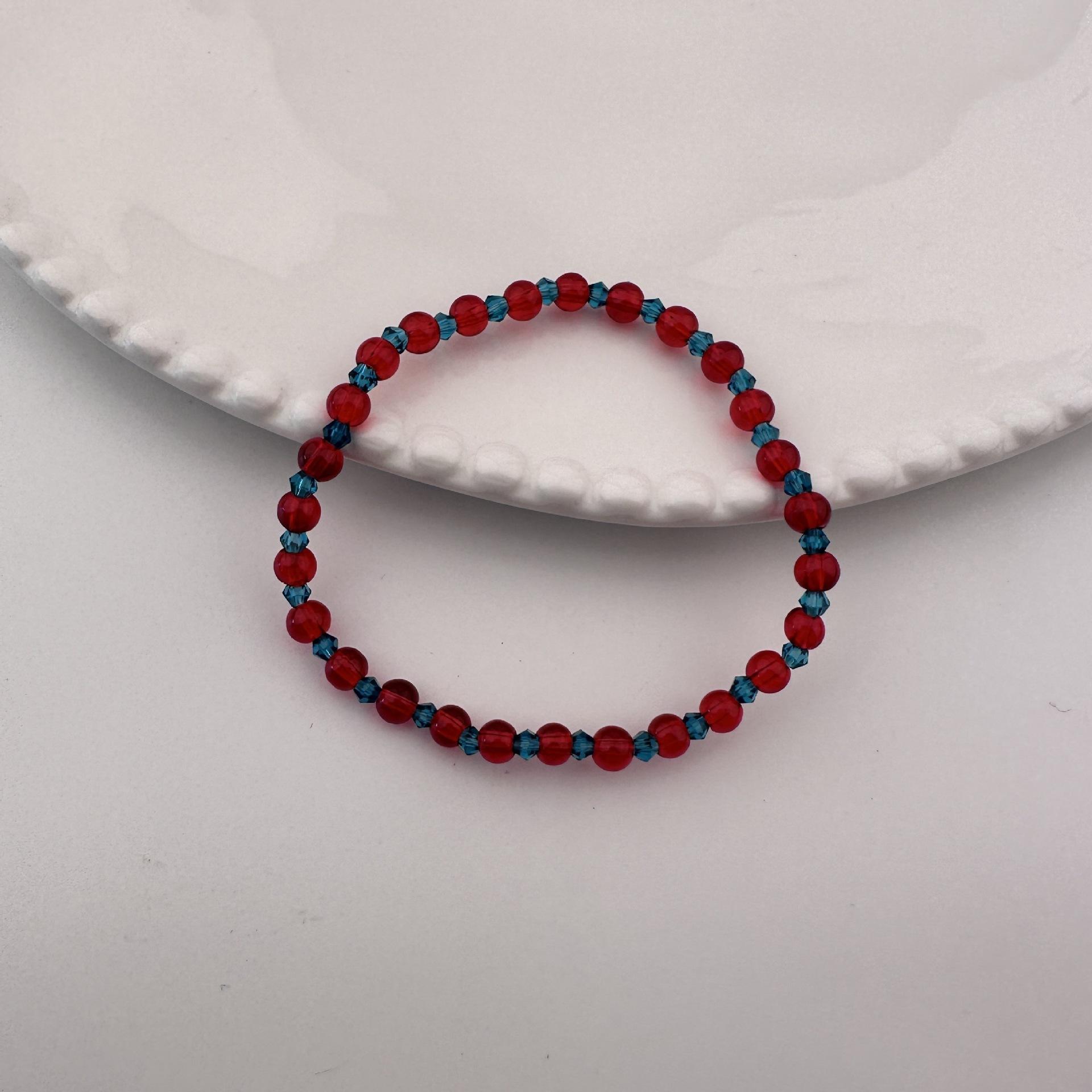 Blue crystal red agate pendant necklace, Crystal red and blue contrasting color necklace, Blue crystal red aga...