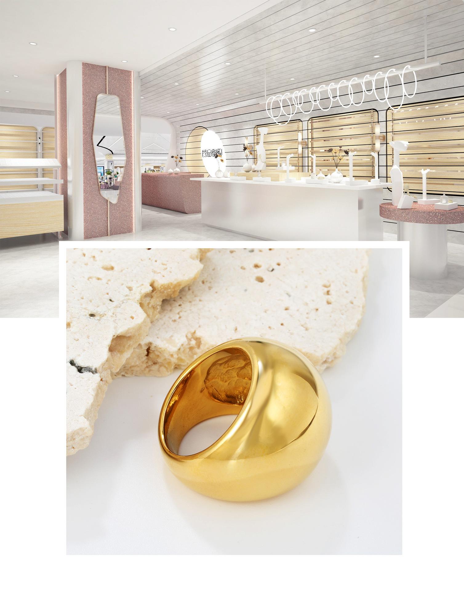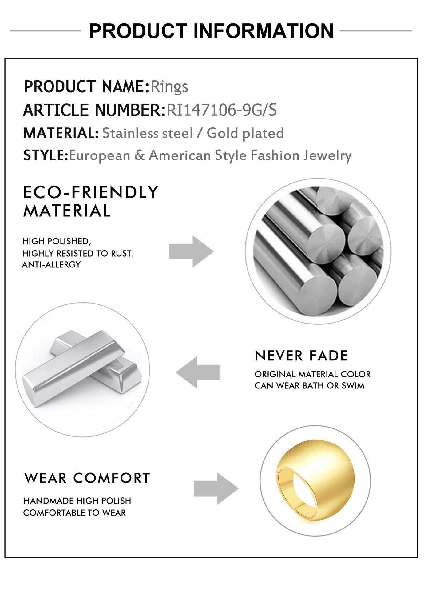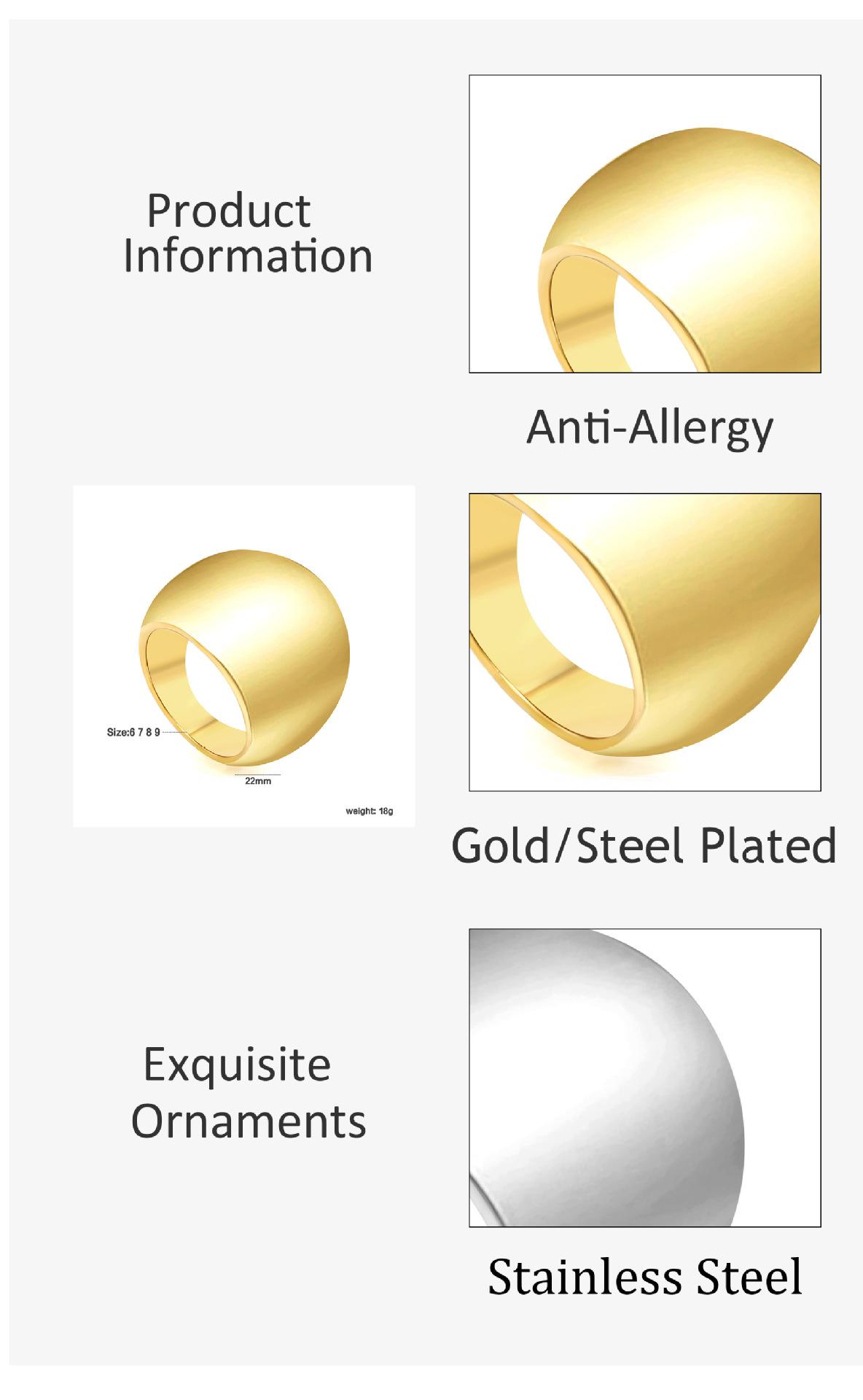 Anillo Clásico Europeo y Americano Galvanizado en Oro Metálico de 18K Exagerado Anillo Único Estilo Ins Personalidad Geométrico Acero Inoxidable Joyería