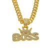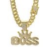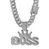 Colgante de diamantes con letra de corona KING de estilo europeo y americano, cadena cubana gruesa, joyería de hip-hop para hombres de moda, fabricantes al por mayor |