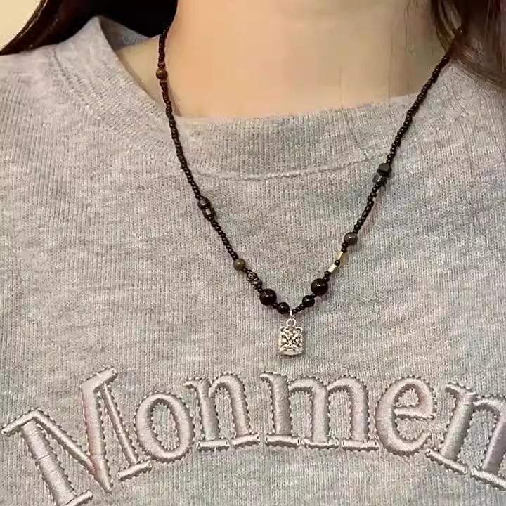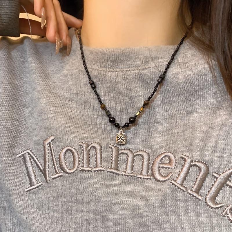 Nuevo Collar Negro de Estilo Chino con un Diseño Dulce y Cool de Alta Gama, Gargantilla Retro Nicho de Lujo Ligero de Inspiración Étnica para Mujer