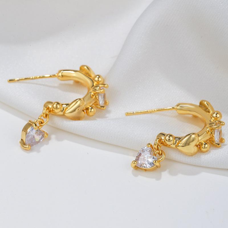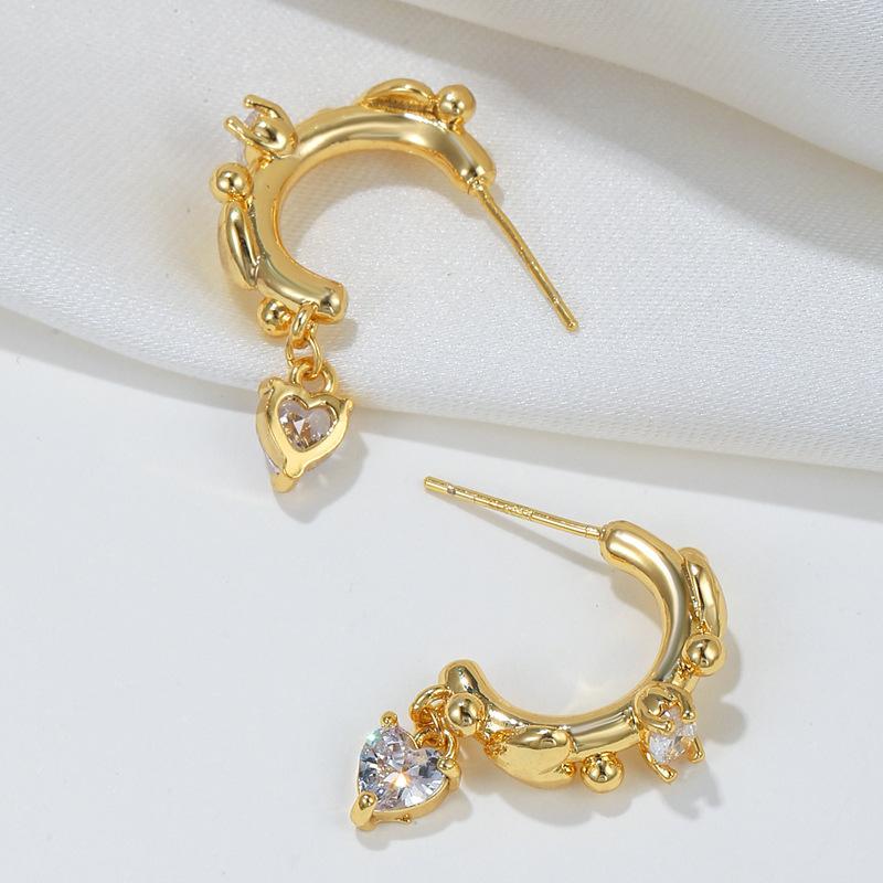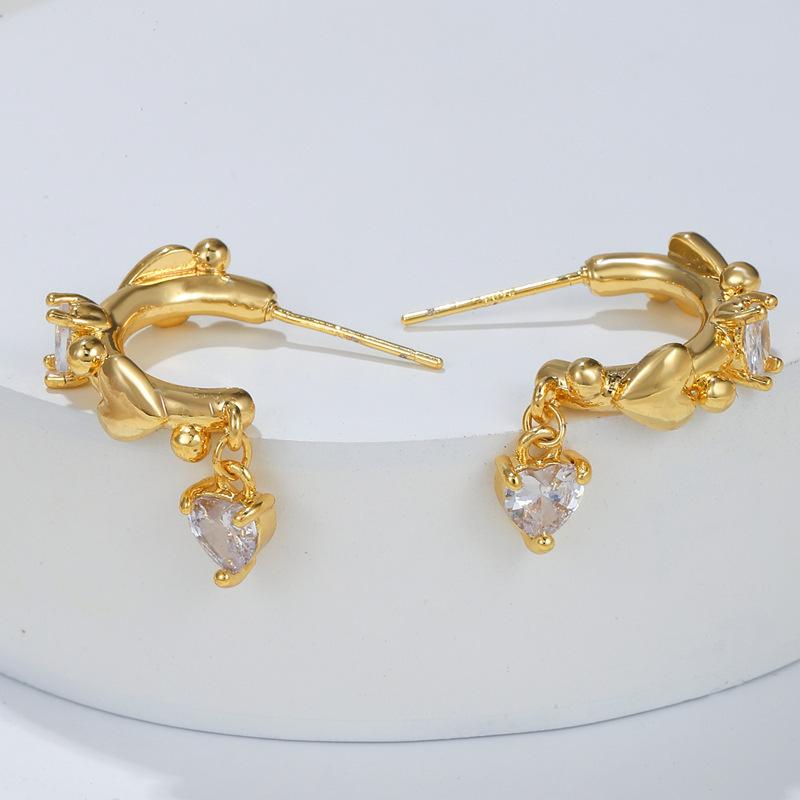 Pendientes nuevos y frescos y dulces de estilo japonés y coreano con circonita cúbica s925 en forma de corazón, pendientes de temperamento a la moda, pendientes para mujer al por mayor