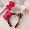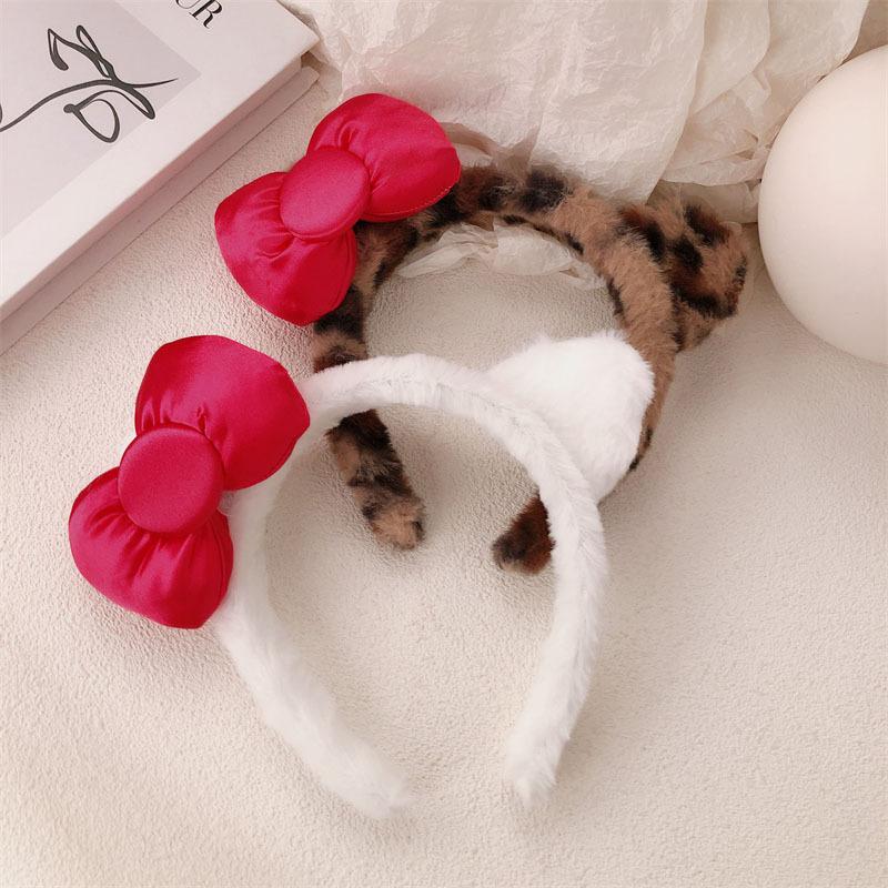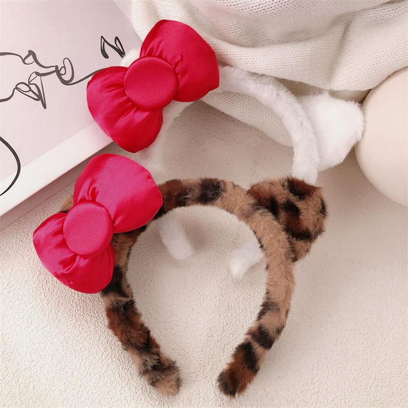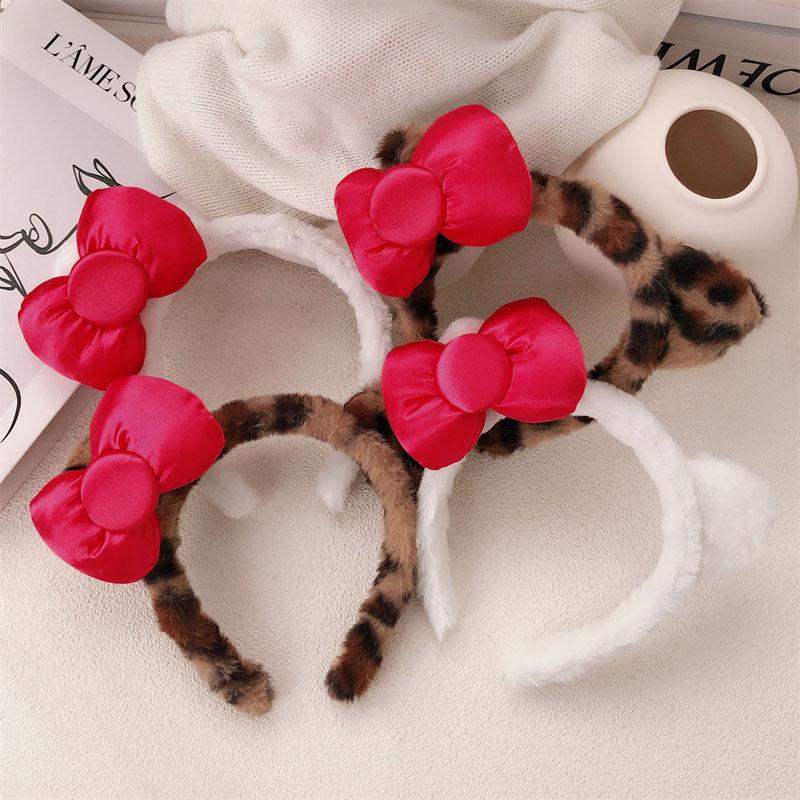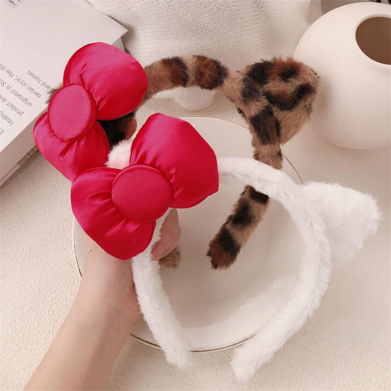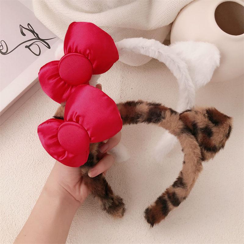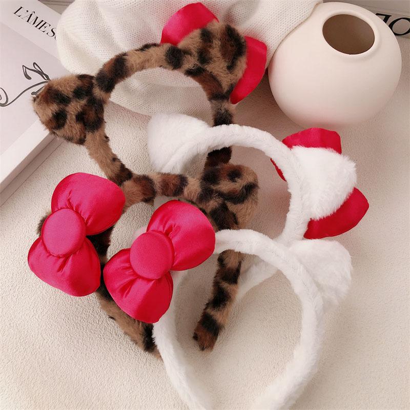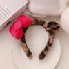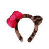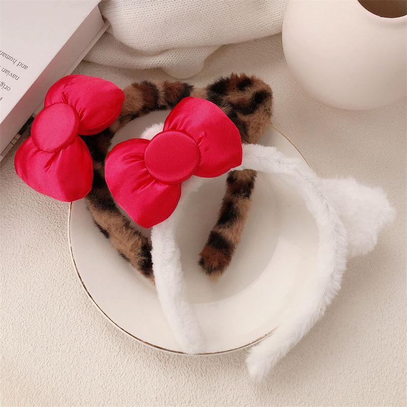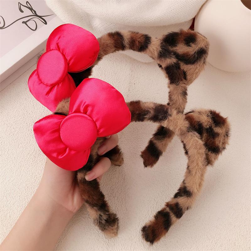 Diadema de Felpa de Leopardo Estilo Coreano Celebridad de Internet Lavado de Cara Maquillaje Mascarilla Diadema Accesorios para el Cabello con Lazo de Vino para Mujer