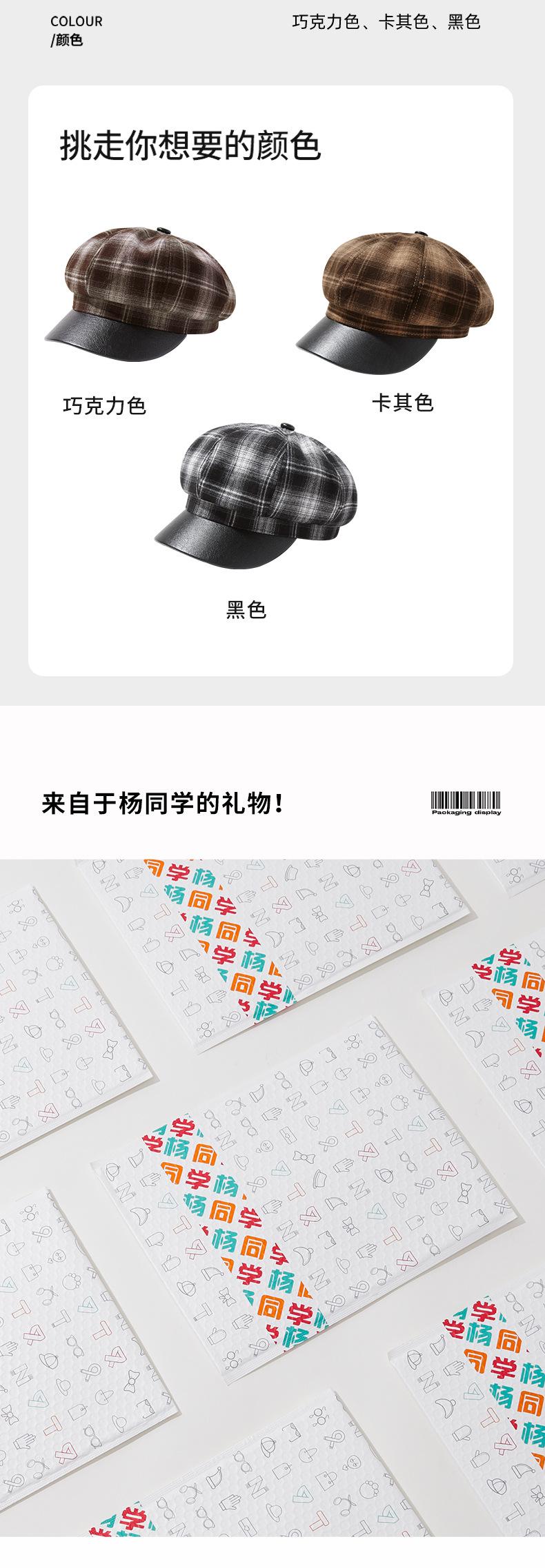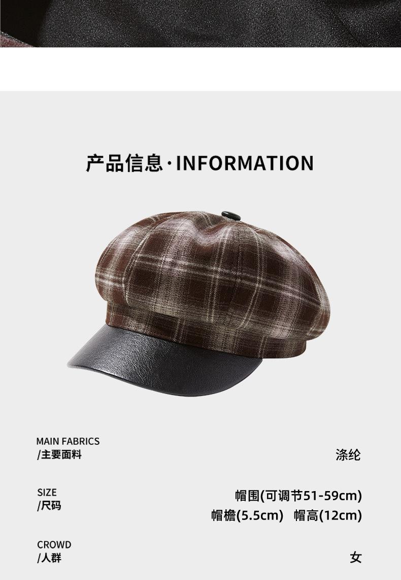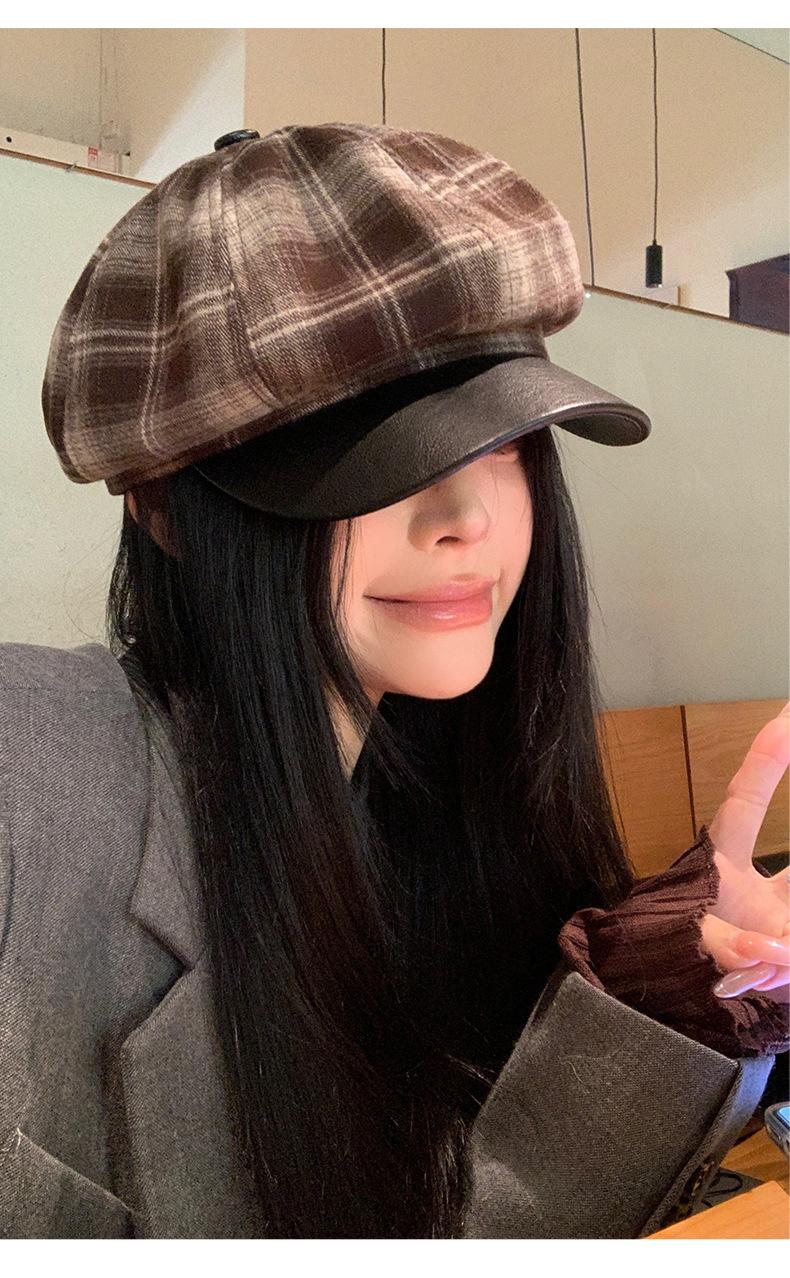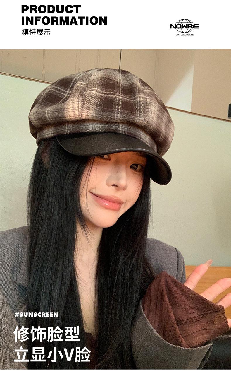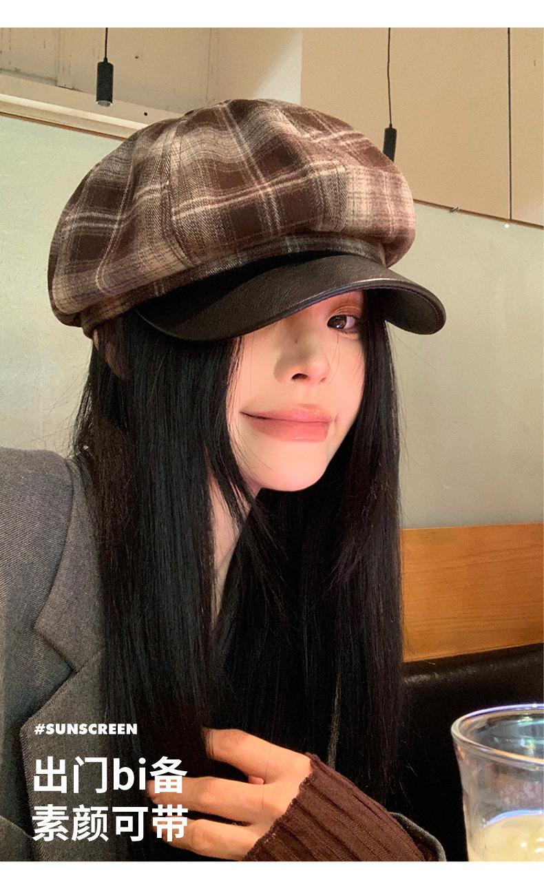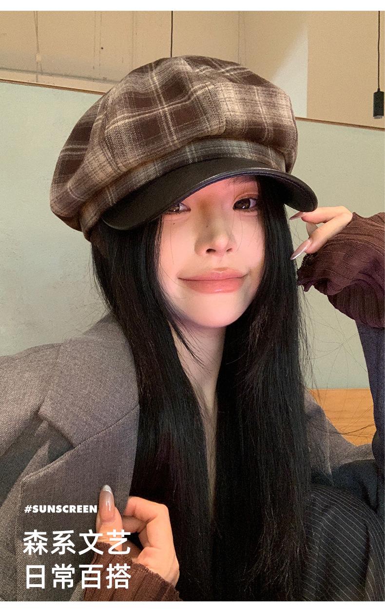 Gorra Octogonal de Clase Yang Estrictamente Elegida Verano Boina Lengua de Pato Cabeza Grande Delgada para Mujer 2024 Nuevo Sombrero Hacia Adelante