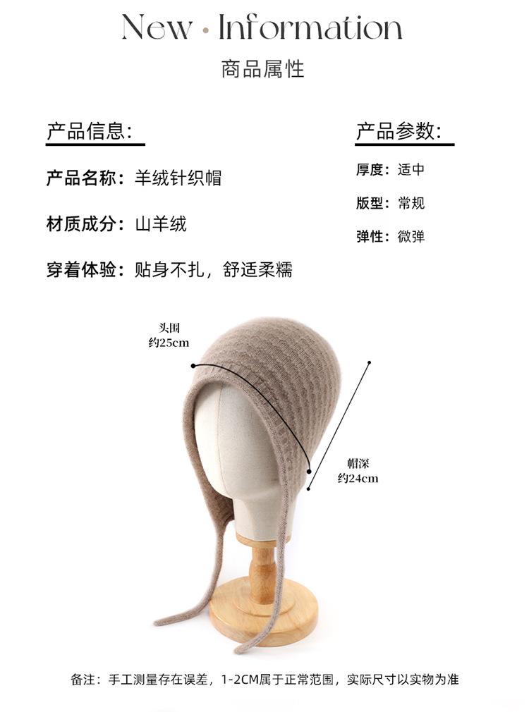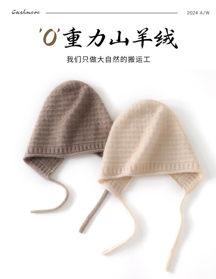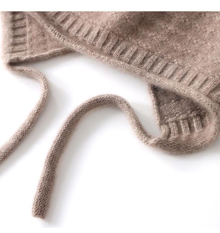 Cachemira 2025 Otoño e Invierno Nuevo Sombrero de Punto para Mujer con Clase Color Puro para Exterior Protección para las Orejas Cálido y a la Moda Pesado a Cuadros