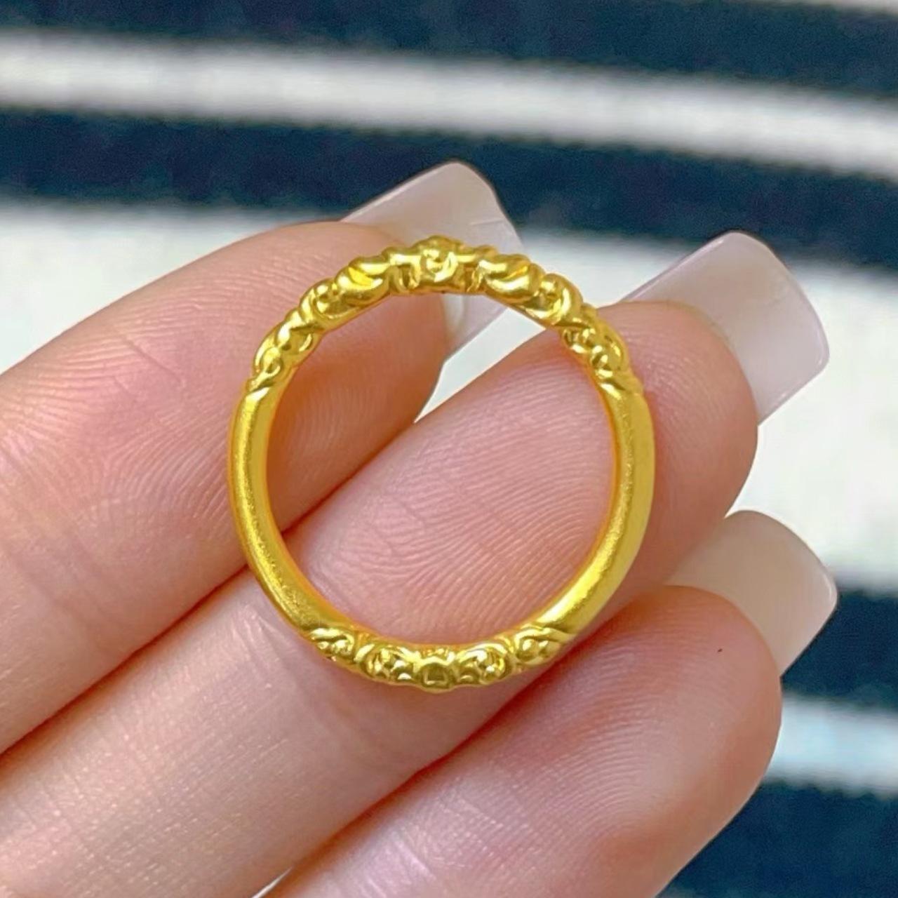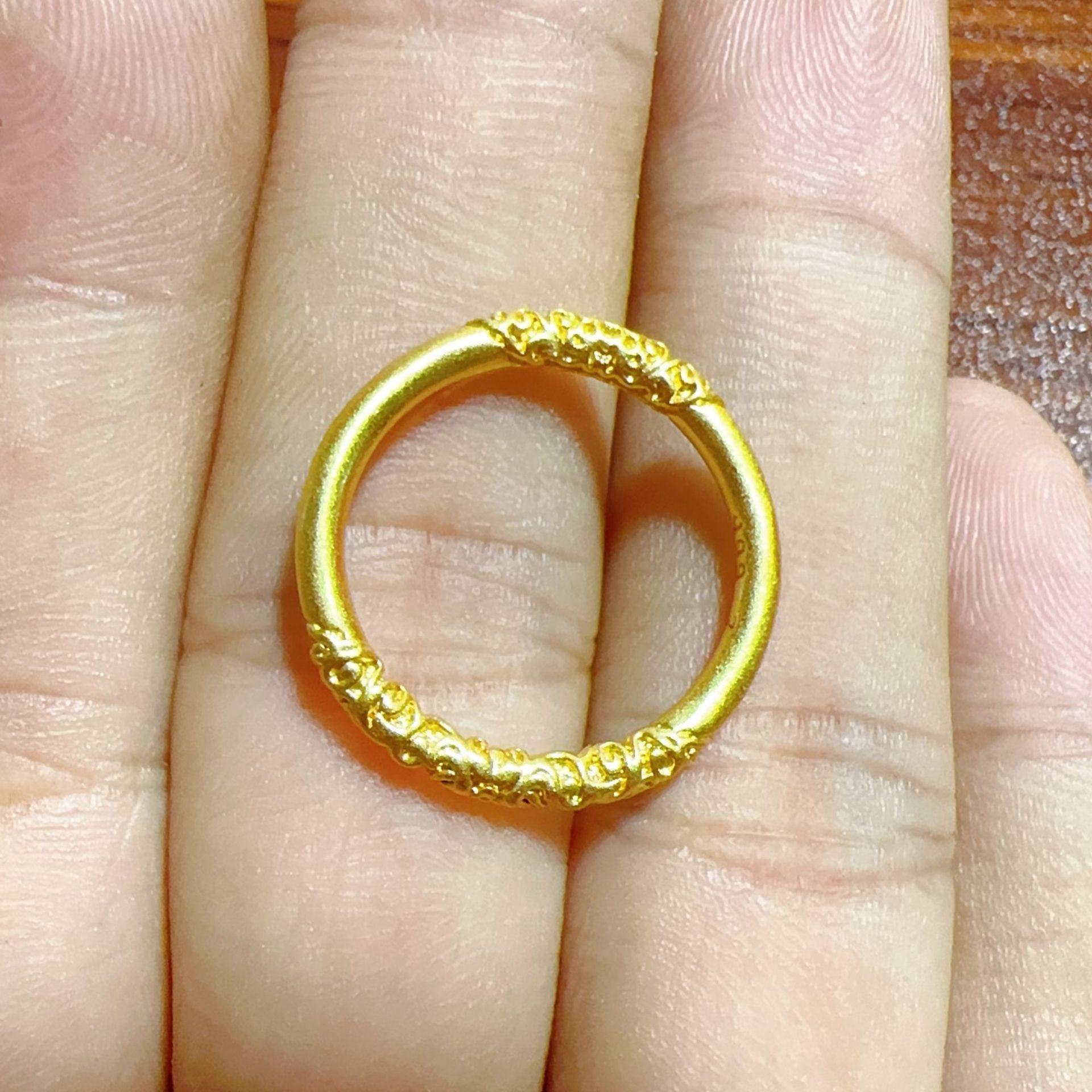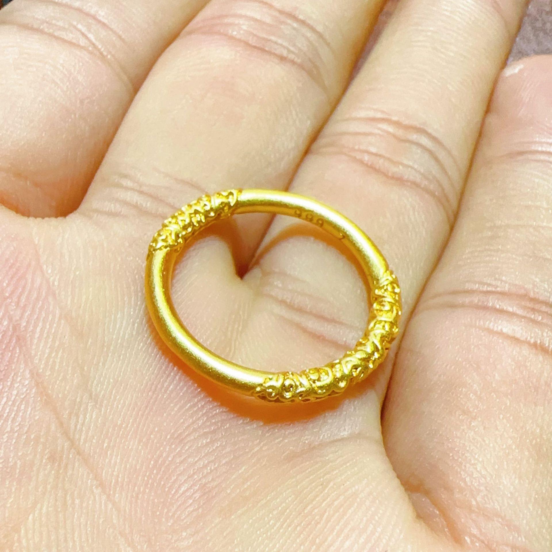 Anillo vietnamita de oro arena Seiko con diseño de hierba rizada y herencia de Bauhinia en relieve antiguo. Anillo para pareja.