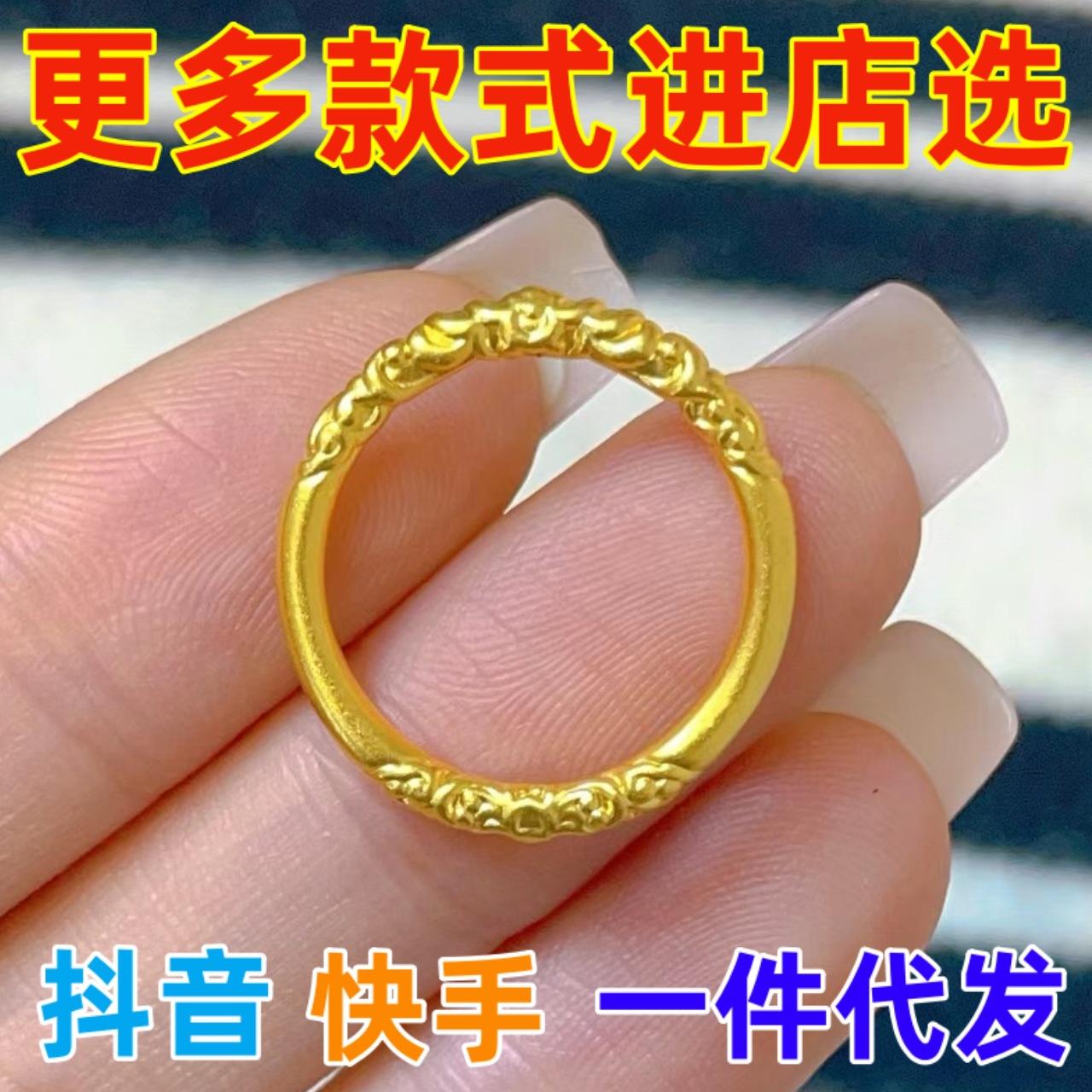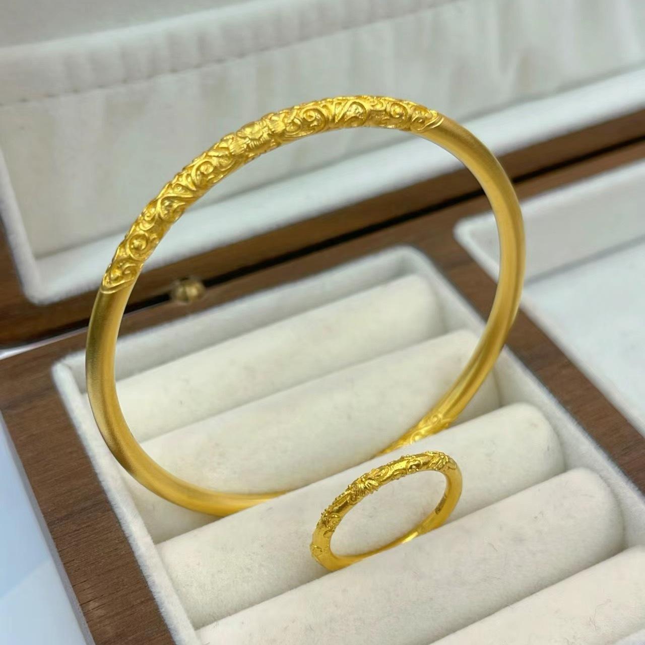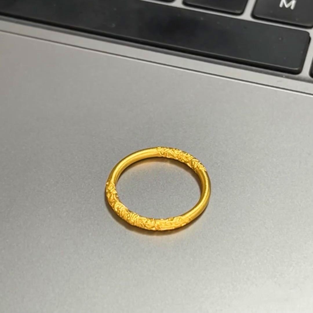 Anillo vietnamita de oro arena Seiko con diseño de hierba rizada y herencia de Bauhinia en relieve antiguo. Anillo para pareja.