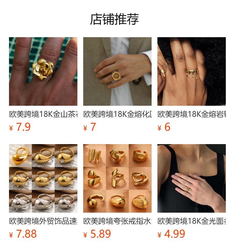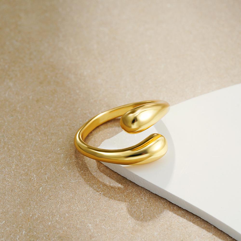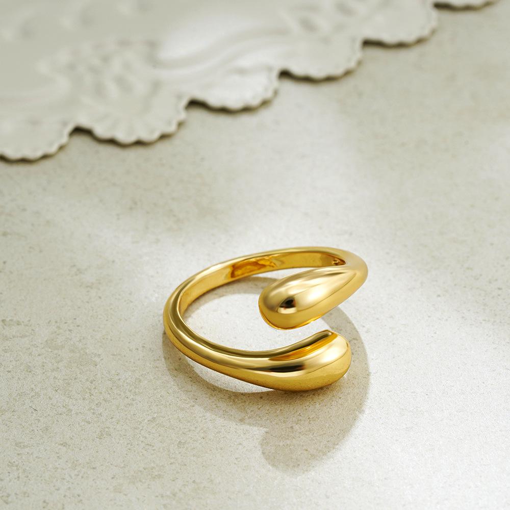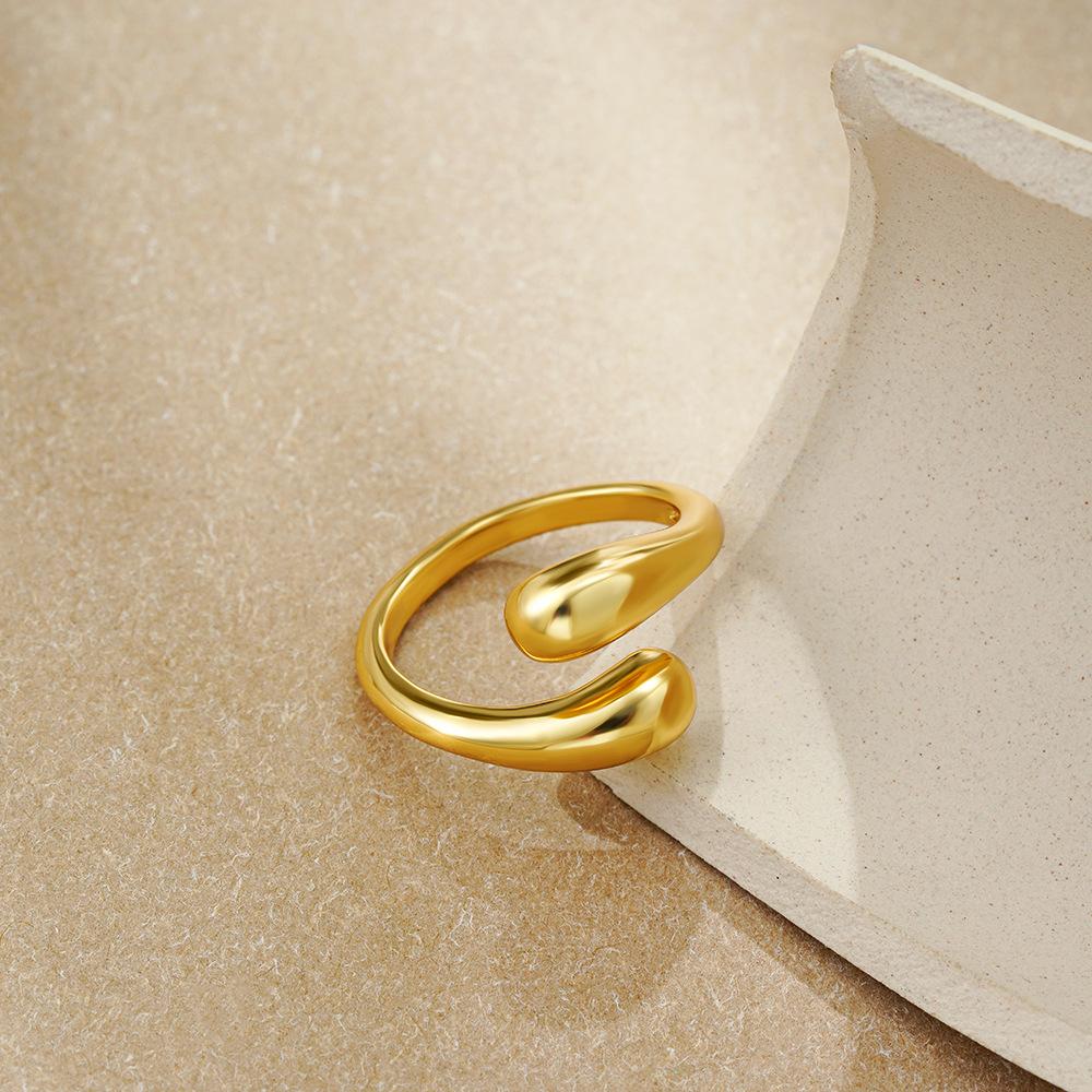 Anillo de Gota Transfronterizo Europeo y Americano de Oro de 18K Anillo Abierto Anillo para Dedo Anillo Decorativo de Moda de Lujo Ligero Nicho Simple que Conserva el Color