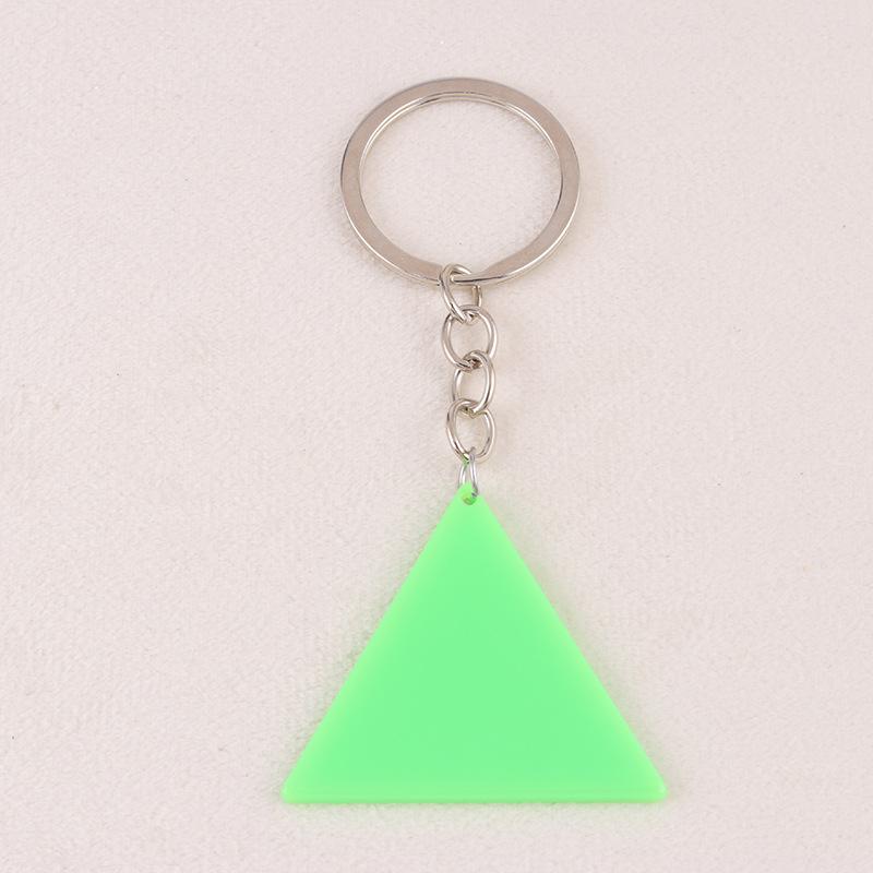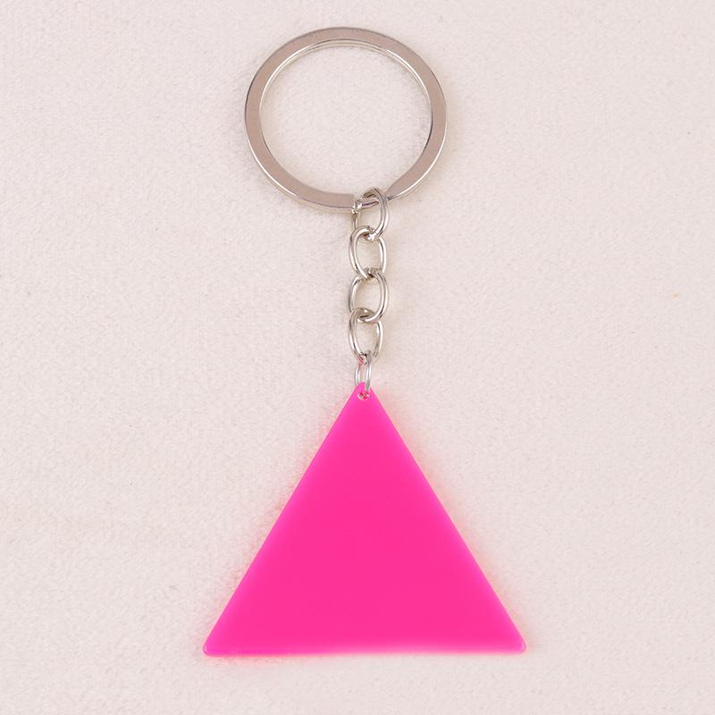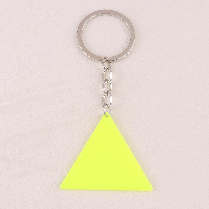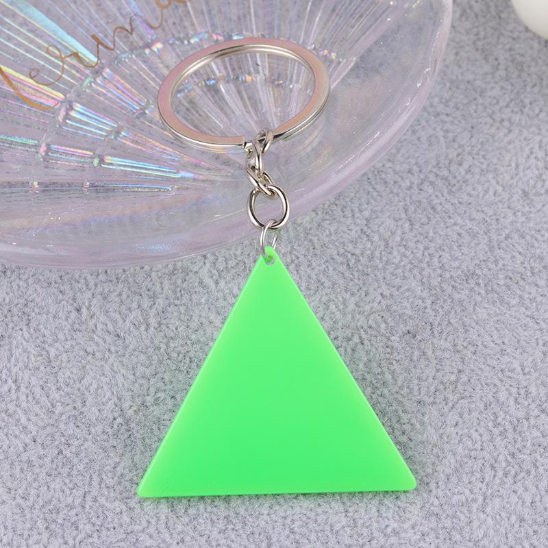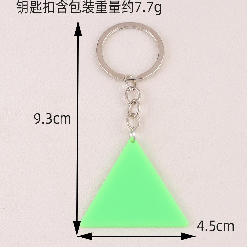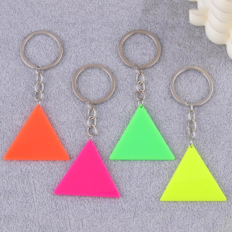 Nuevo llavero simple europeo y americano de acrílico fluorescente de doble cara con forma triangular, joya colgante distintiva para mujer.
