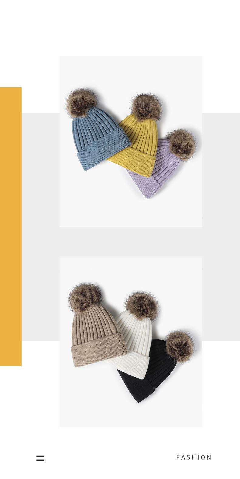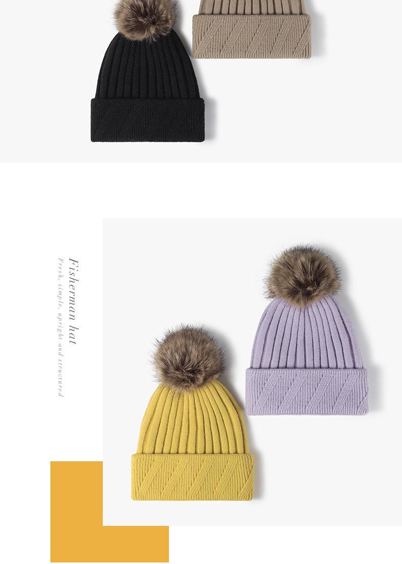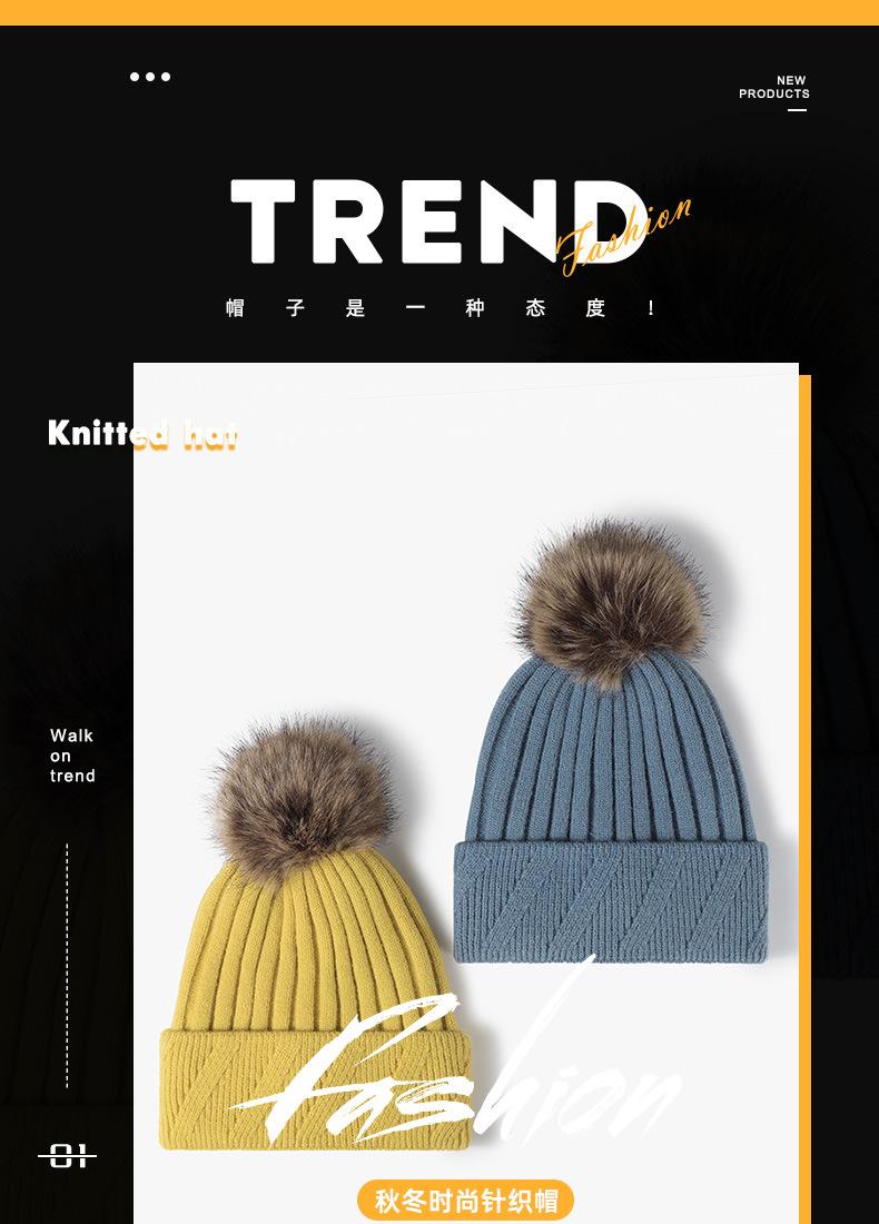 Gorro de mujer para otoño e invierno, exterior, forrado de vellón, de punto con bola de pelo, cálido, transfronterizo europeo y americano, gorro de lana de moda para todo tipo de clima.