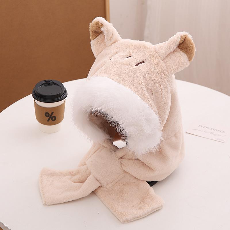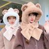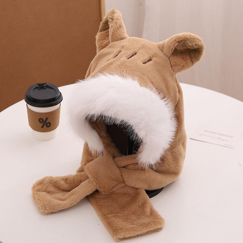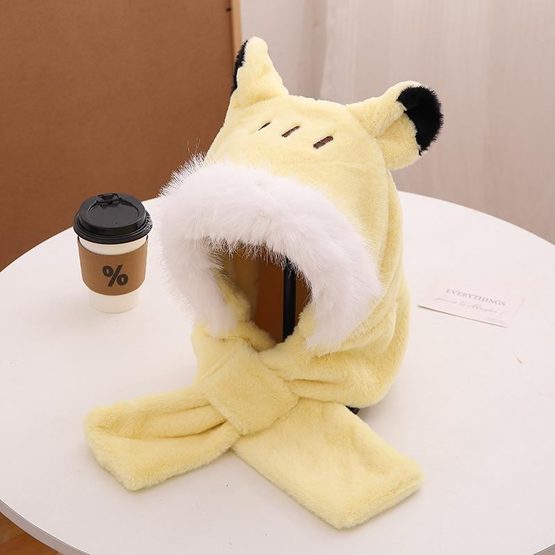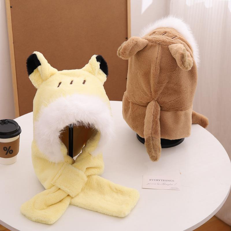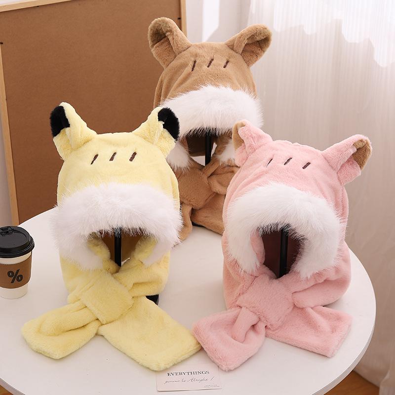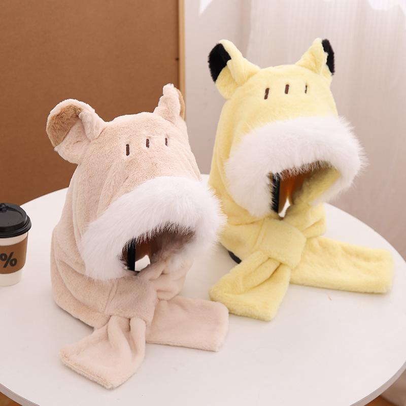 Gorro de peluche Pikachu, cálido y bufanda, todo en uno, para mujer, estilo coreano, de invierno, con protección para las orejas, forro polar y grueso, Lei Feng.