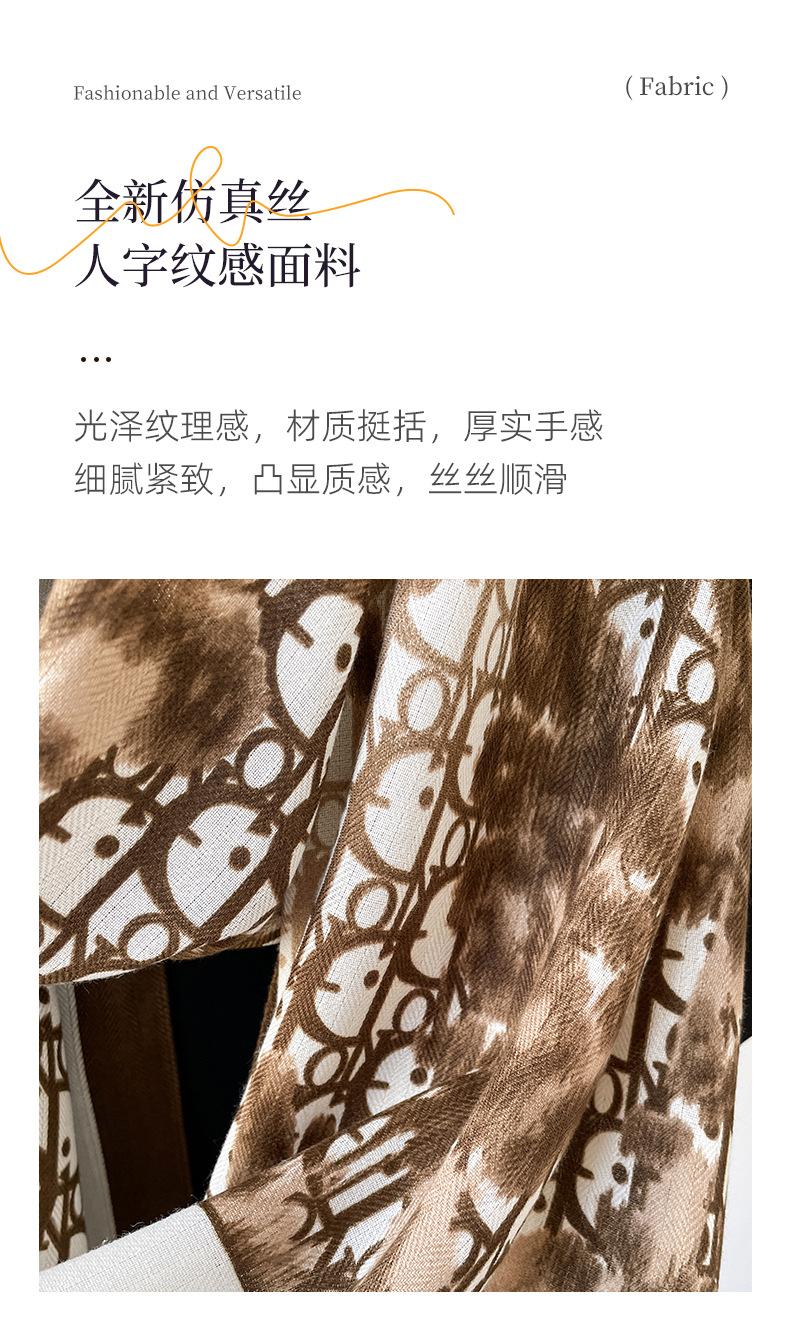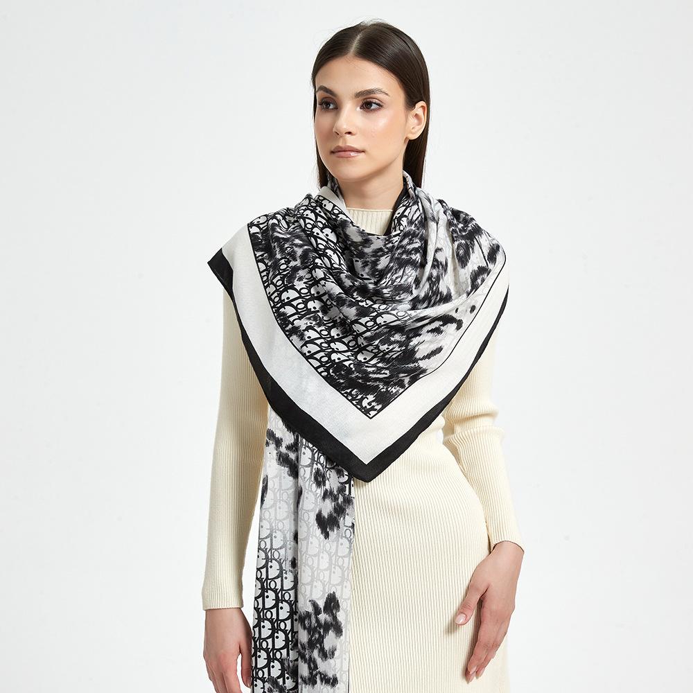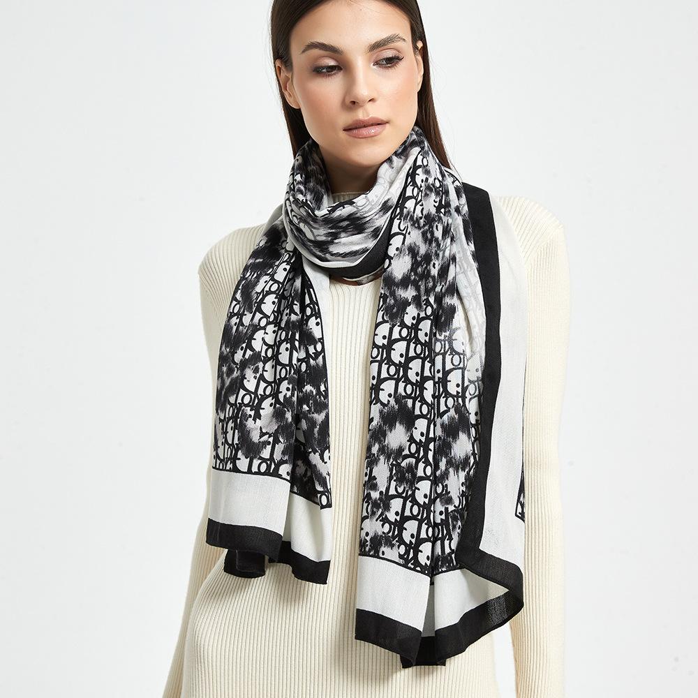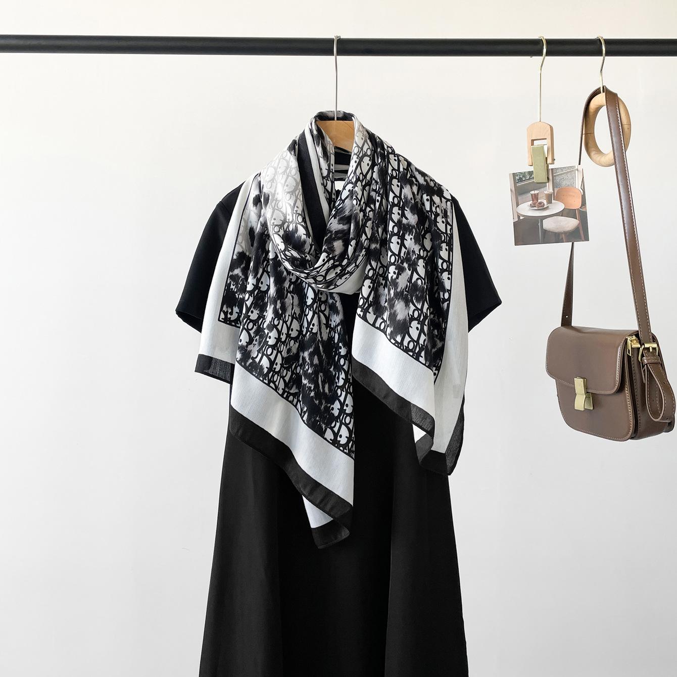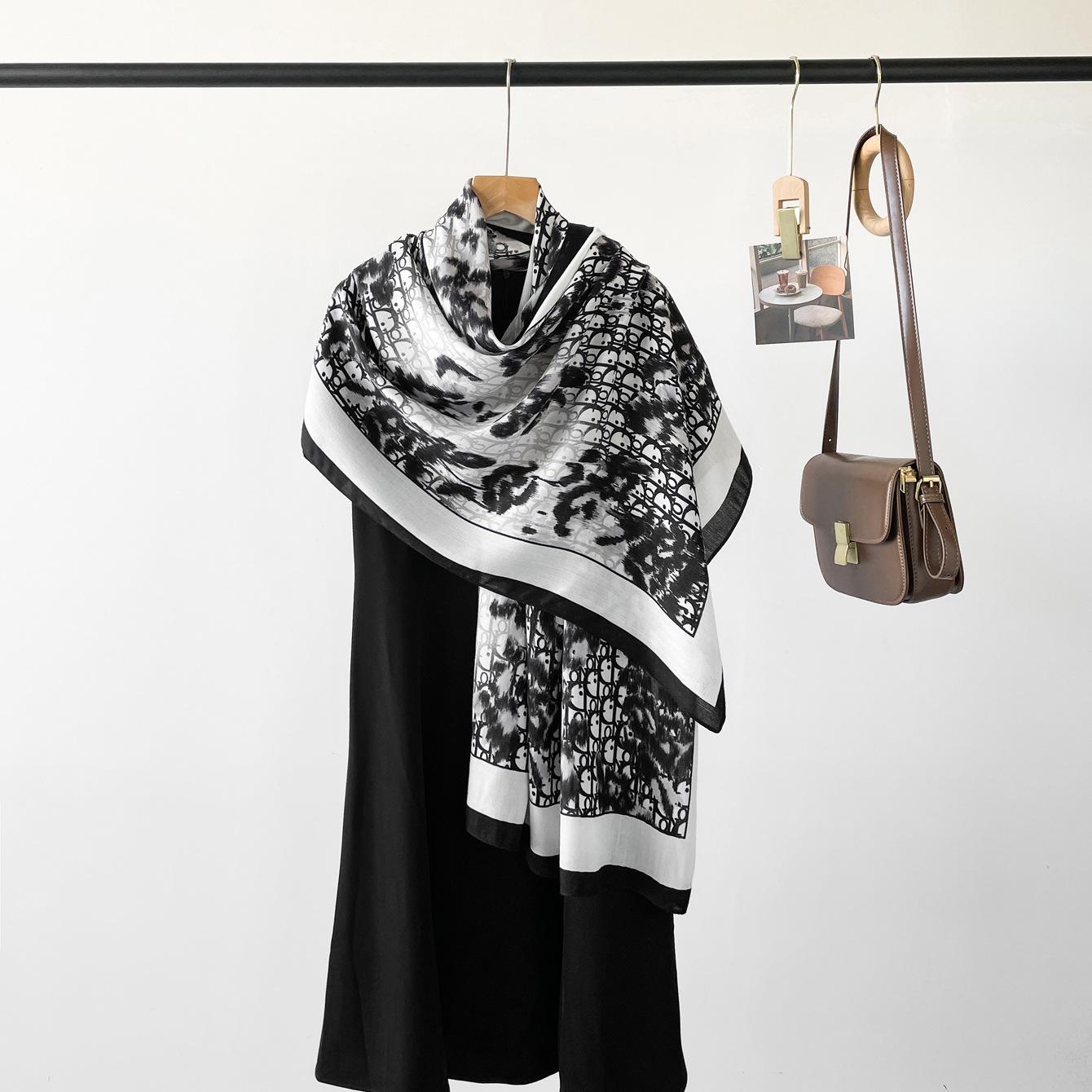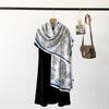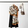 Bufanda de espiga de alta gama para mujer, chal de satén de seda sintética con estampado de letras negras, otoño 2024
