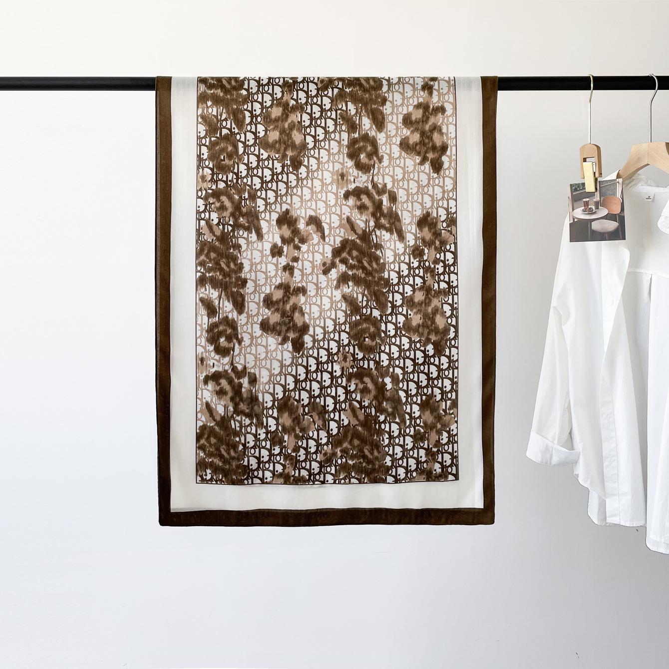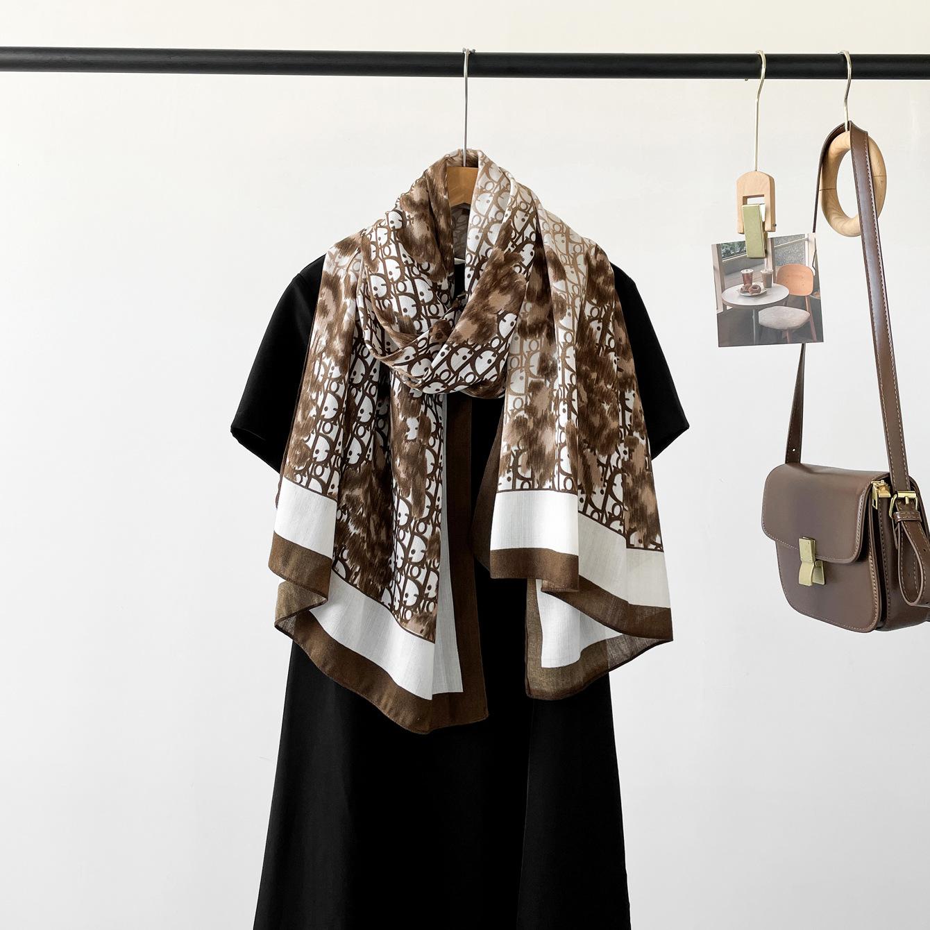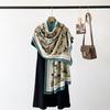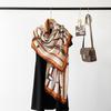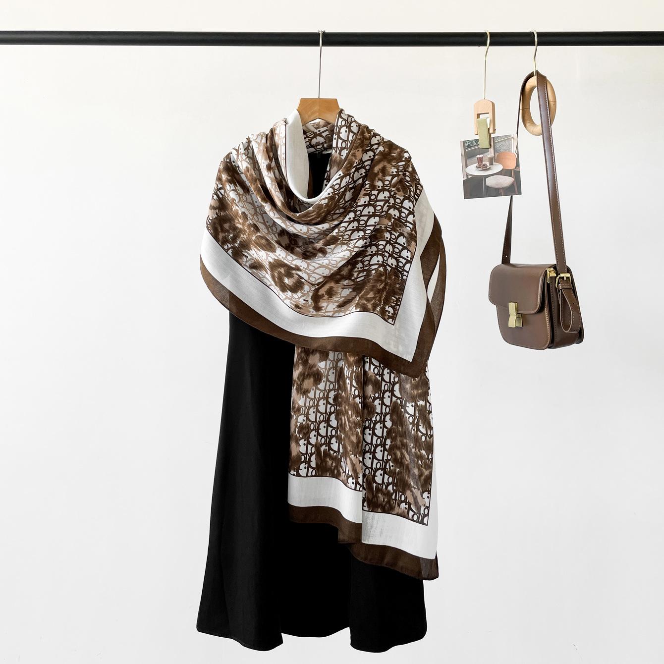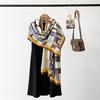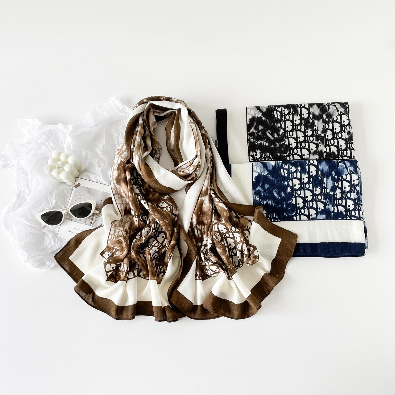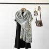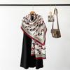 Bufanda de espiga de alta gama para mujer, chal de satén de seda sintética con estampado de letras negras, otoño 2024