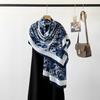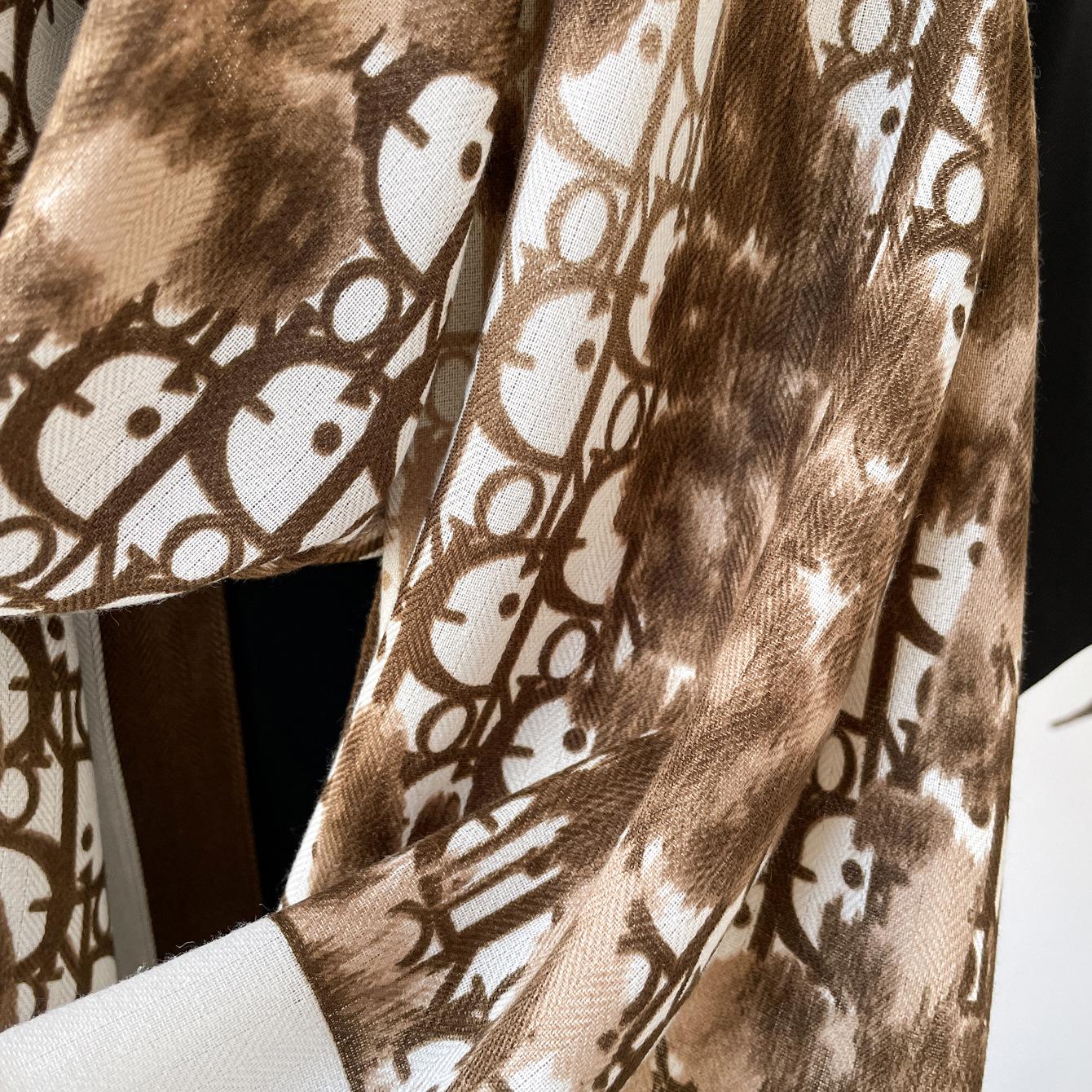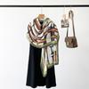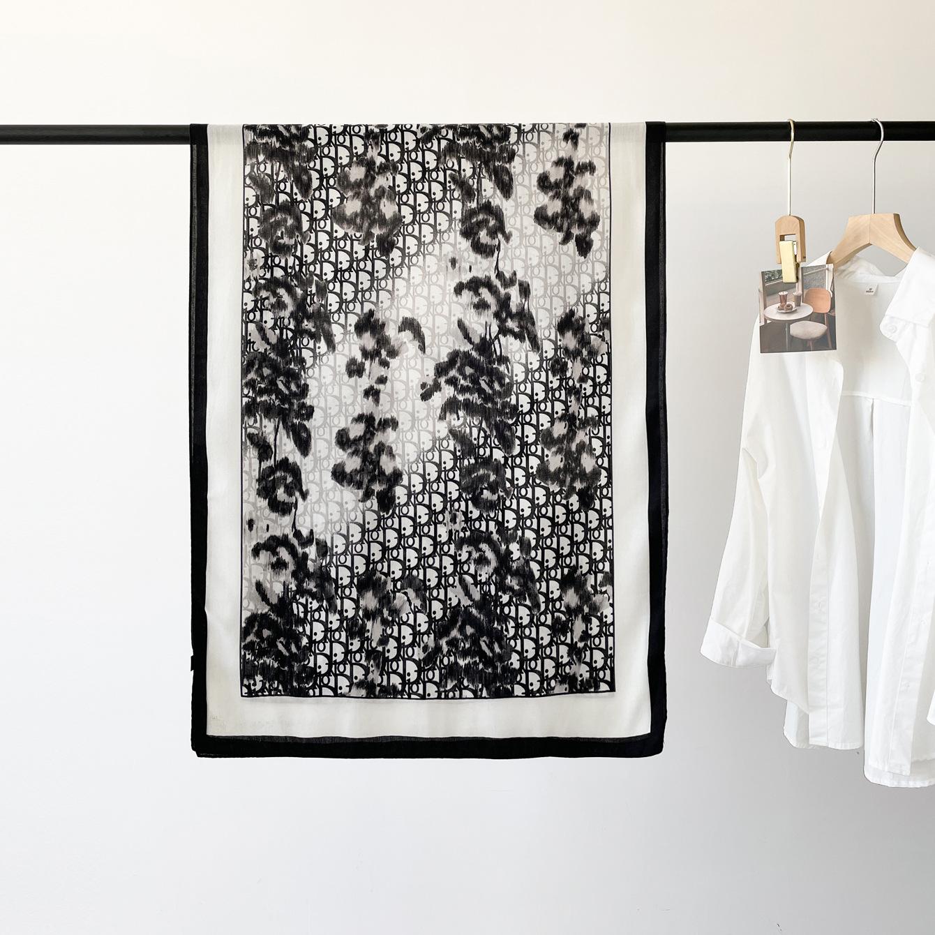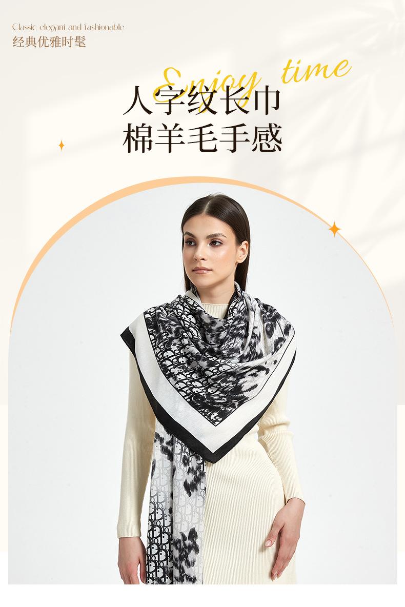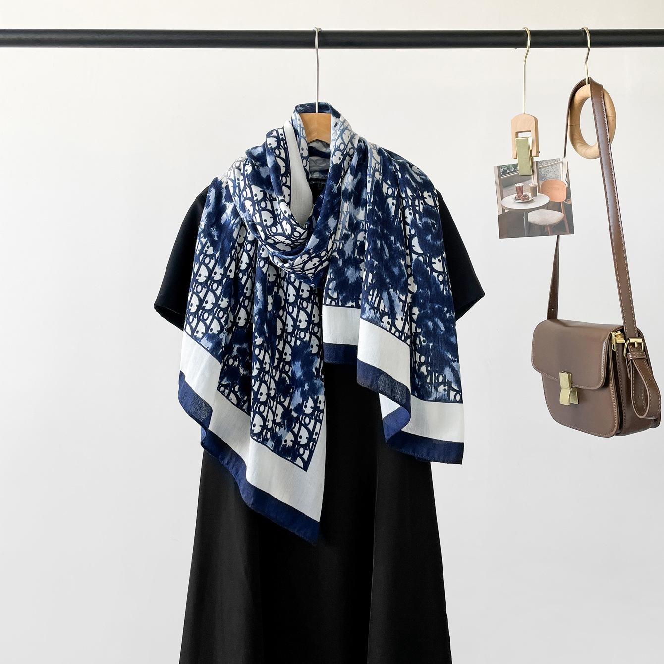 Bufanda de espiga de alta gama para mujer, chal de satén de seda sintética con estampado de letras negras, otoño 2024