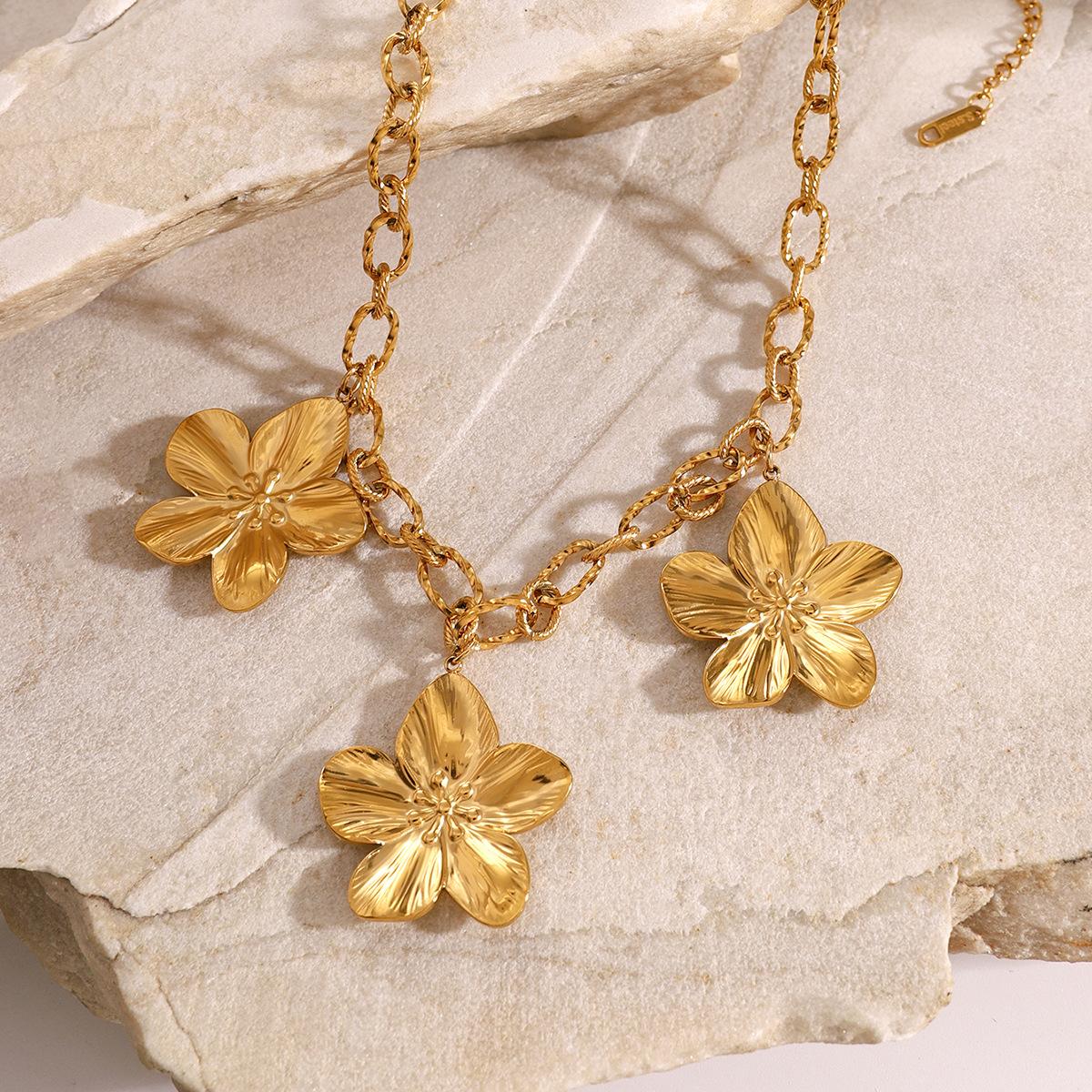 Jiding Europeo y Americano Acero Inoxidable Exagerado Collar Colgante de Flor Cadena Clavícula de Alta Gama Ins Collar de Acero de Titanio Transfronterizo