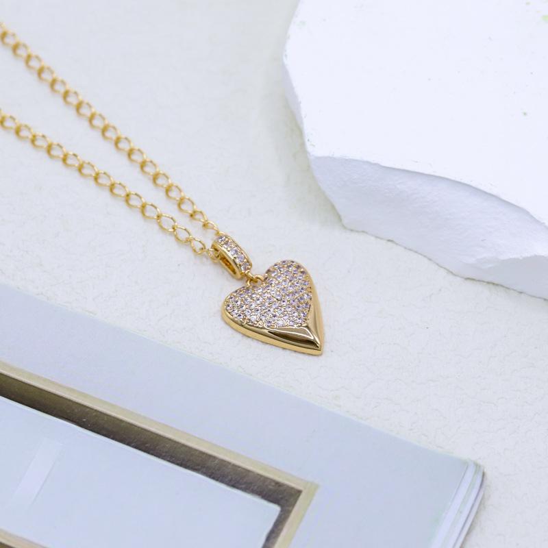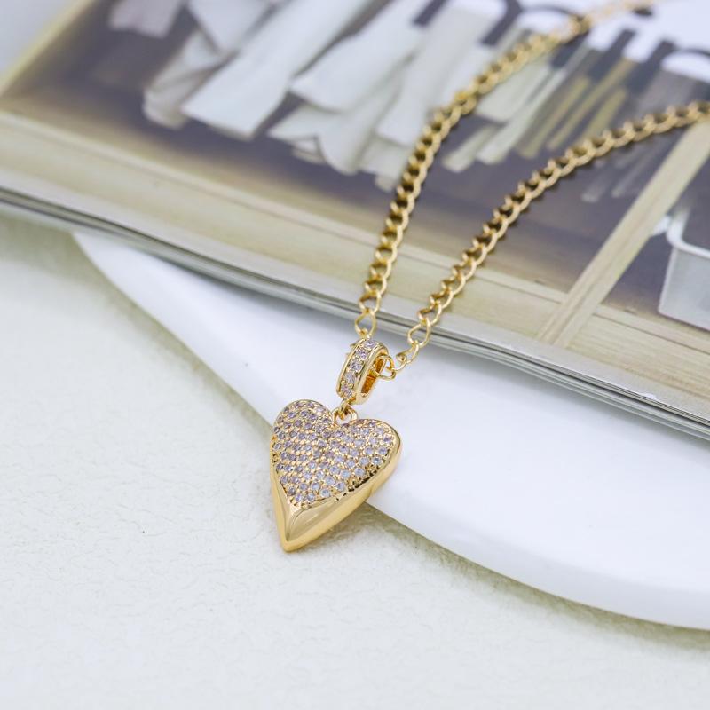 Colgante de circonita con incrustaciones en forma de corazón para mujer, estilo europeo y americano, chapado en oro K de cobre transfronterizo, joyería versátil de Amazon.