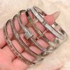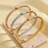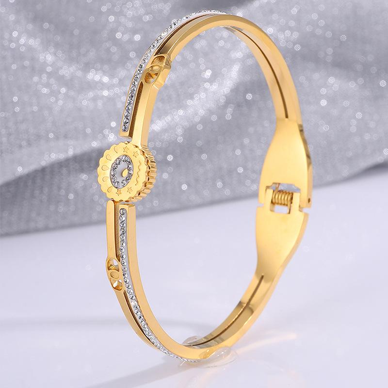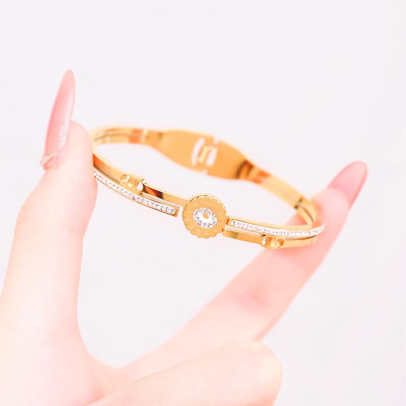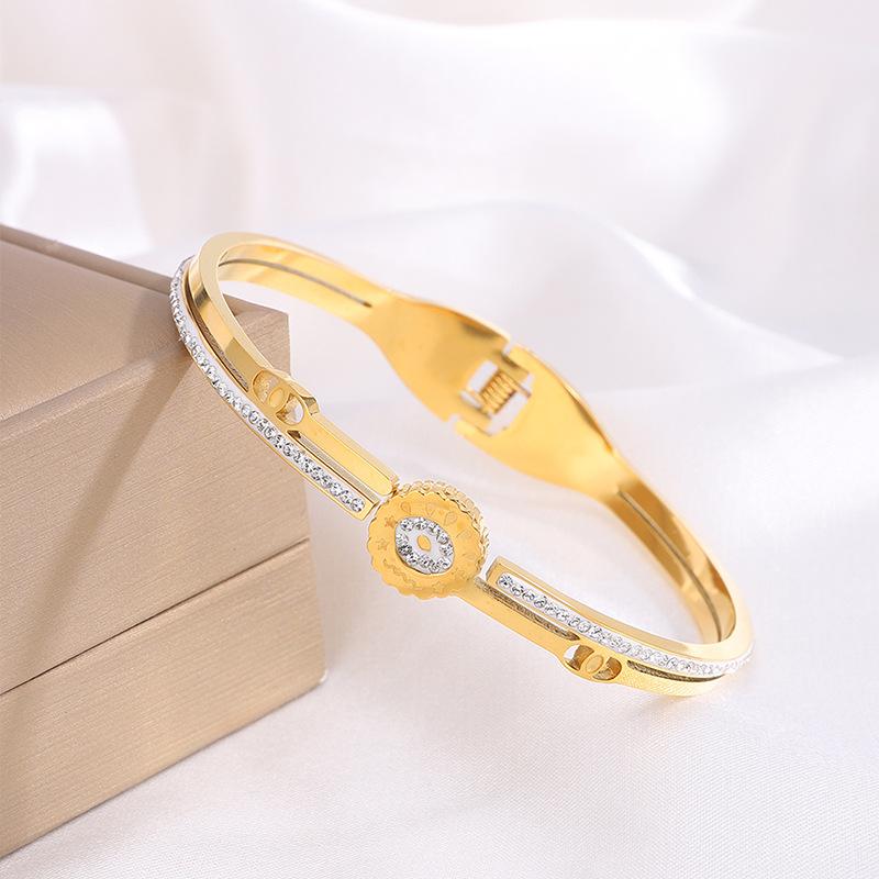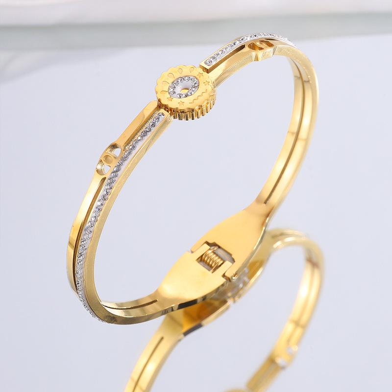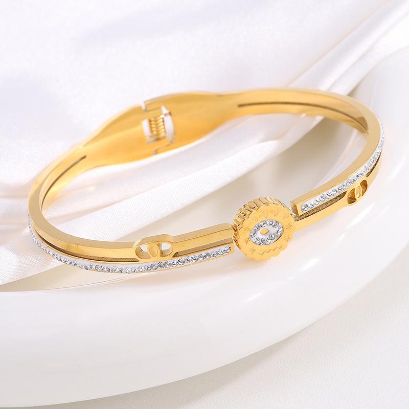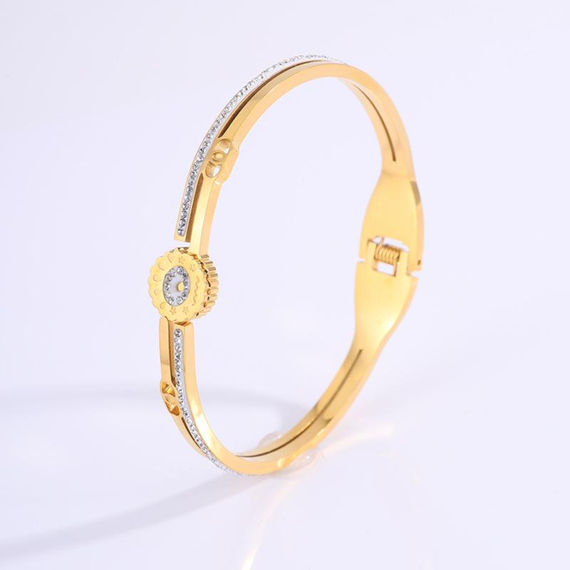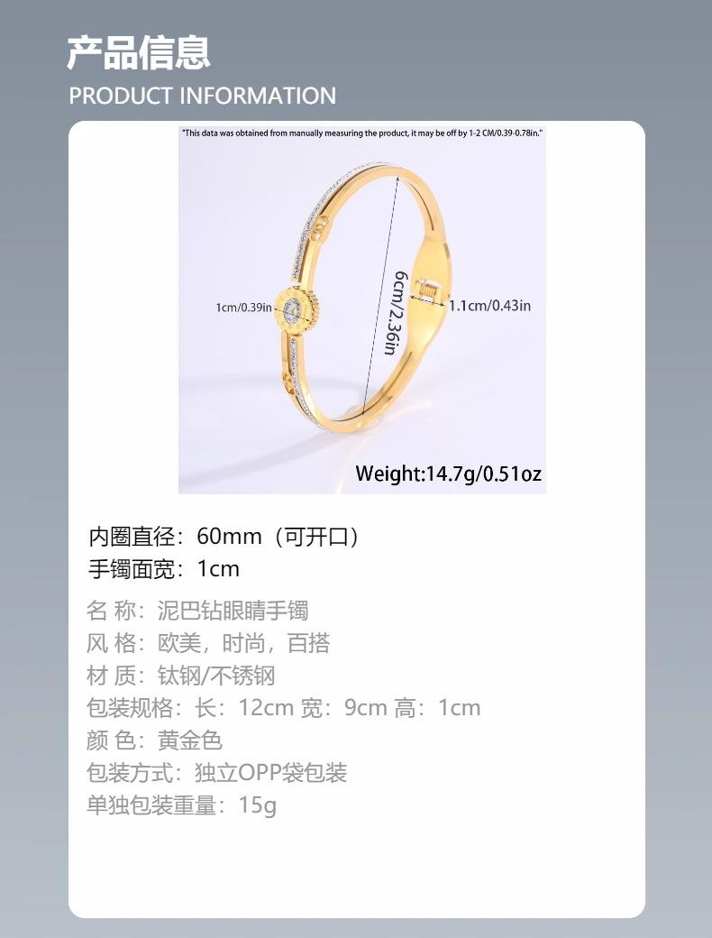 Pulsera de Acero Inoxidable Europea y Americana Transfronteriza Ojo Arena Dorada Pulsera que No se Desvanece Pulsera de Acero de Titanio con Diamantes Abiertos de Alta Gama para Mujer