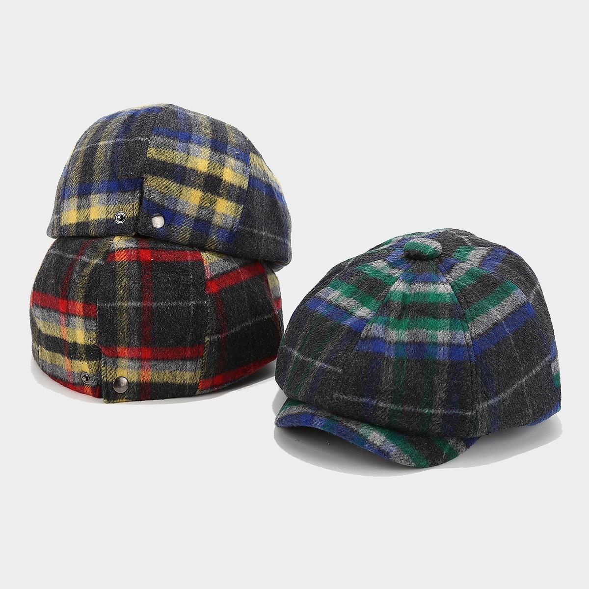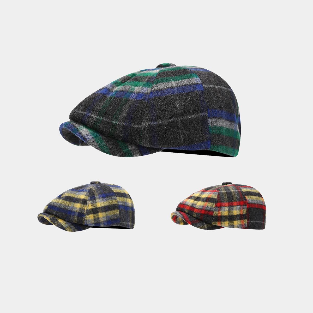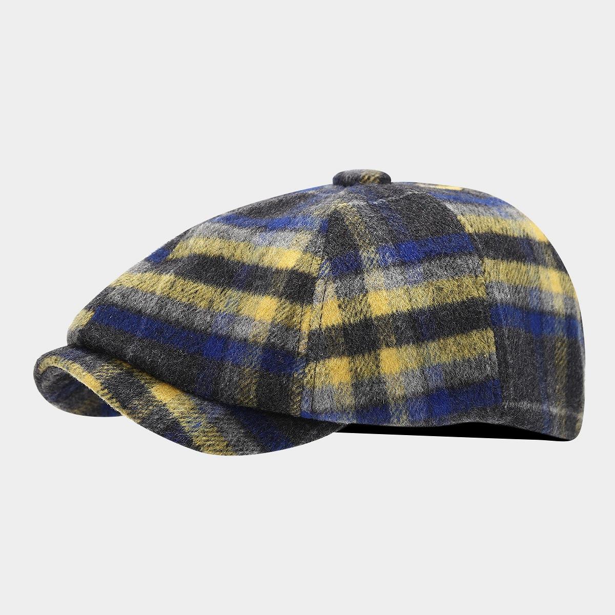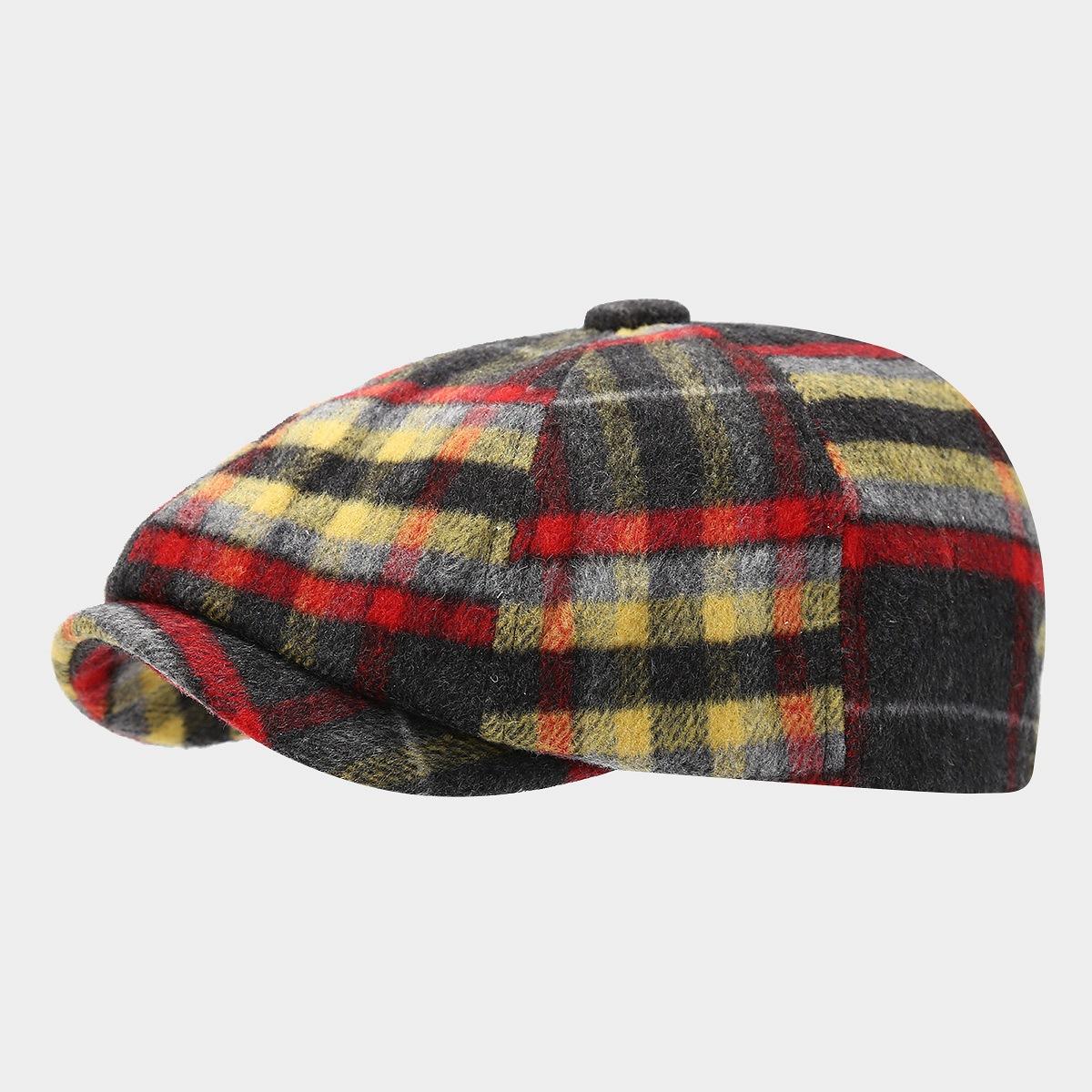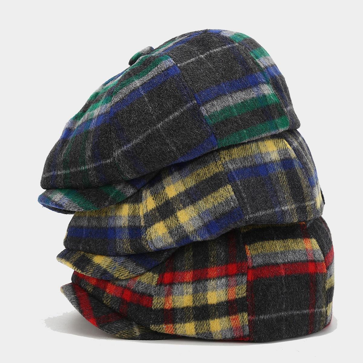 Otoño e Invierno Clásico de Lana a Cuadros Gorra Octogonal para Mujer Retro Británica de Ala Pequeña Gorra de Pintor Artístico Casual para Hombre Trendy